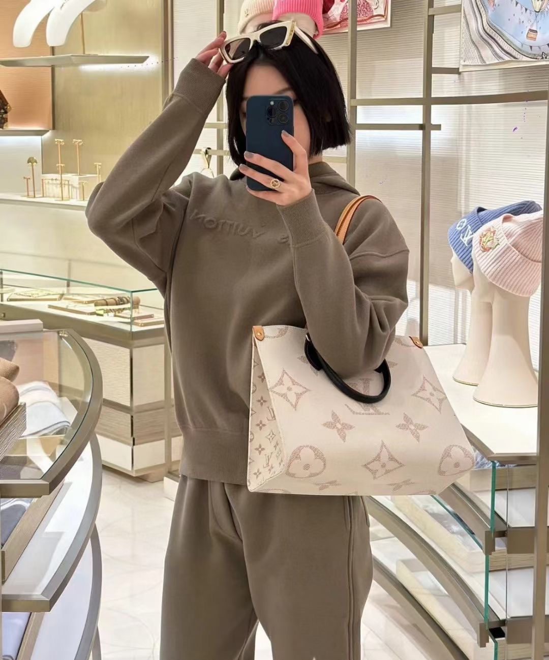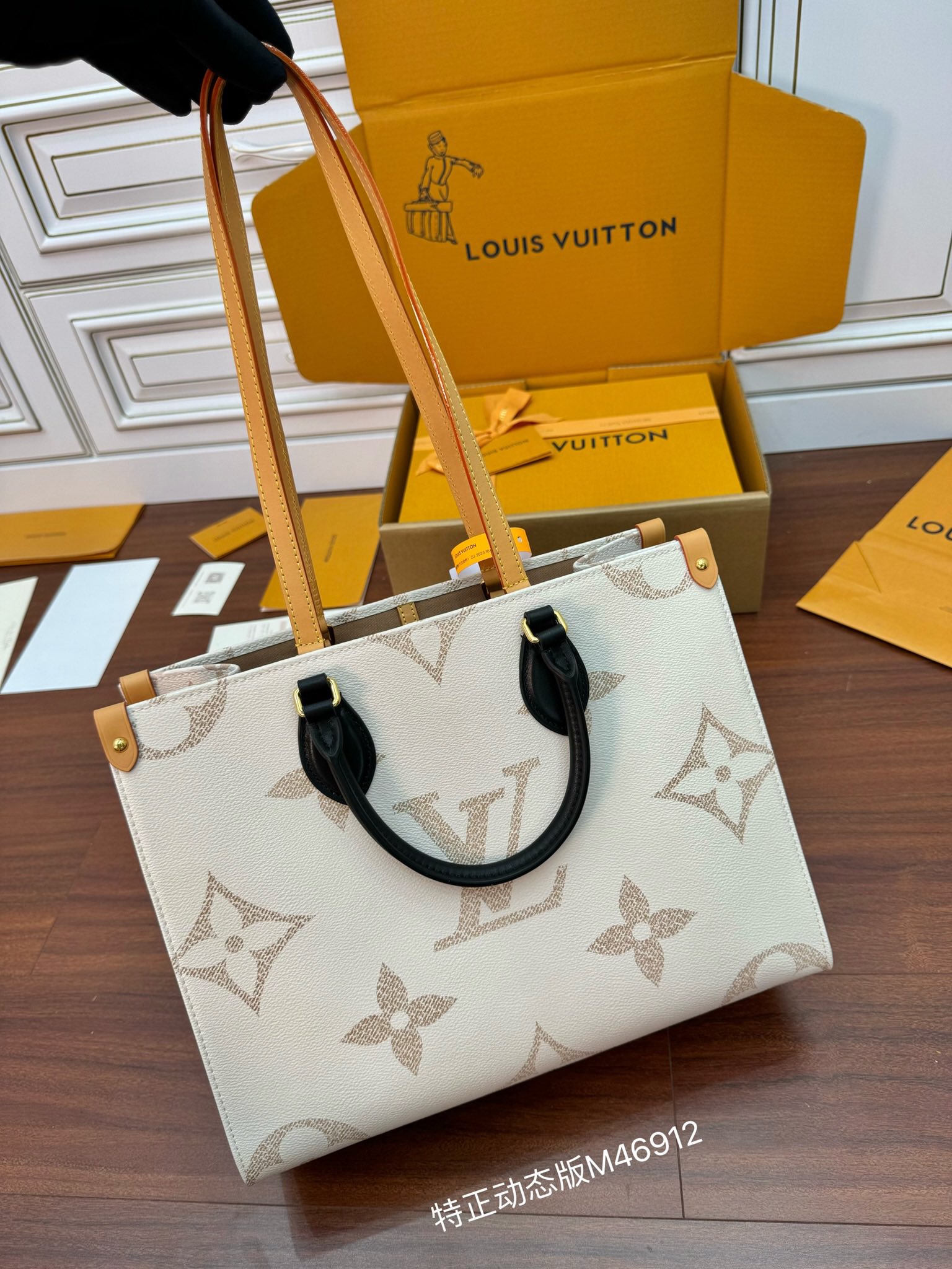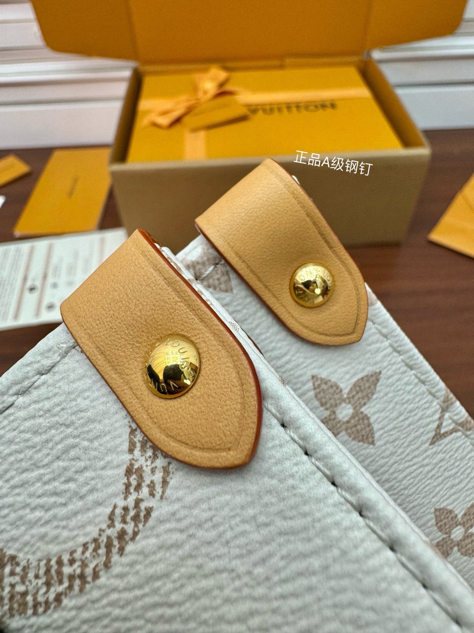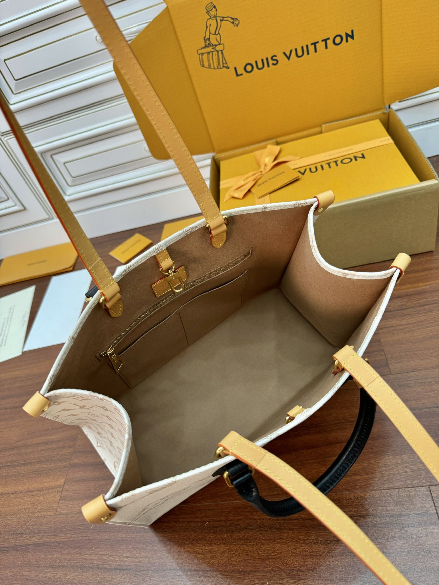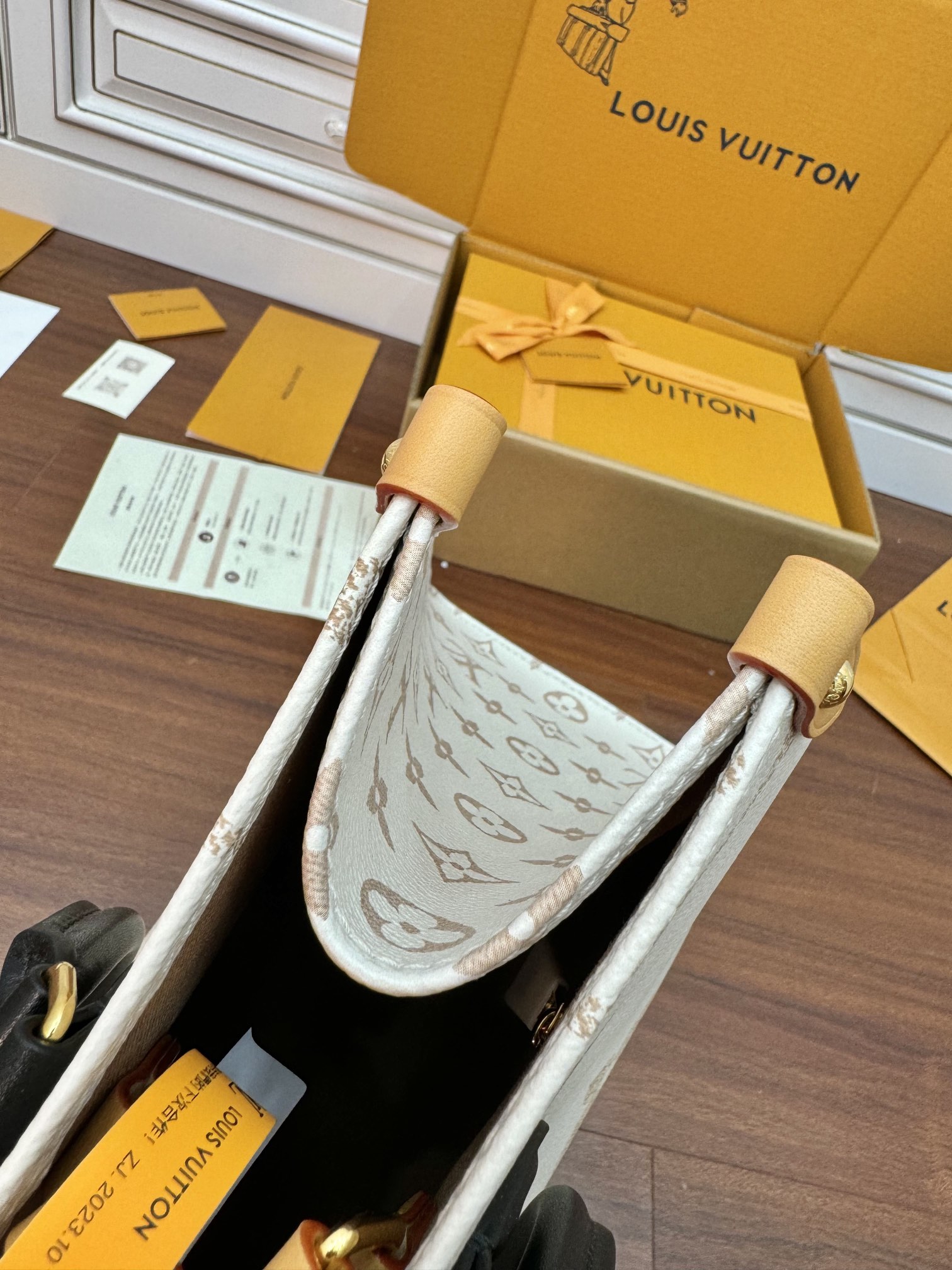 NIGO OnTheGo Louis Vuitton Women's Beige Monogram Embossed Cowhide Leather Tote Shopping Bag #nigo72523