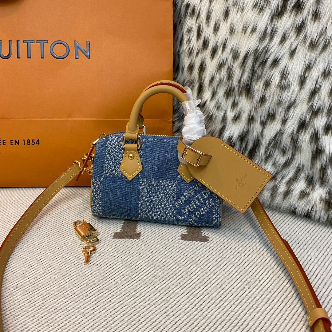 NIGO Louis Vuitton Nano Speedy Men's Blue Eggnog Tessellated Canvas Leather Tote Shoulder Crossbody Bag Bags #nigo99496