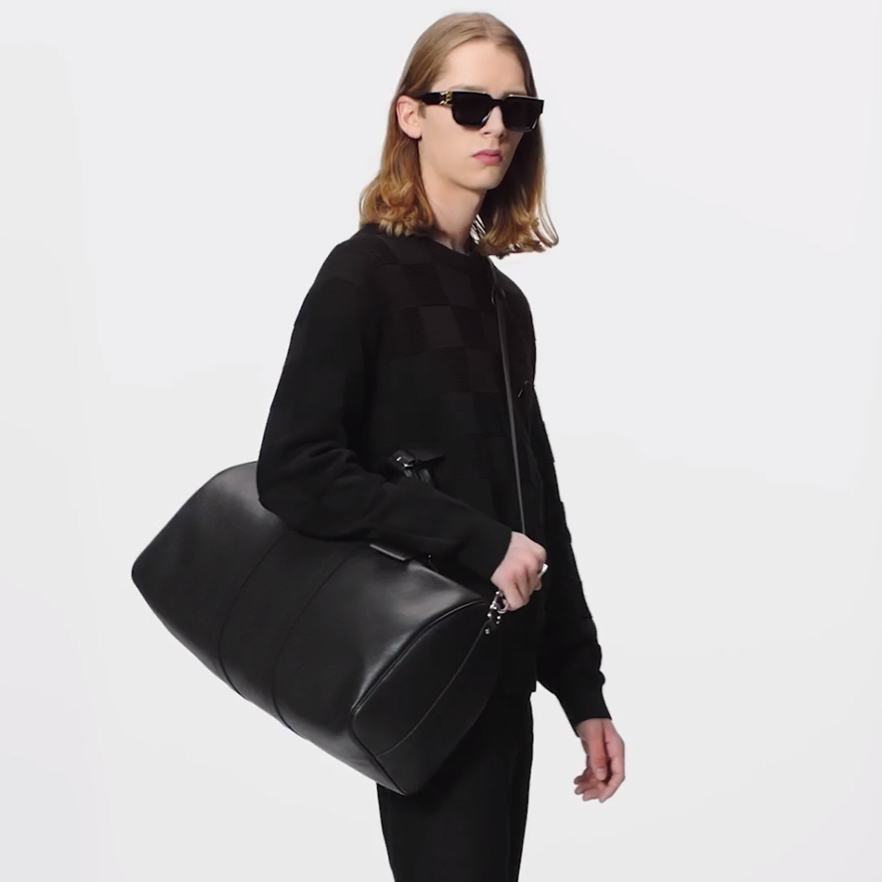 NIGO Louis Vuitton Men's Women's Black Slanting Cross Large Bags Travel Bags Leather Travel Bags #nigo98239