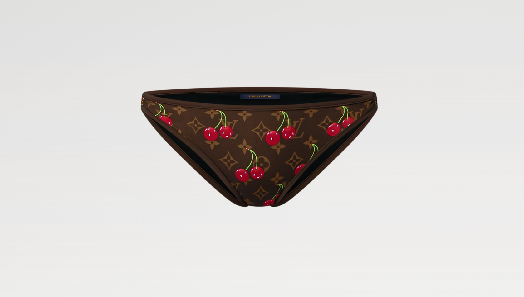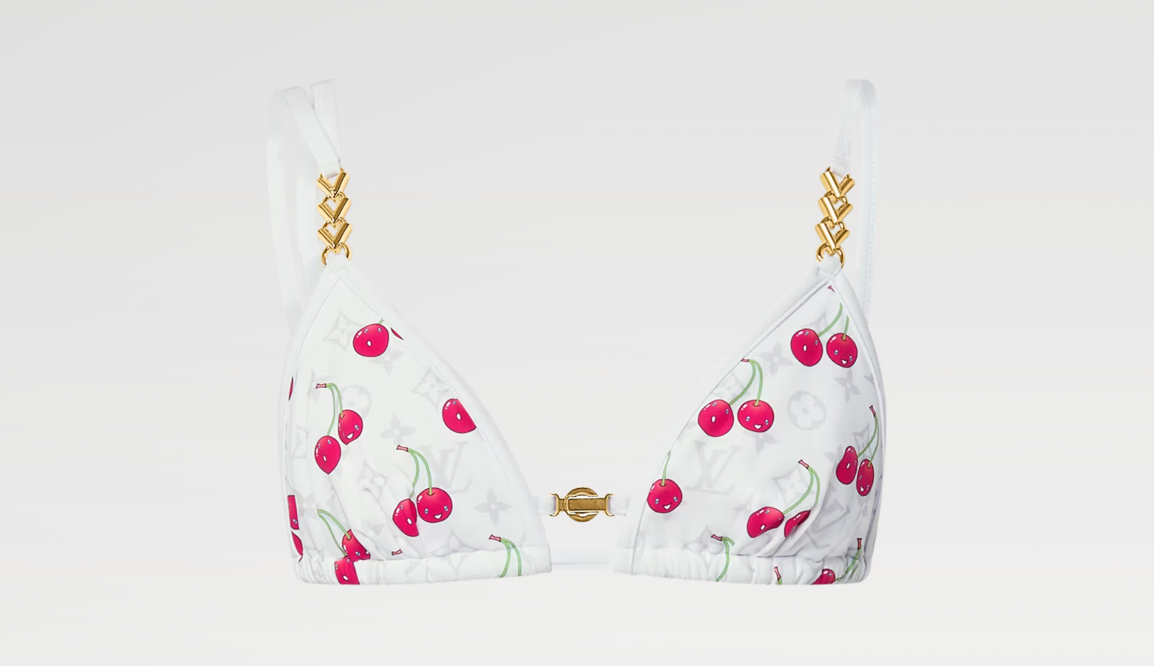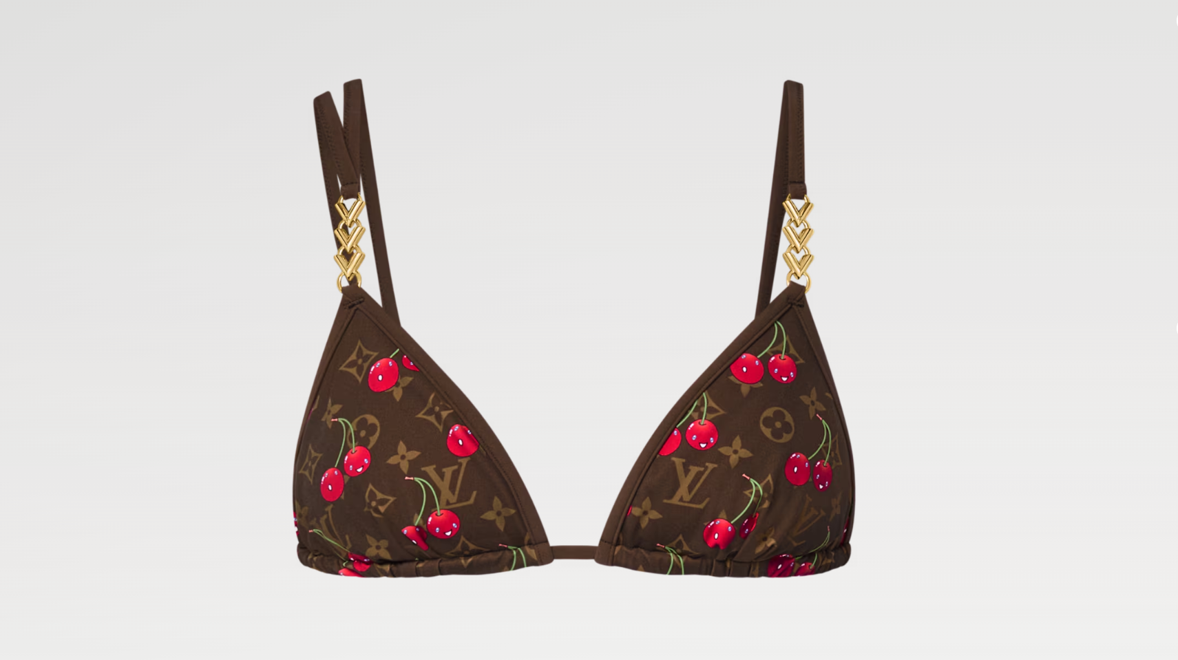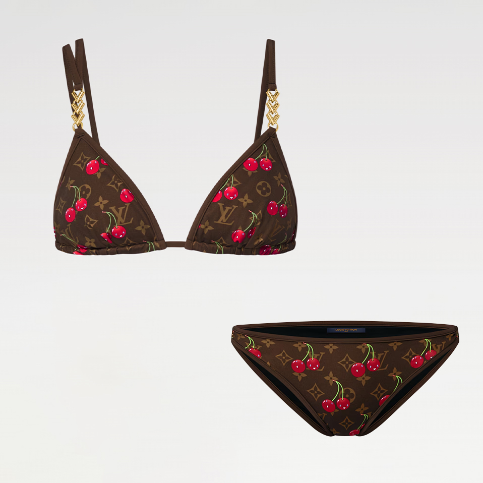 NIGO Louis Vuitton LV x TM Women's Cherry Print Triangle Knit Bikini Top Swimsuit Swim Bottoms #nigo81514