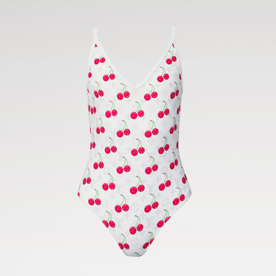 NIGO Louis Vuitton LV x TM Women's Cherry Logo Print Summer V-Neck One-Piece Swimsuit #nigo81515
