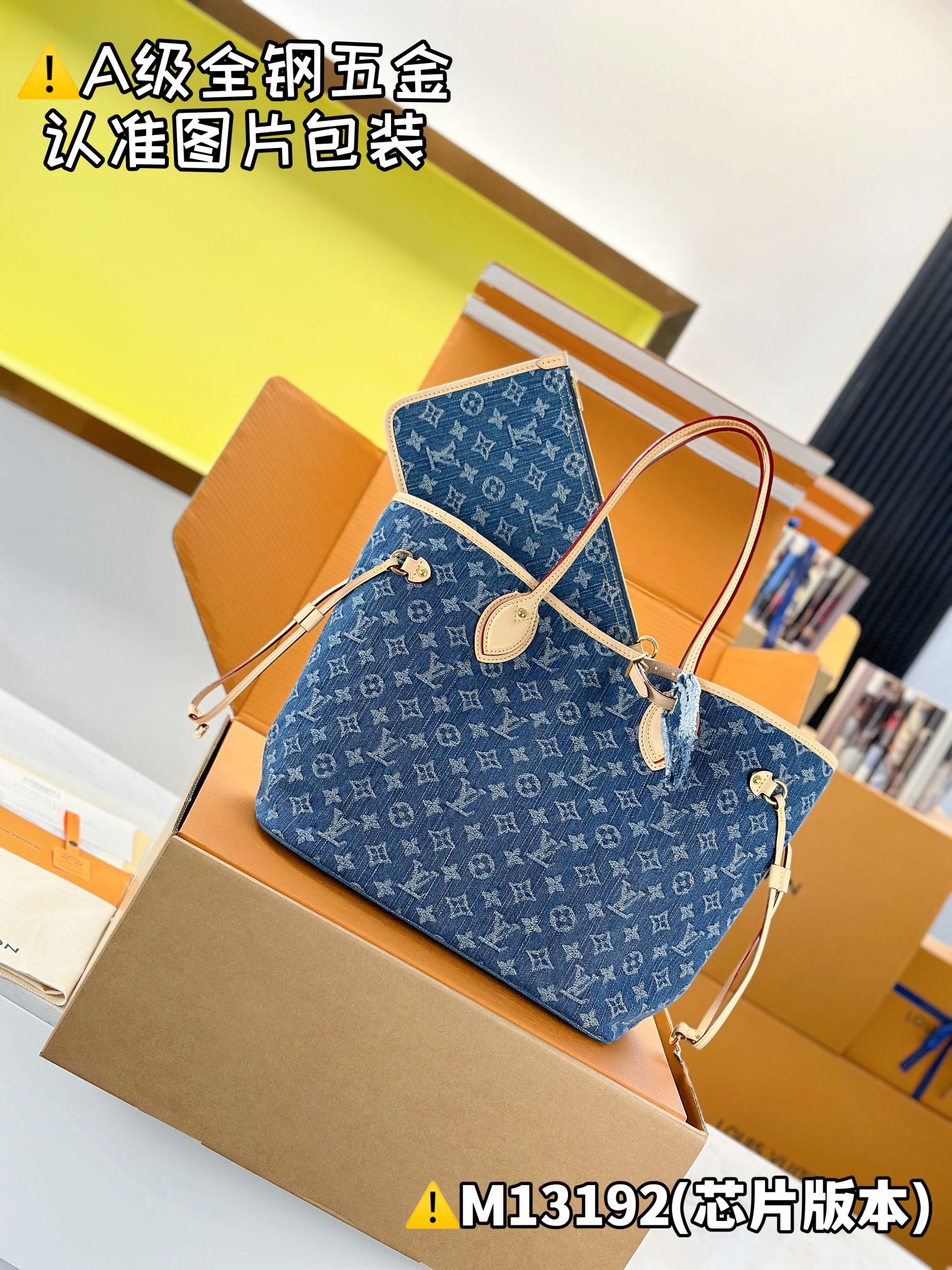 NIGO Louis Vuitton Neverfull Women's Letter Print Blue Denim Tote Shoulder Bag Bags #nigo77377