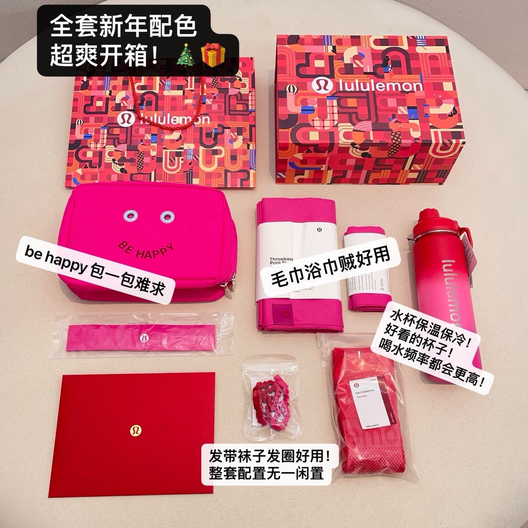 NIGO Lululemon Women's Sports Toiletries Set Storage Bag Bath Towel Towel Hair Band Thermos Socks Set Accessories #nigo74652