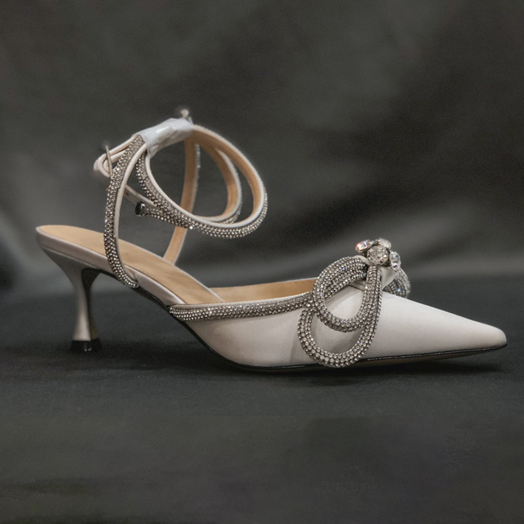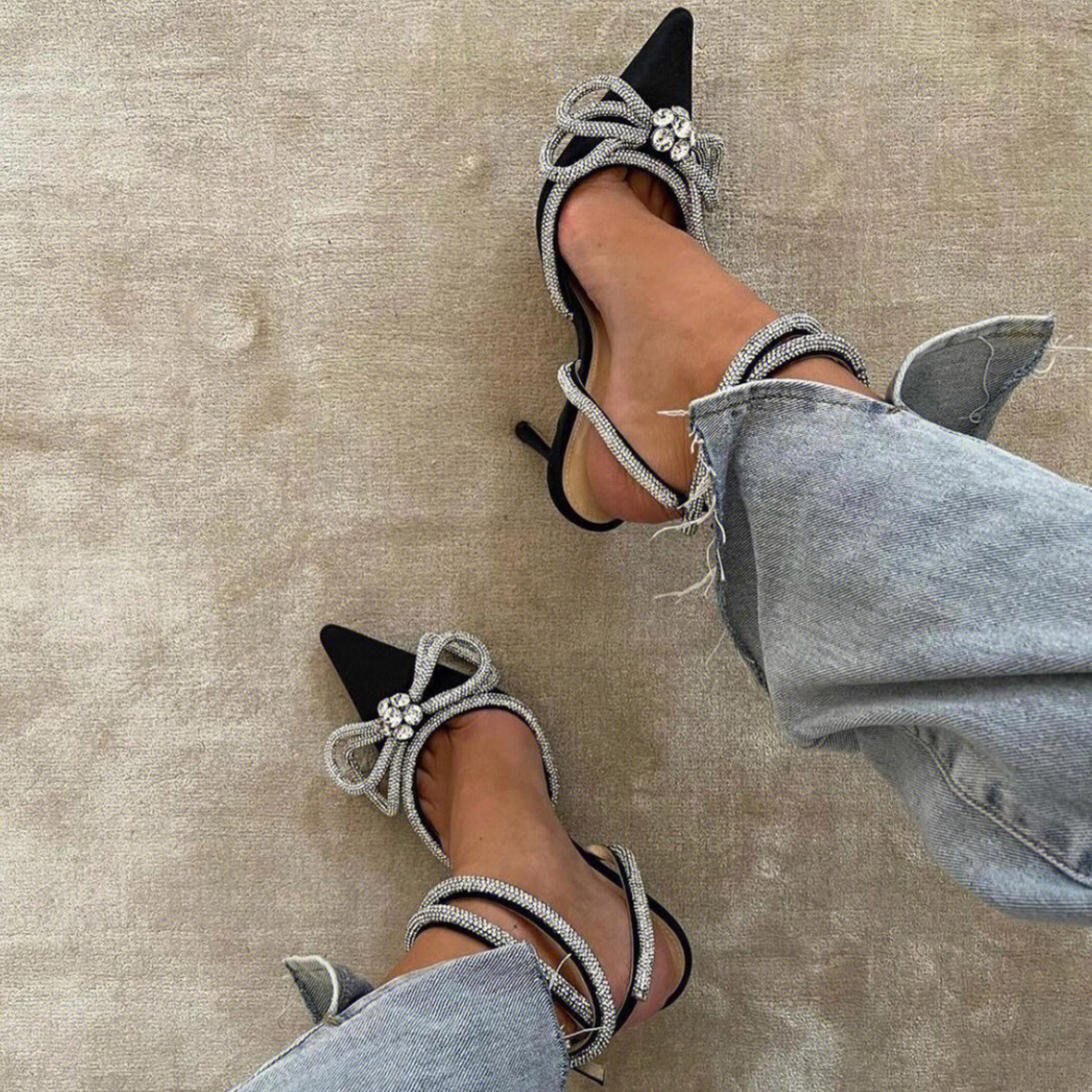 NIGO Mach & Mach Women's Spring And Summer Rhinestone Bow High-heeled Sandals Sheepskin Luxury Mid-heeled Sandals Temperament Shoes Ngvp #nigo8635