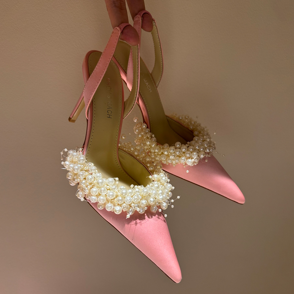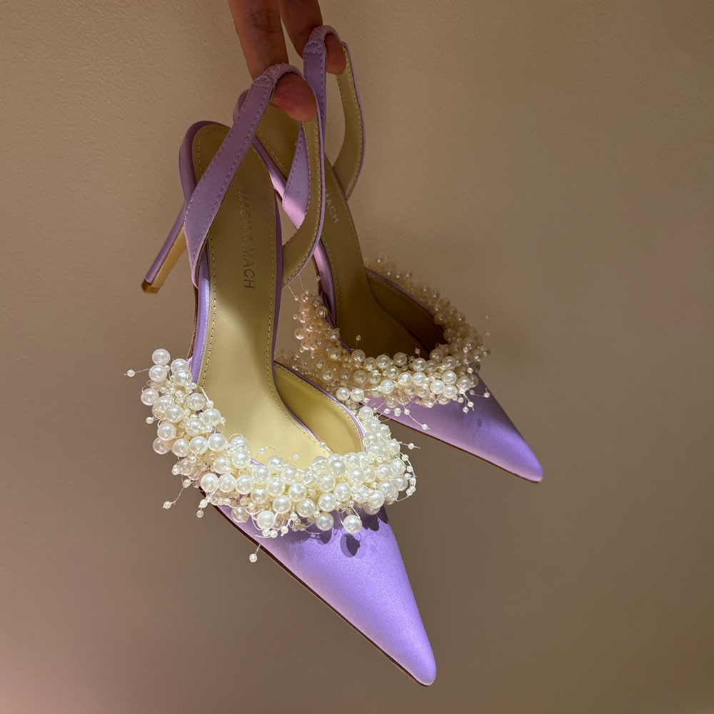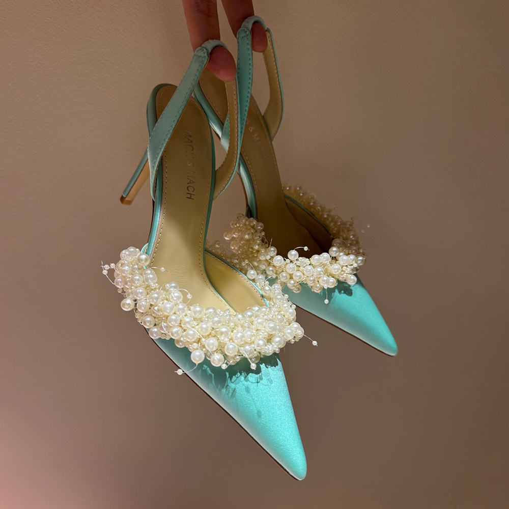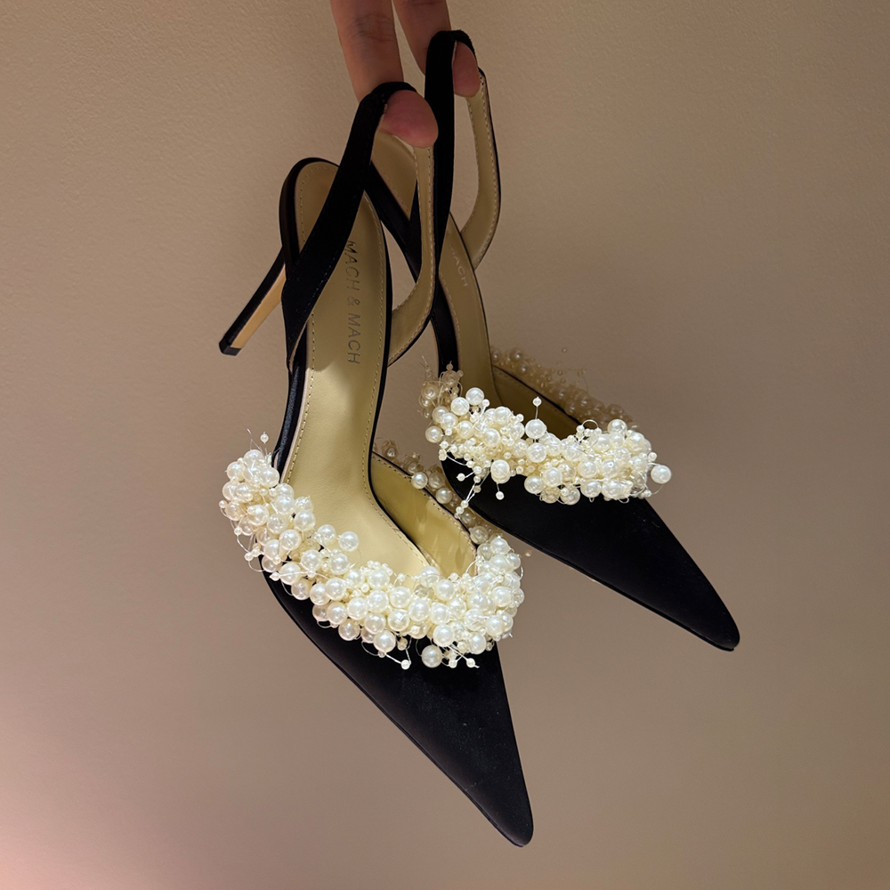 NIGO Mach & Mach Women's Spring, Summer And Autumn Pointed Toe Pearl Decorated Solid Color High Heels Fine Heeled 9cm Casual Sandals Shoes #nigo77674