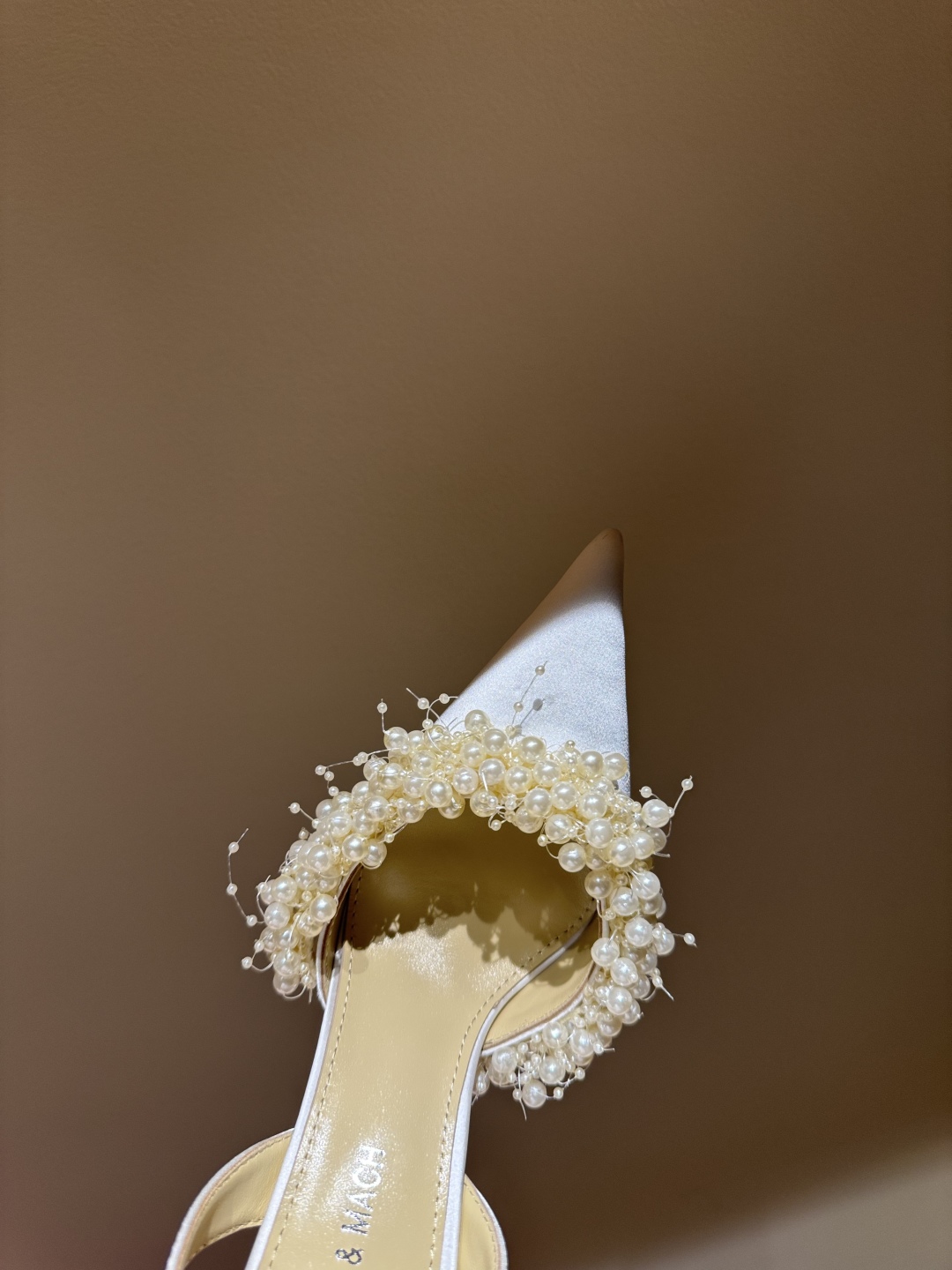 NIGO Mach & Mach Women's Spring, Summer And Autumn Pointed Toe Pearl Decorated Satin Solid Color High Heels Fine Heeled 8.5cm Casual Sandals Shoes Ngvp #nigo1532