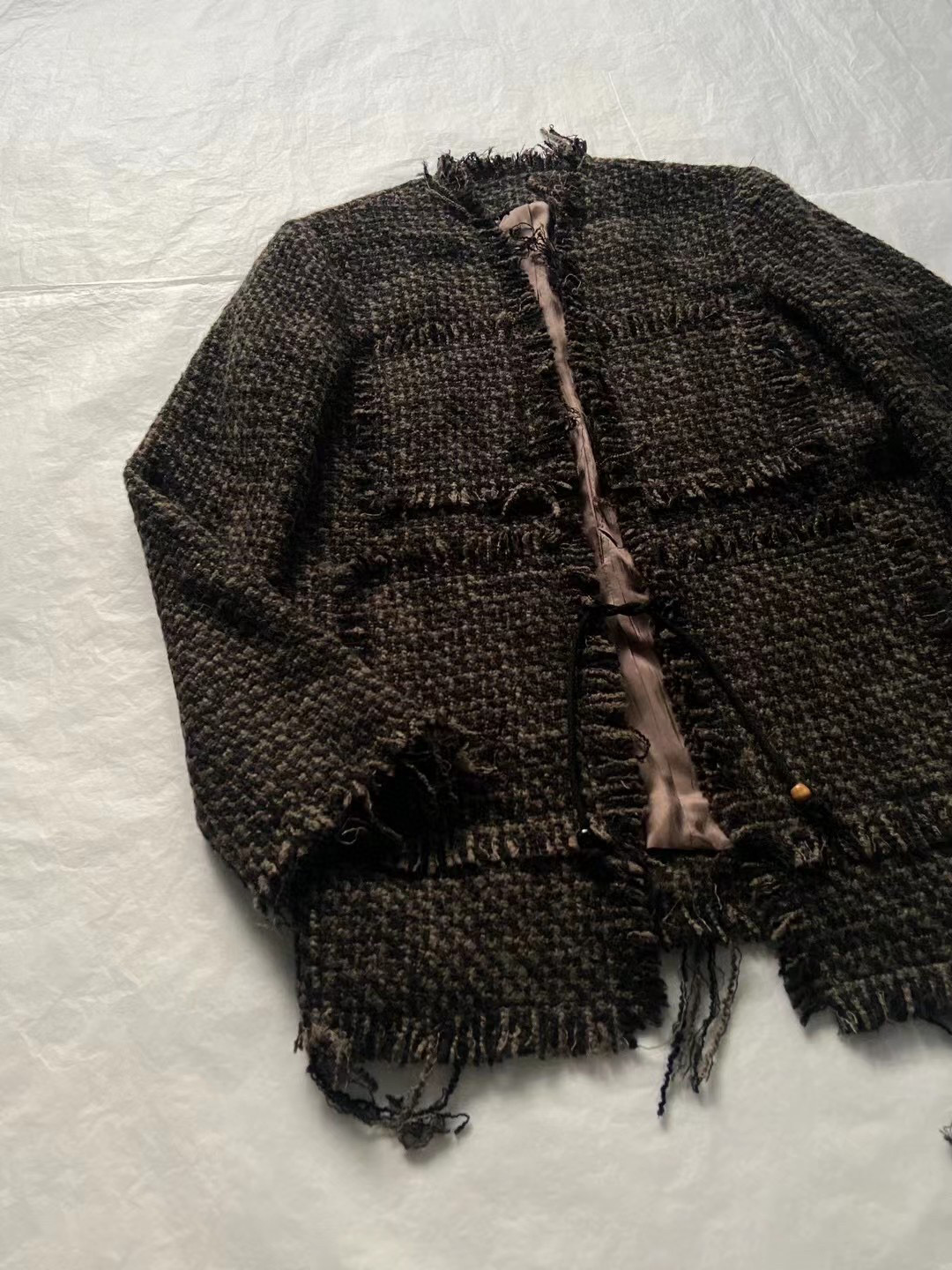 NIGO Magliano Men's Autumn And Winter Broken Woven Lace Up Tweed Distressed Long Sleeved Fitted Jacket Ngvp #nigo7172