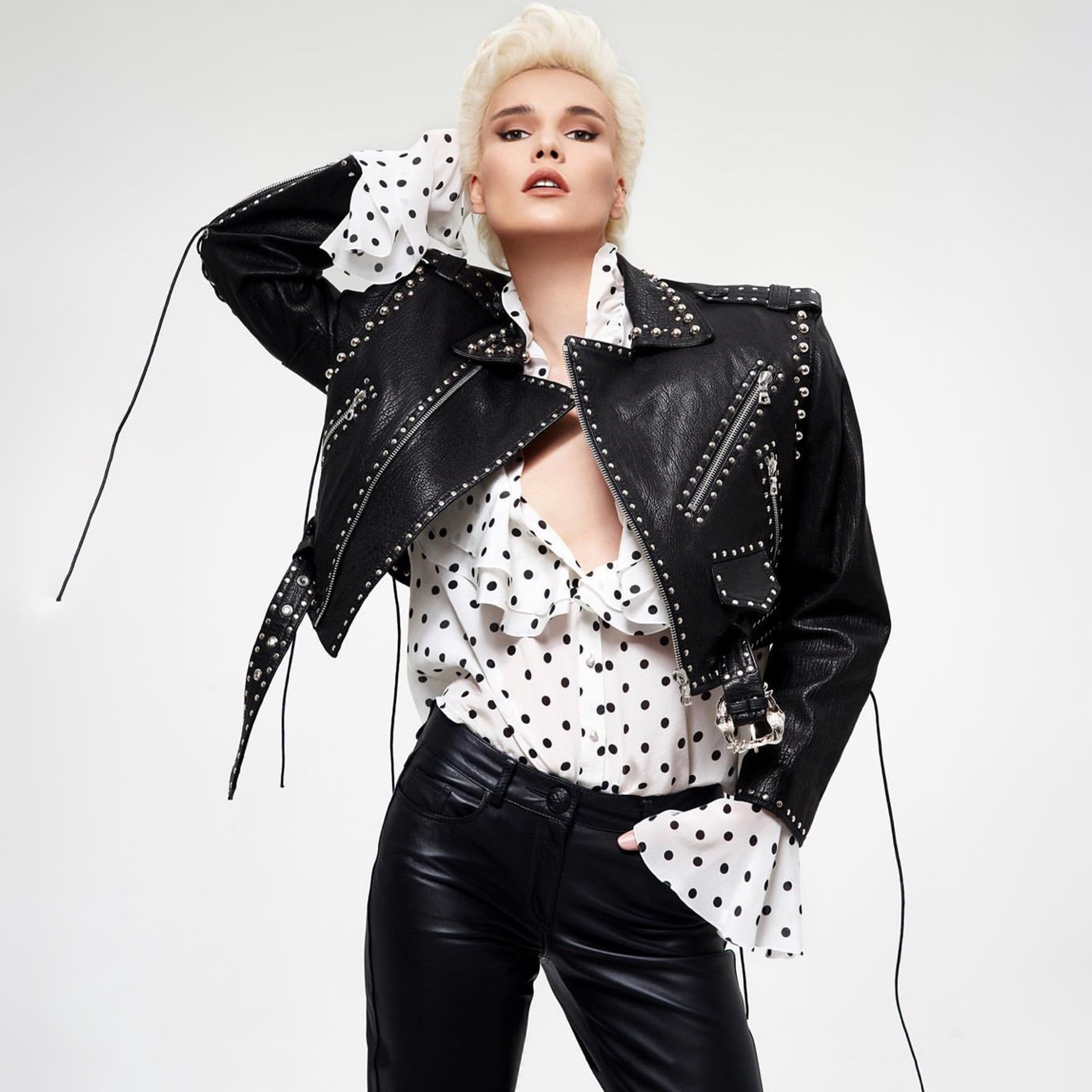 NIGO Maison Bohemique Women's Fall And Winter Biker Style Rivets Tie High Street Fashion Trend Zipper Lapel Leather Jacket Ngvp #nigo9244
