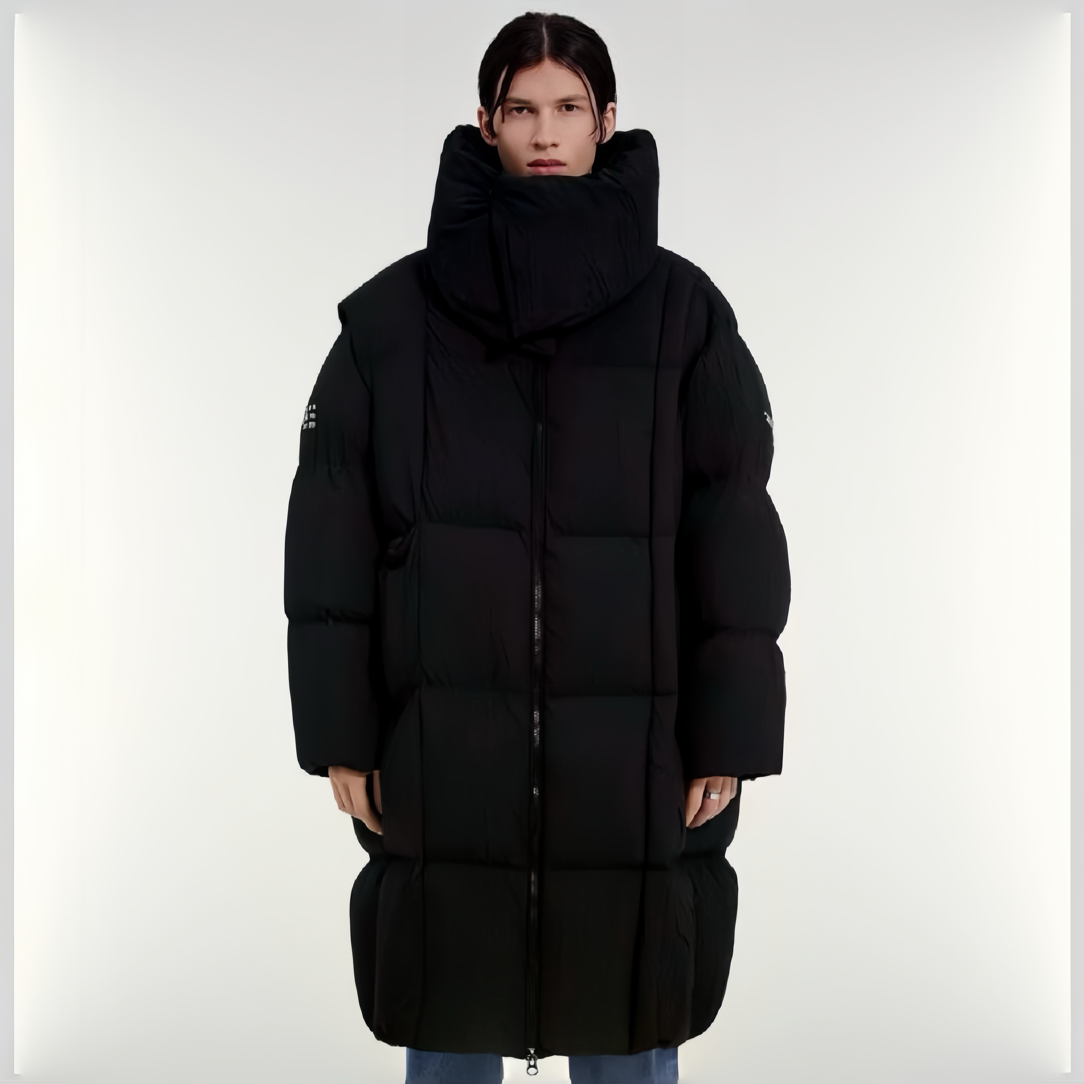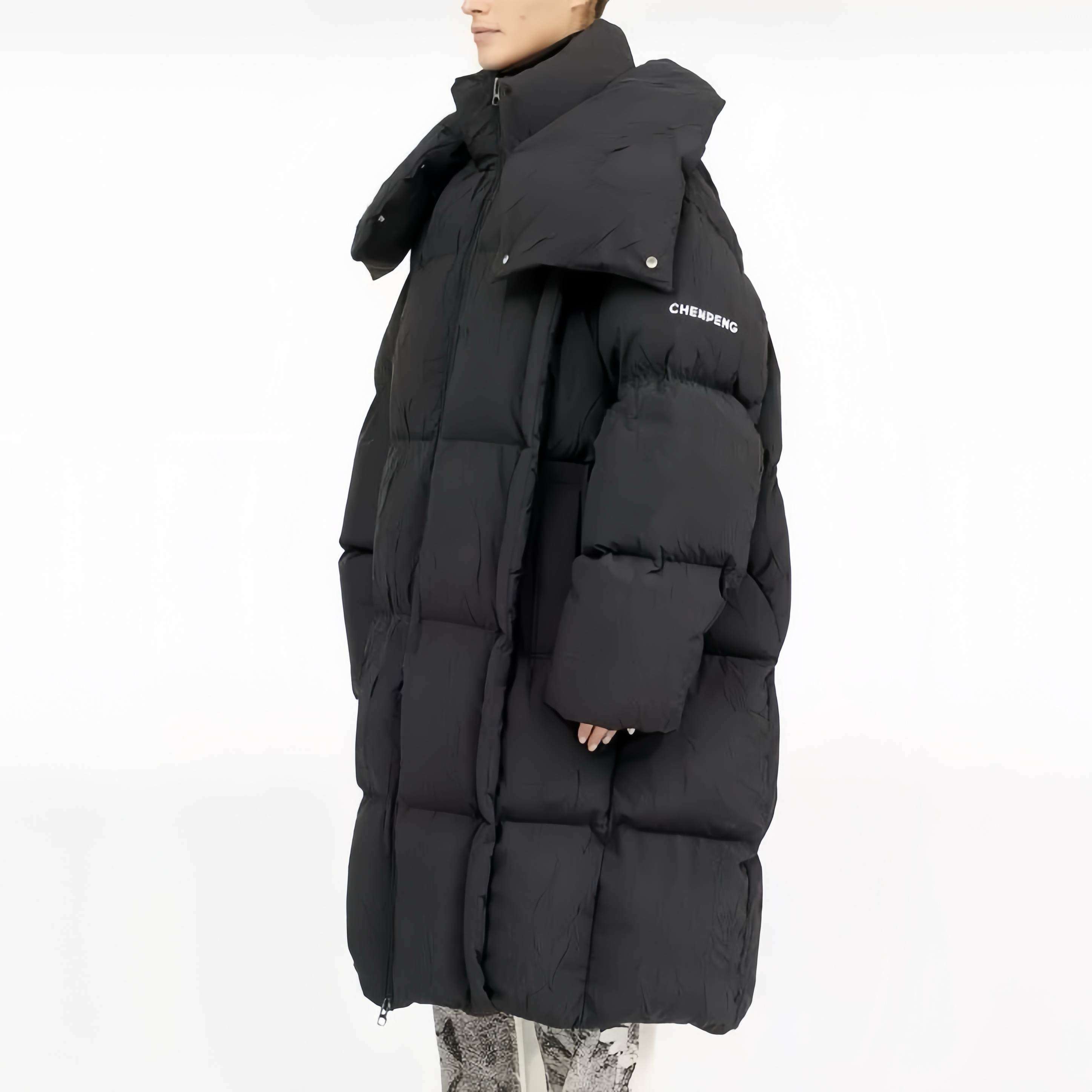 NIGO Maison Margiela MM6 Men's Same Winter Long Removable Scarf Black High Collar Zip Down Jacket Coat #nigo97444