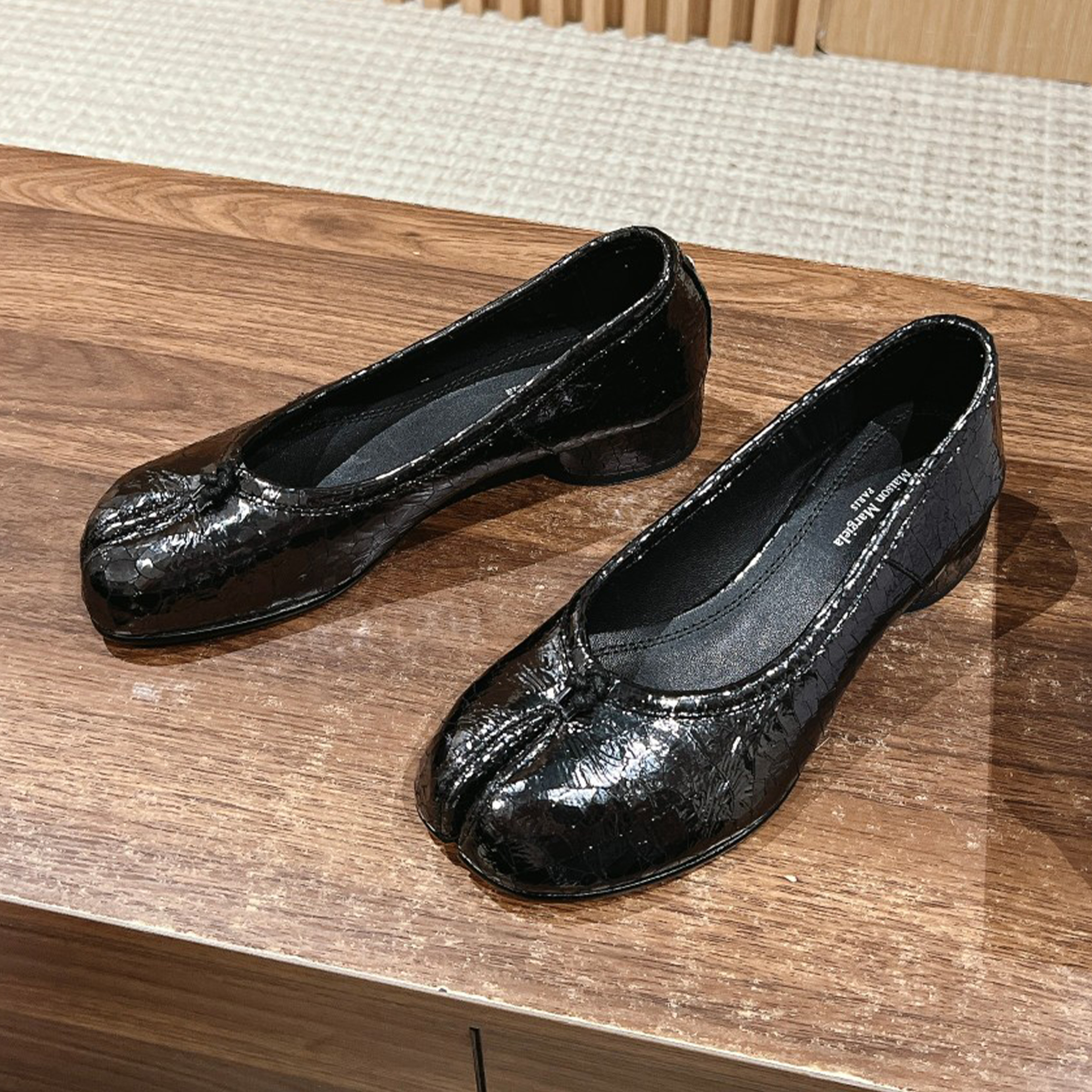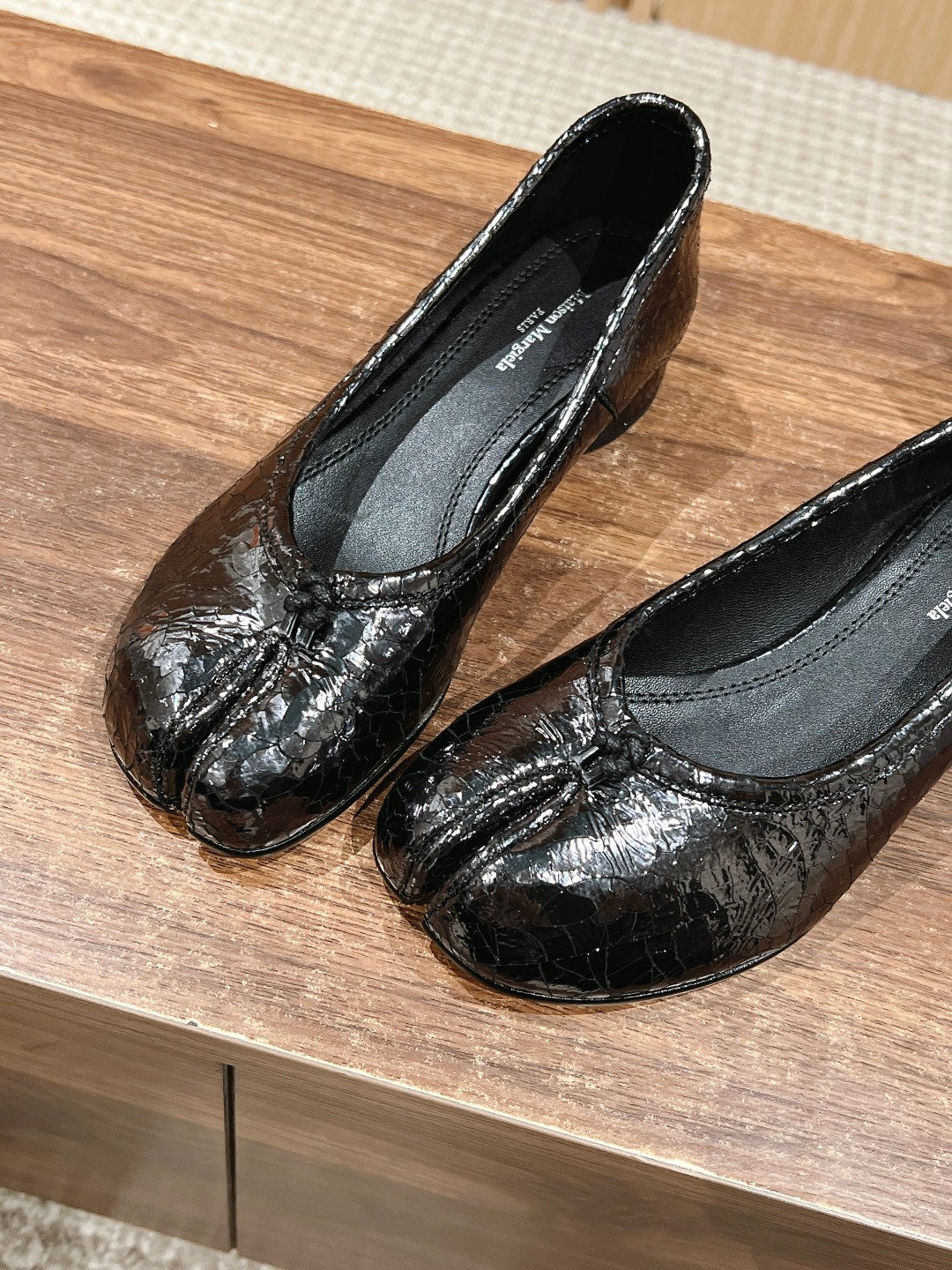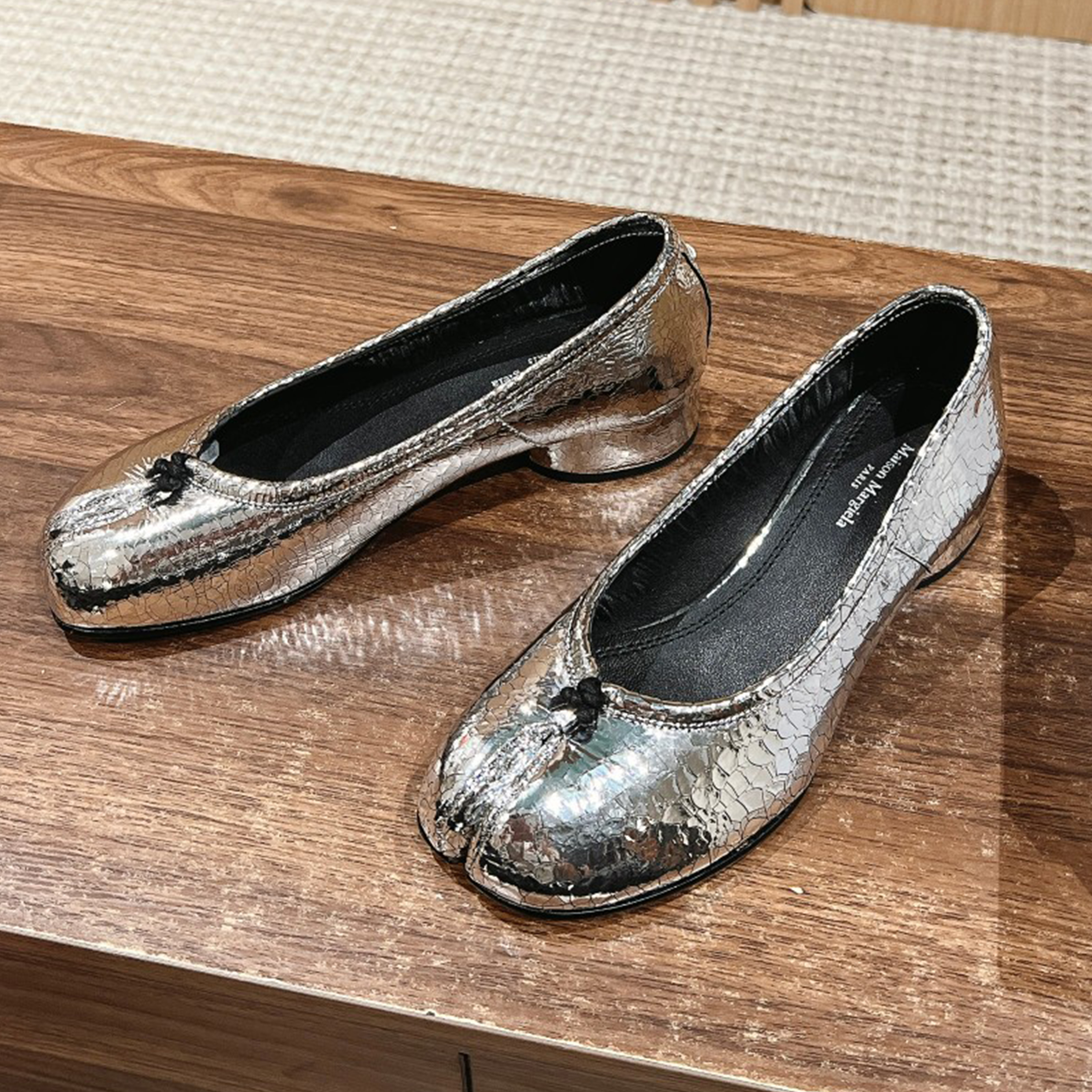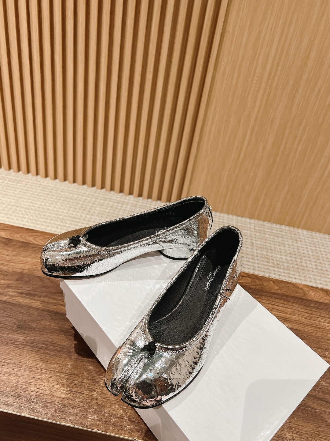 NIGO Maison Margiela Tabi Broken Mirror New Ballerinas Women's Chunky Heel Shallow Split Toe Shoes Pleated Fashion Modern Trend Sheepskin Comfort Temperament Shoes #nigo76151