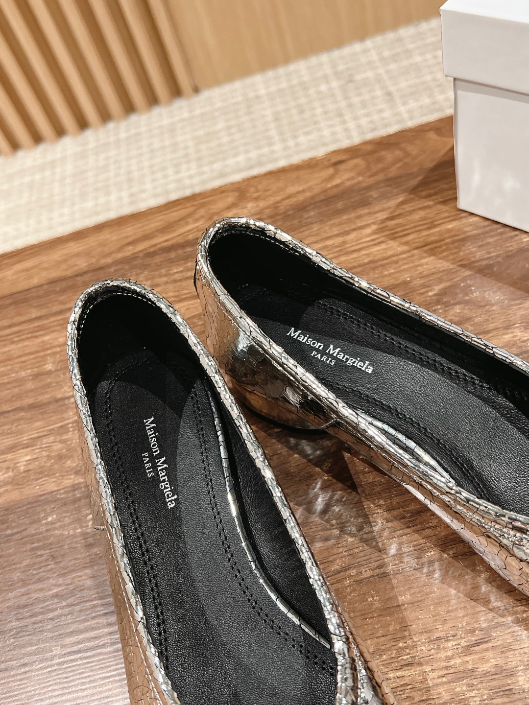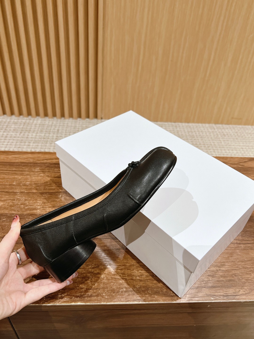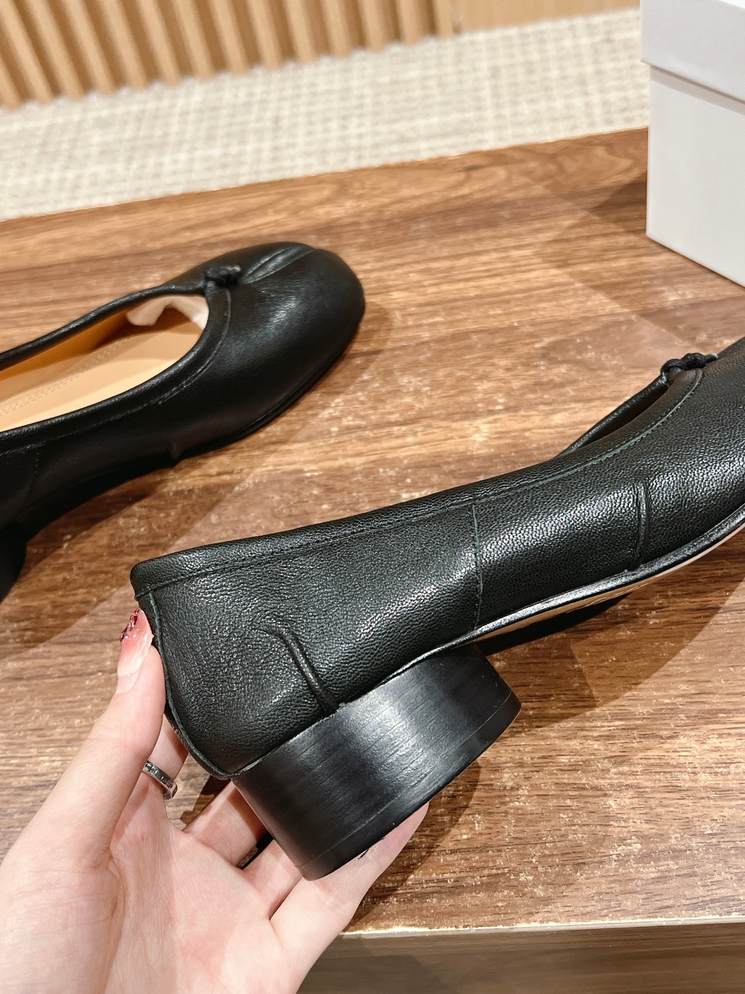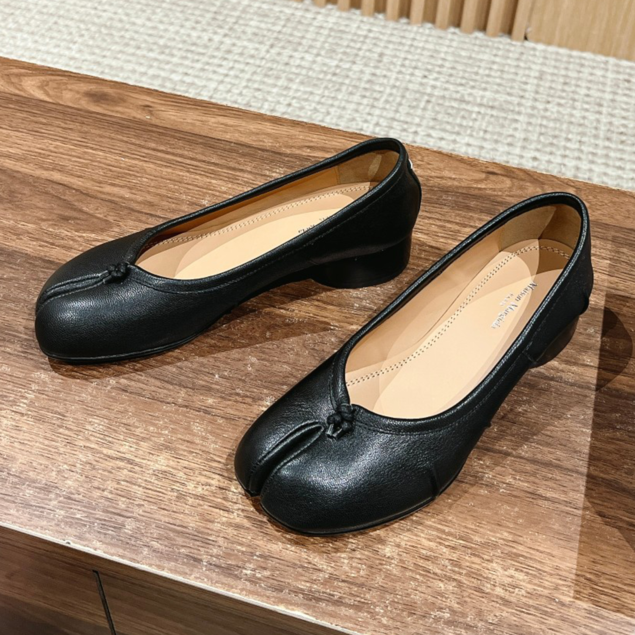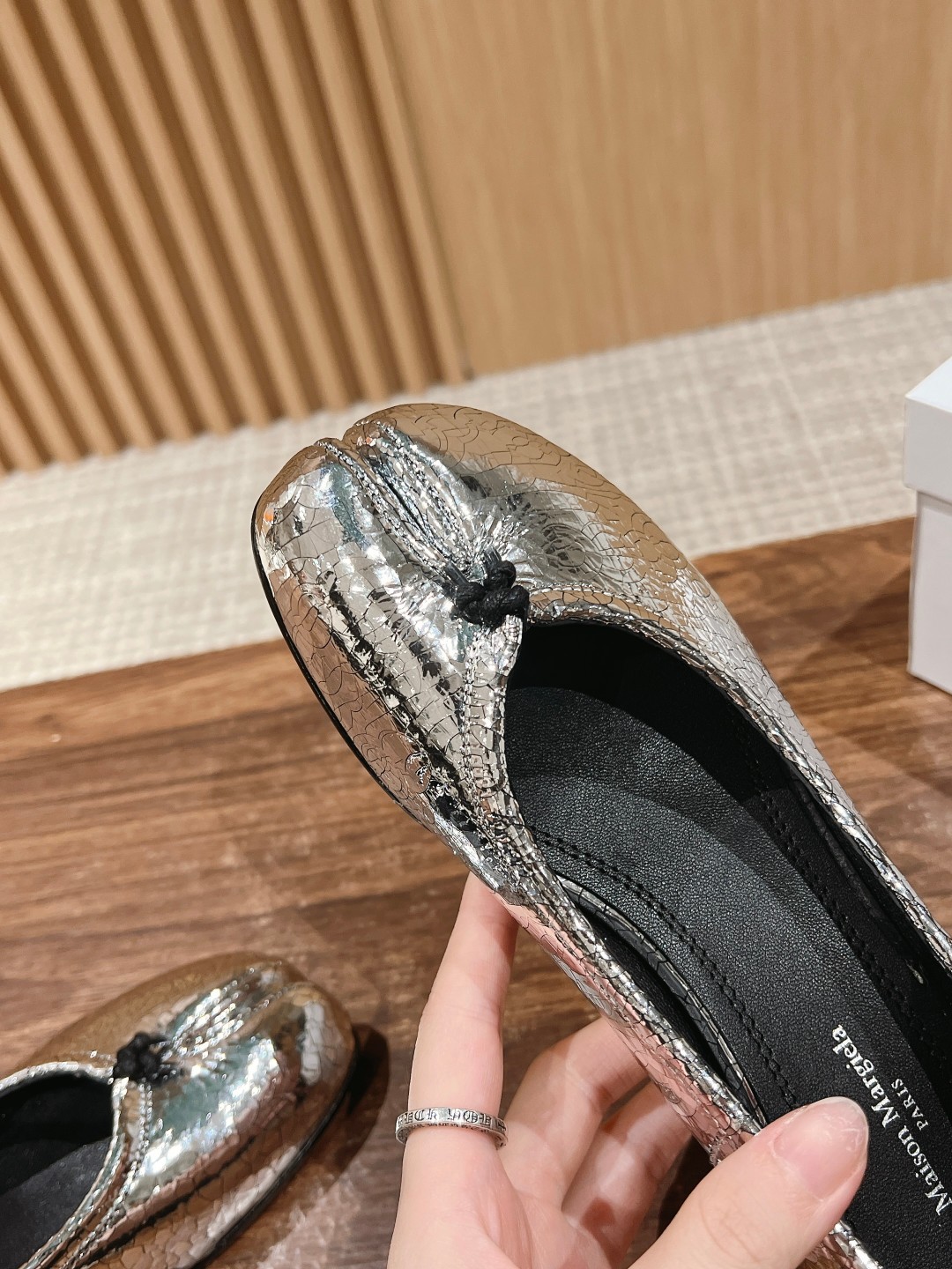 NIGO Maison Margiela Tabi Broken Mirror New Ballerinas Women's Chunky Heel Shallow Split Toe Shoes Pleated Fashion Modern Trend Sheepskin Comfort Temperament Shoes #nigo76151