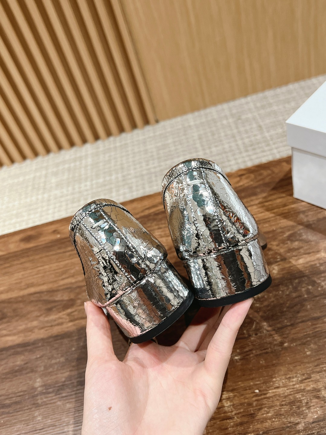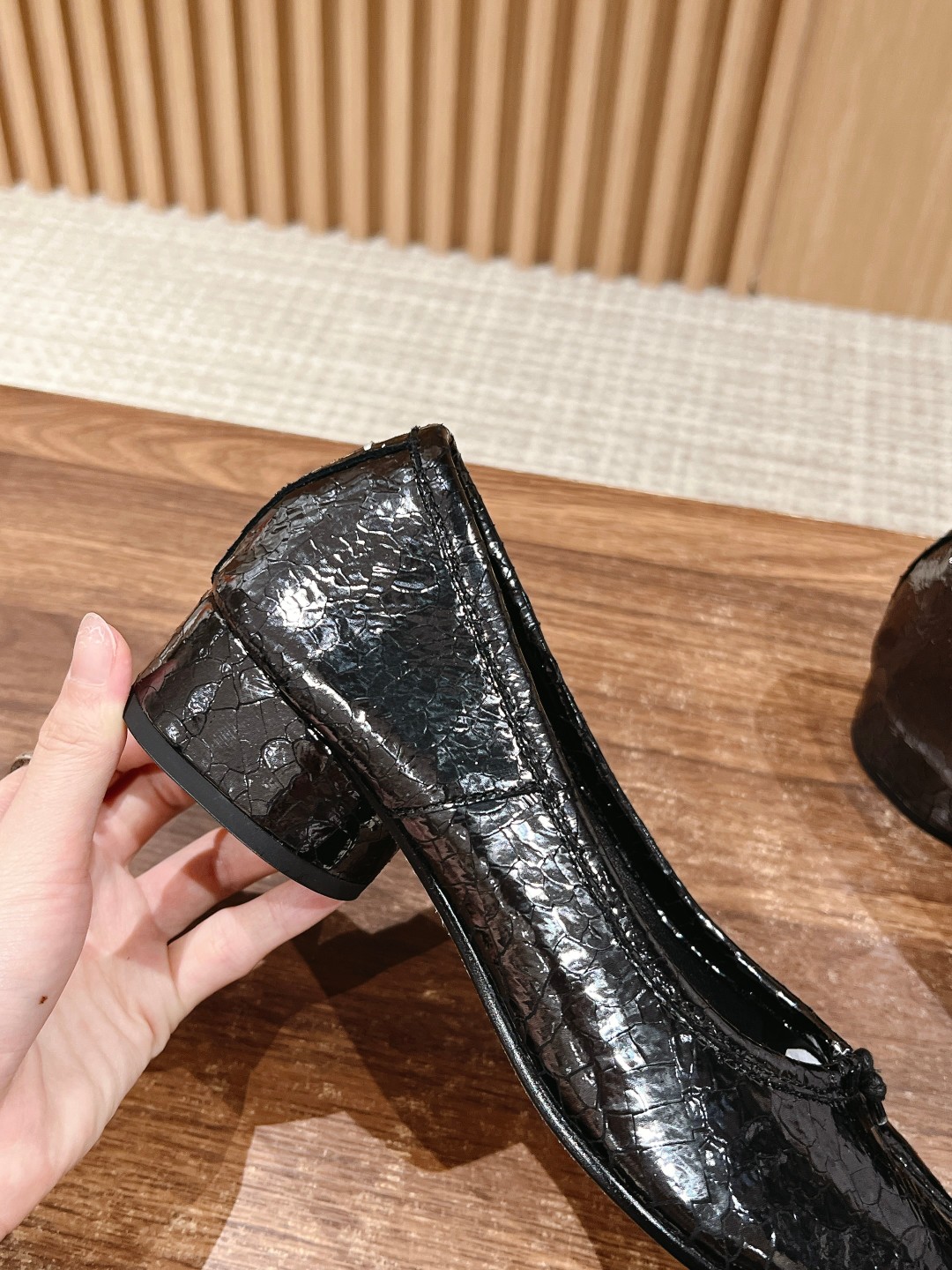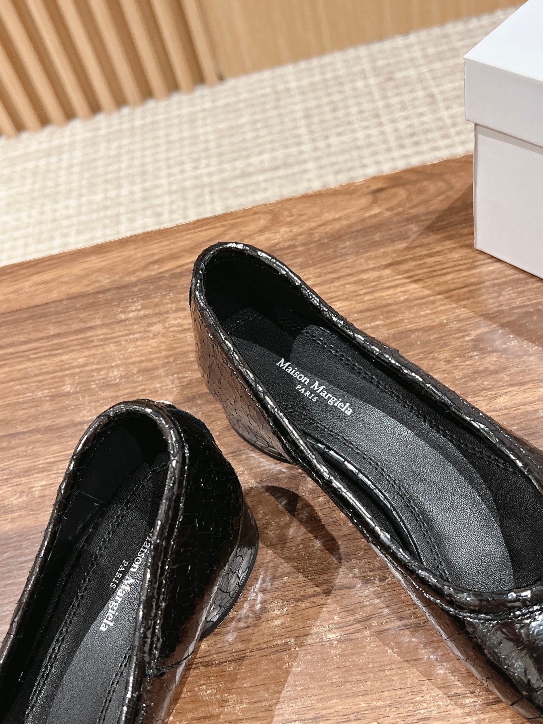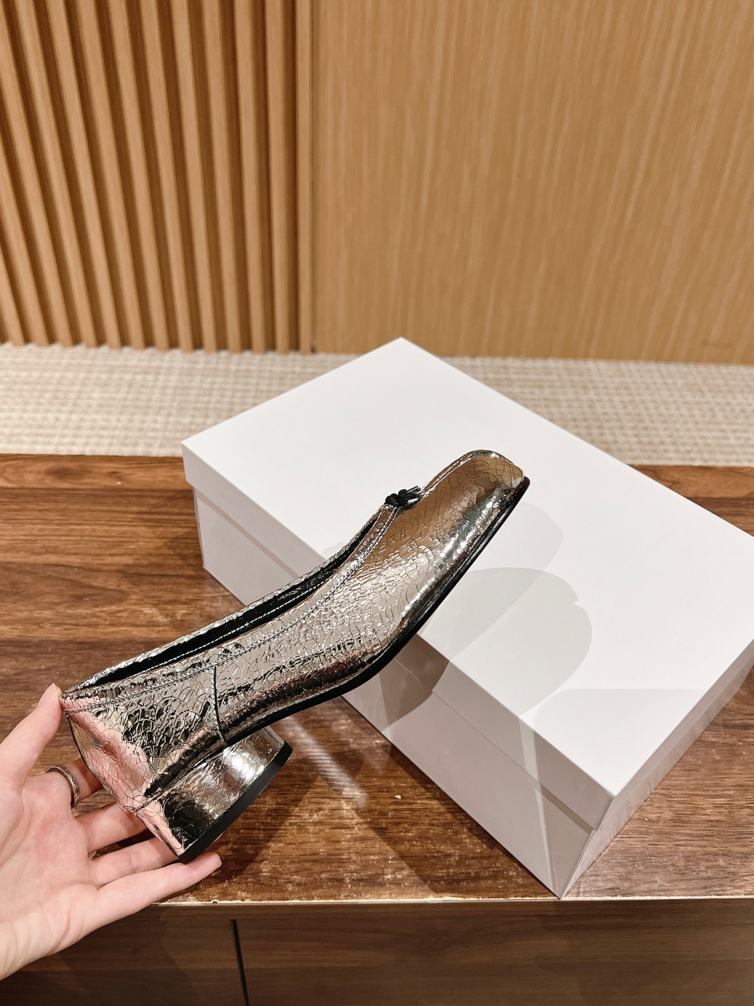 NIGO Maison Margiela Tabi Broken Mirror New Ballerinas Women's Chunky Heel Shallow Split Toe Shoes Pleated Fashion Modern Trend Sheepskin Comfort Temperament Shoes #nigo76151