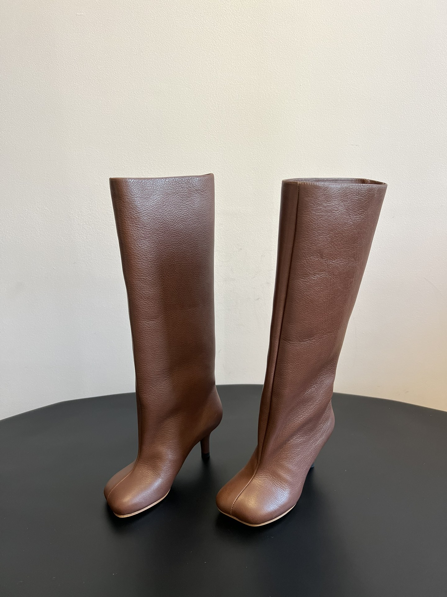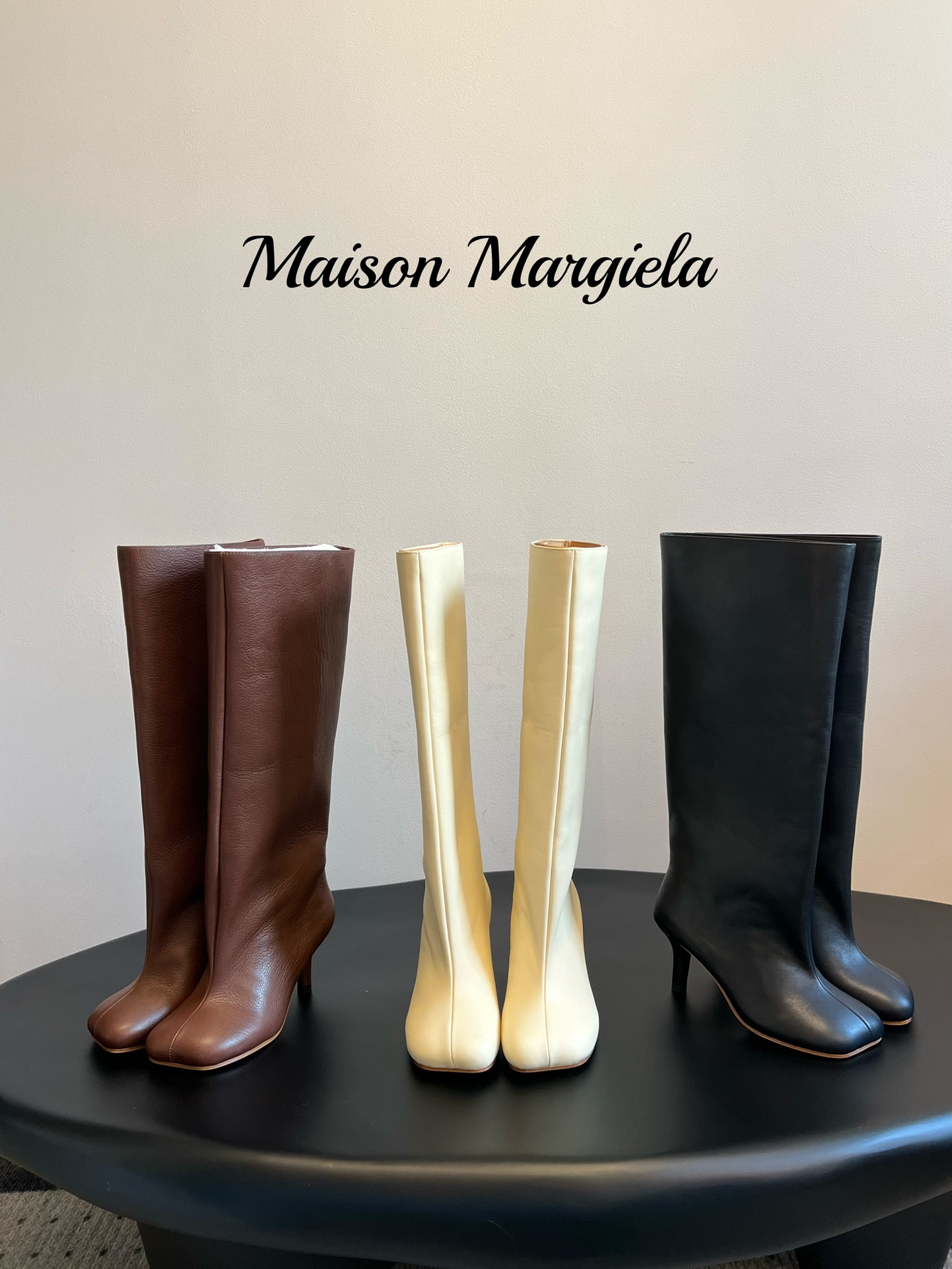 NIGO Maison Margiela Women's Fall/Winter Fashion Classic Leather Square-Toe Sleeve Heeled Long Leather Horseshoe Boots High Boots Shoes#nigo79315