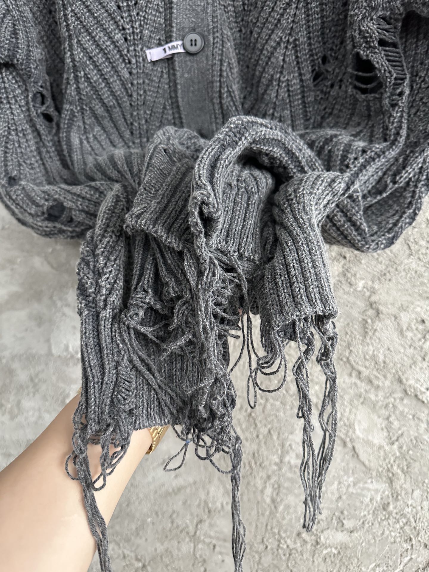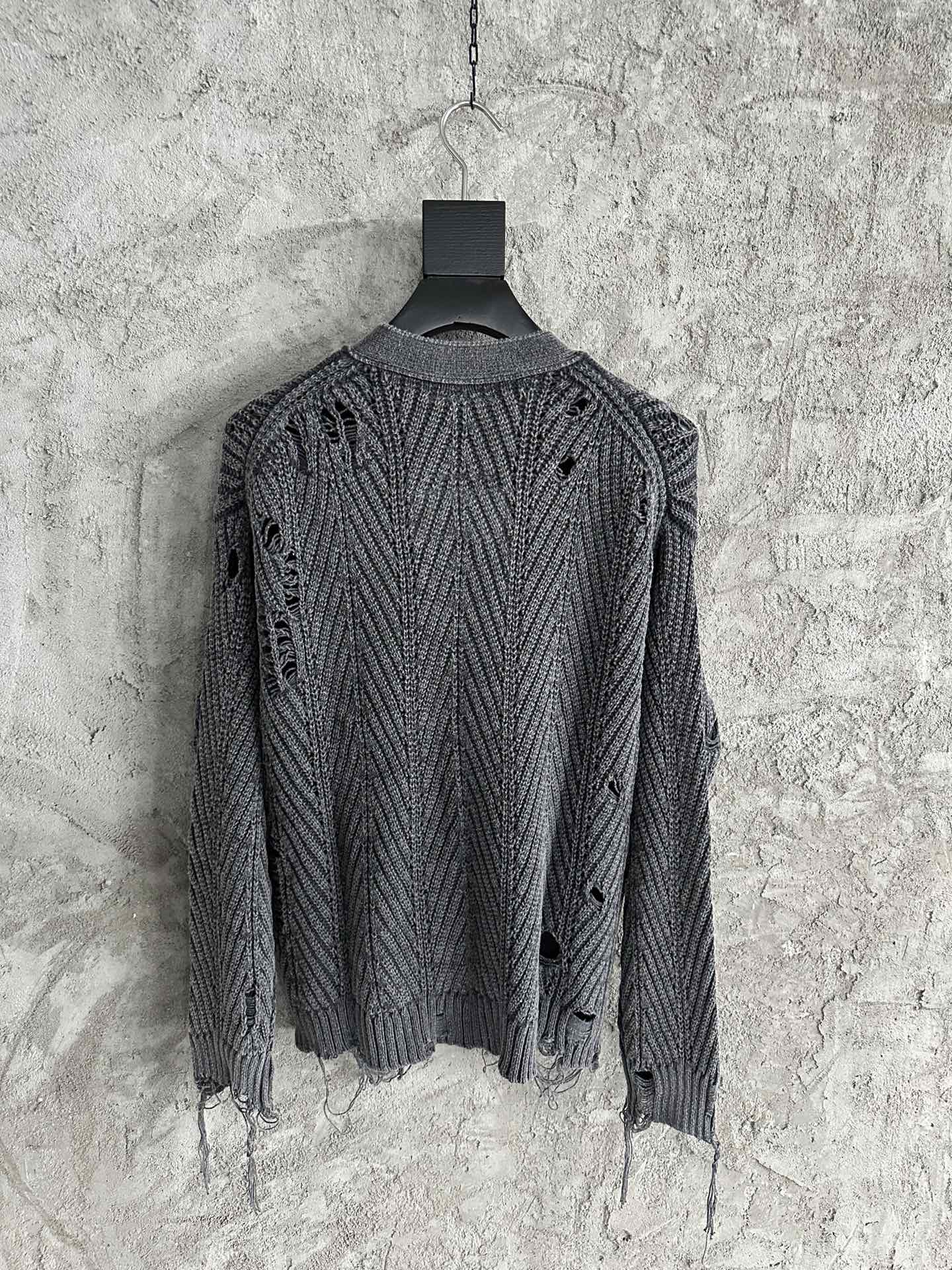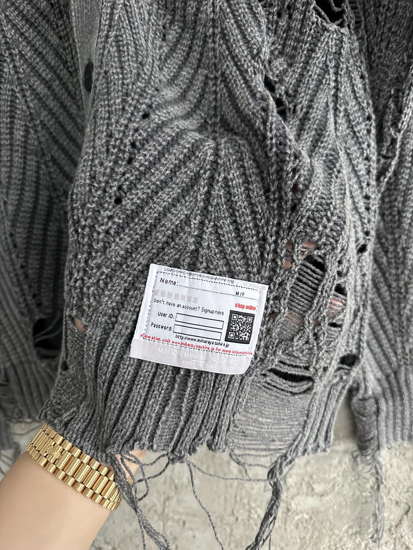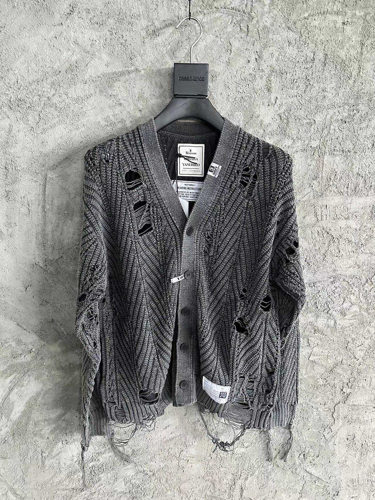 NIGO Maison Mihara Yasuhiro Men's Women's Autumn And Winter Retro Old High Street Hole Breaking Sweater Single Breasted V-neck Long Sleeve Knitted Cardigan Sweater Ngvp #nigo8791