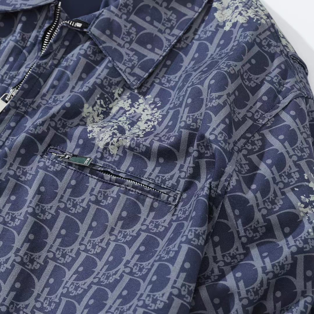 Dior TEARS Zipped Blouson Vintage Full Print Jacquard Denim Jacket #nigo96414