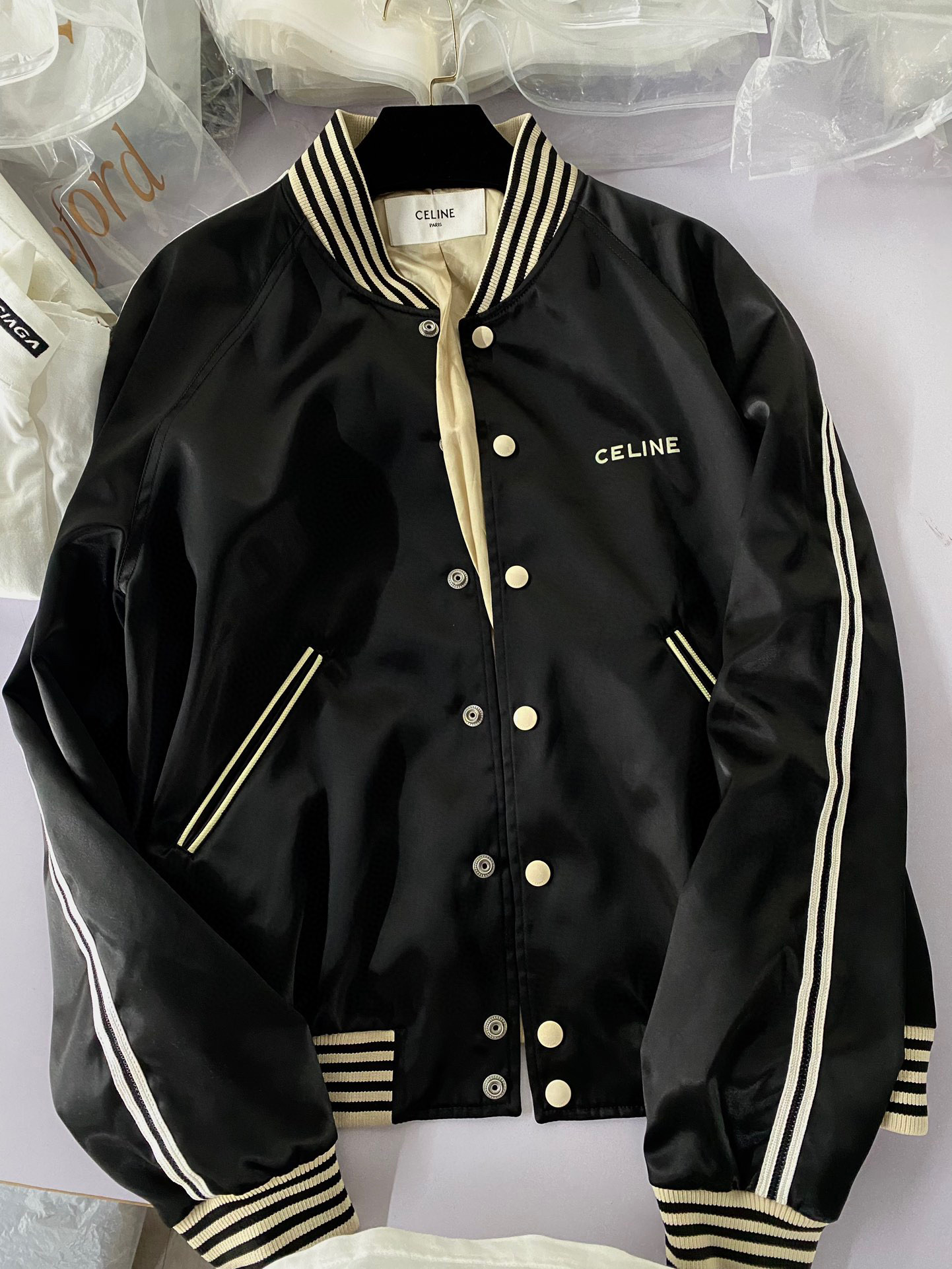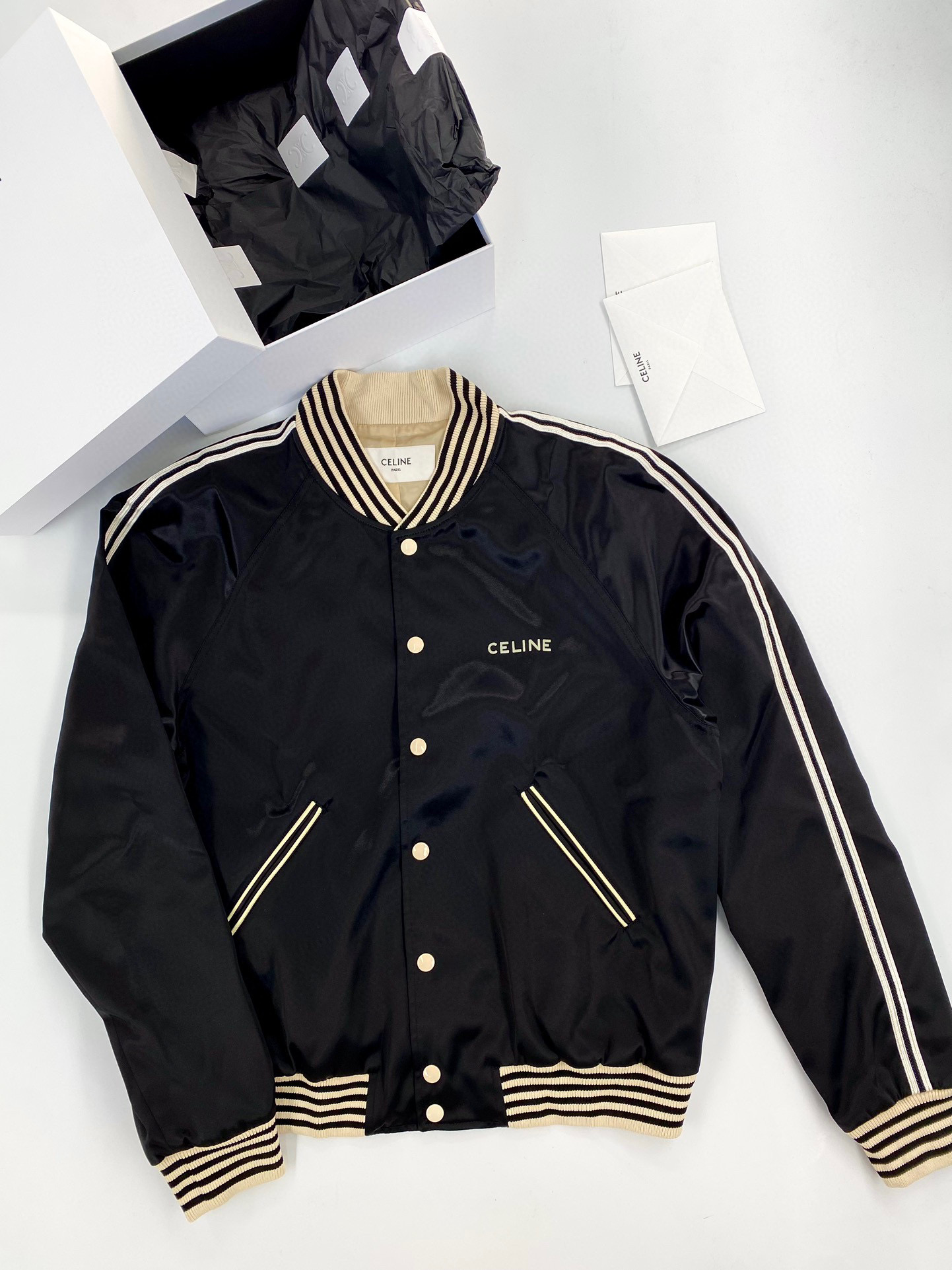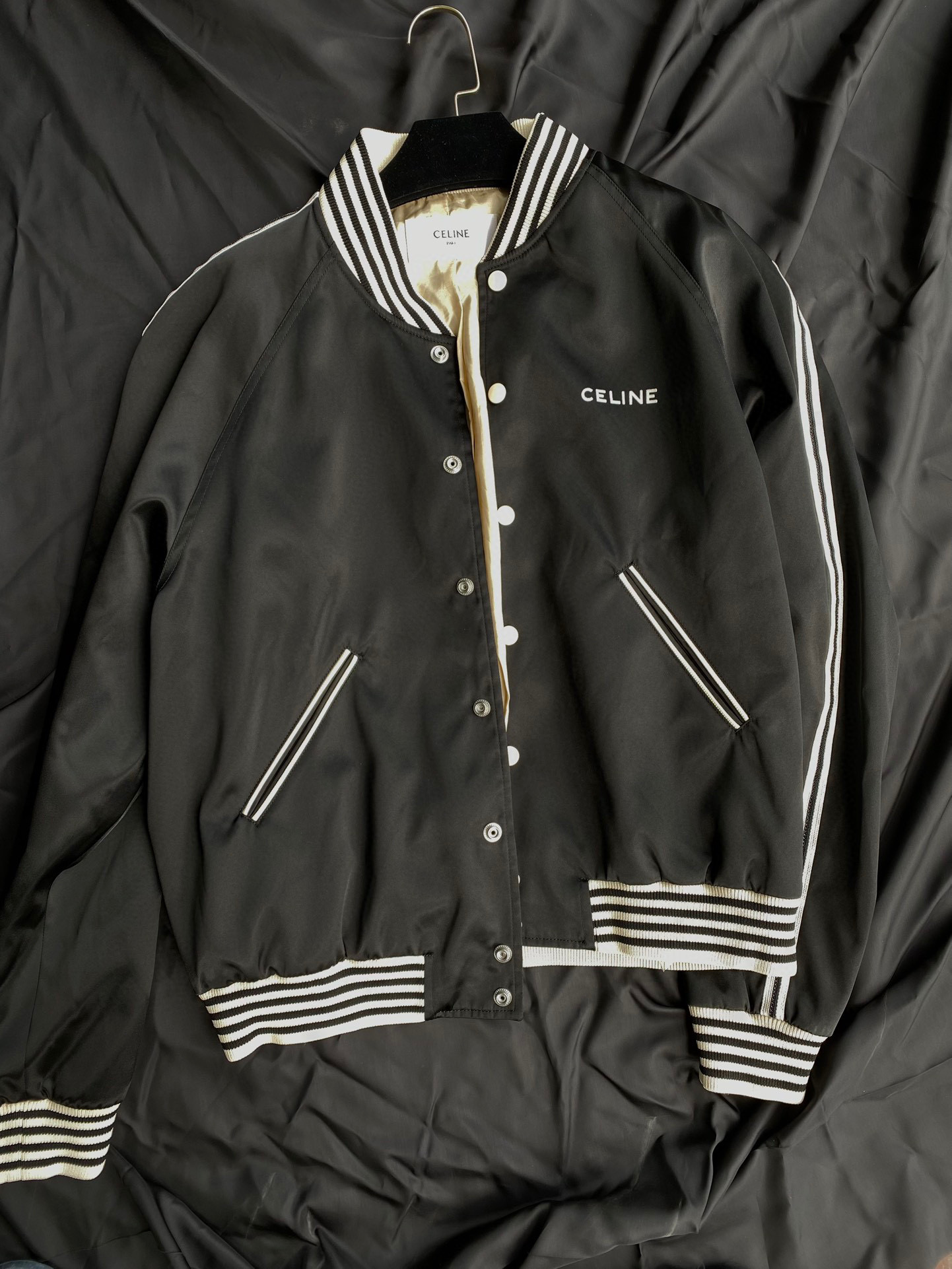 Celine Embroidered Teddy Jacket In Satin-Finish Nylon Logo Baseball Jacket #nigo96291