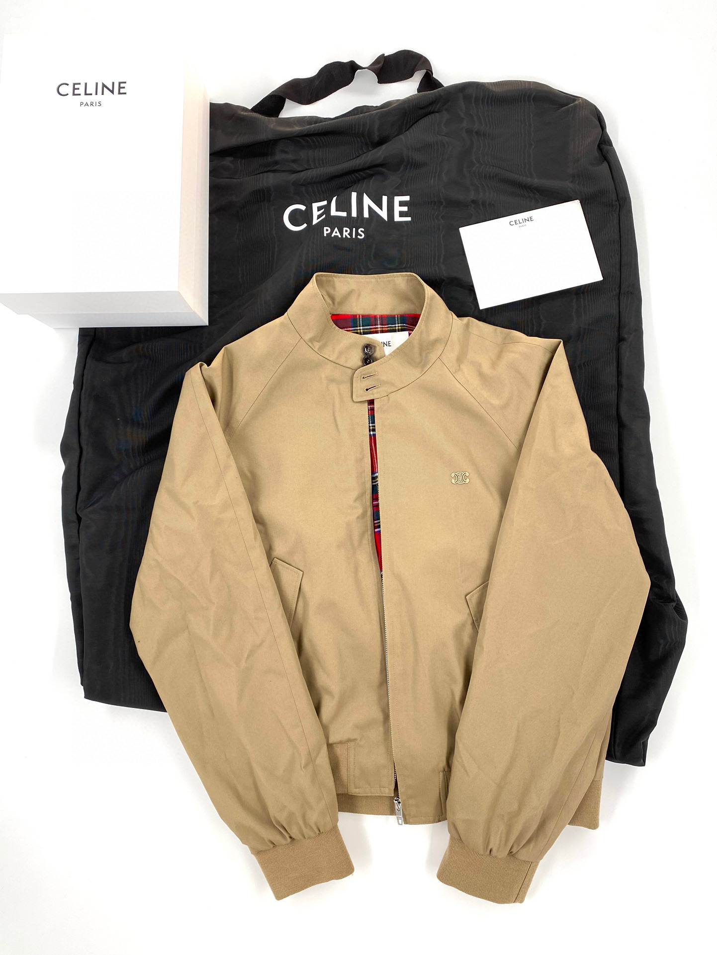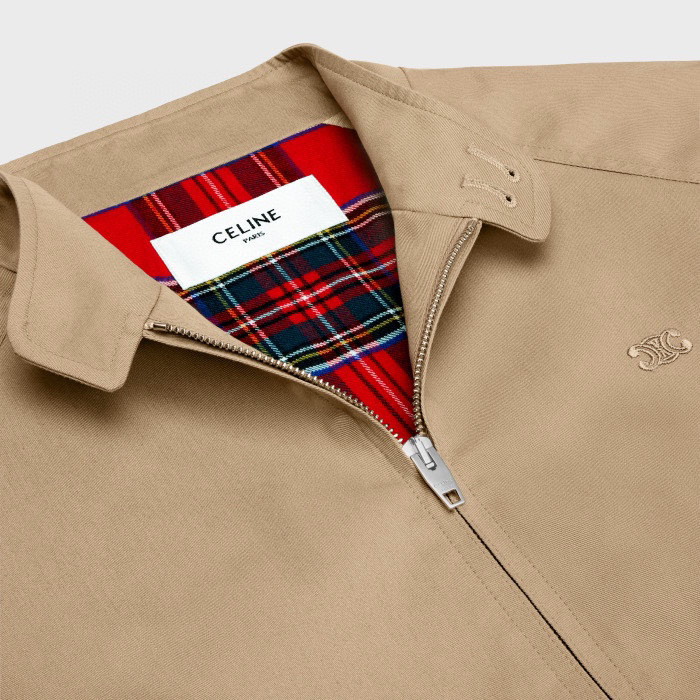 Celine Triomphe Blouson Jacket In Technical Cotton Men's Khaki Stand Collar Zip Jacket #nigo96292