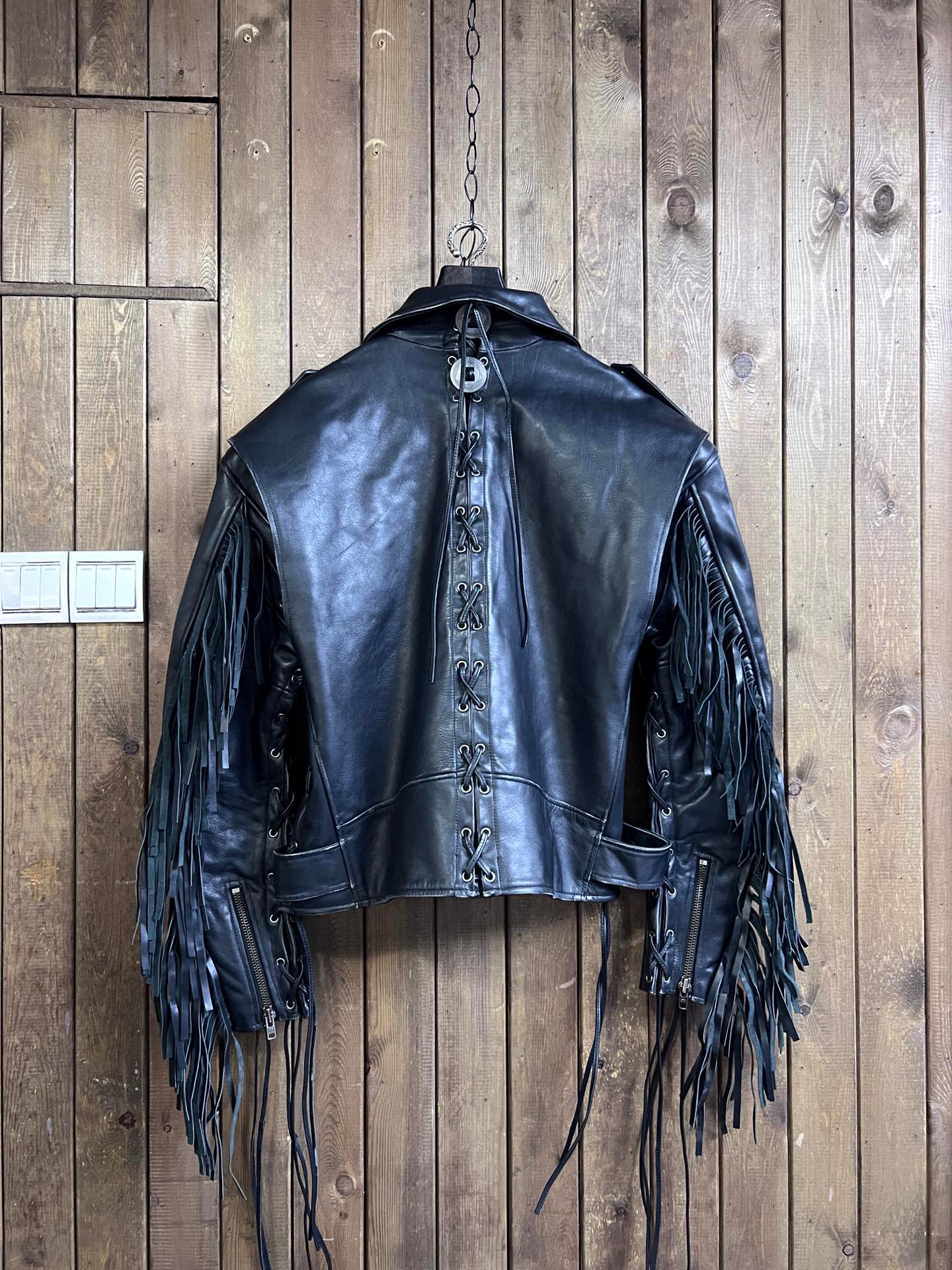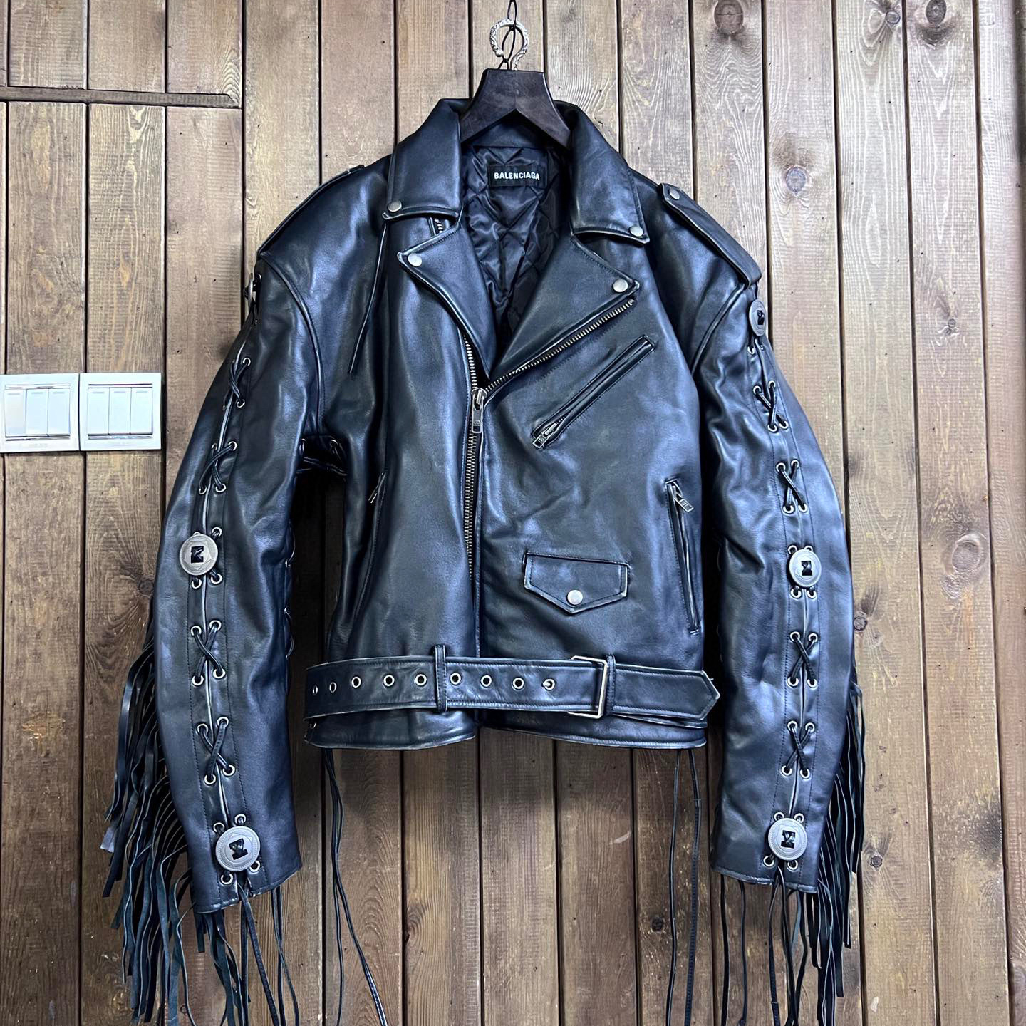 Balenciaga Men's Tassel Belt Western Leather Jacket Black #nigo6498