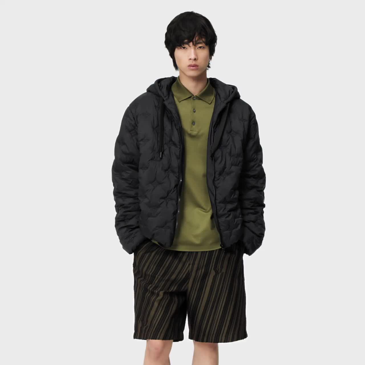 NIGO Louis Vuitton Monogram Quilted Hooded Blouson Button Puffer Down Jacket #nigo96338