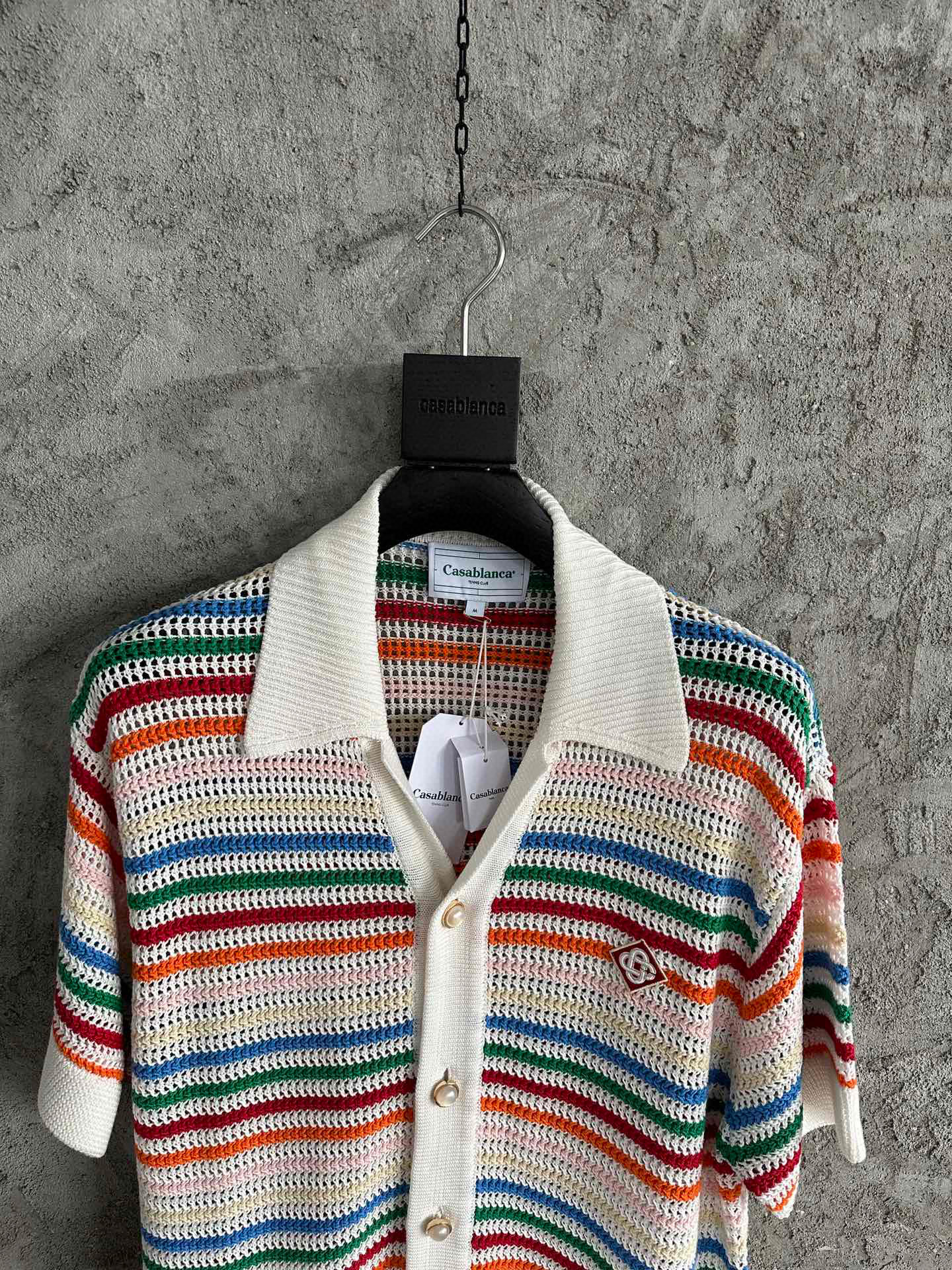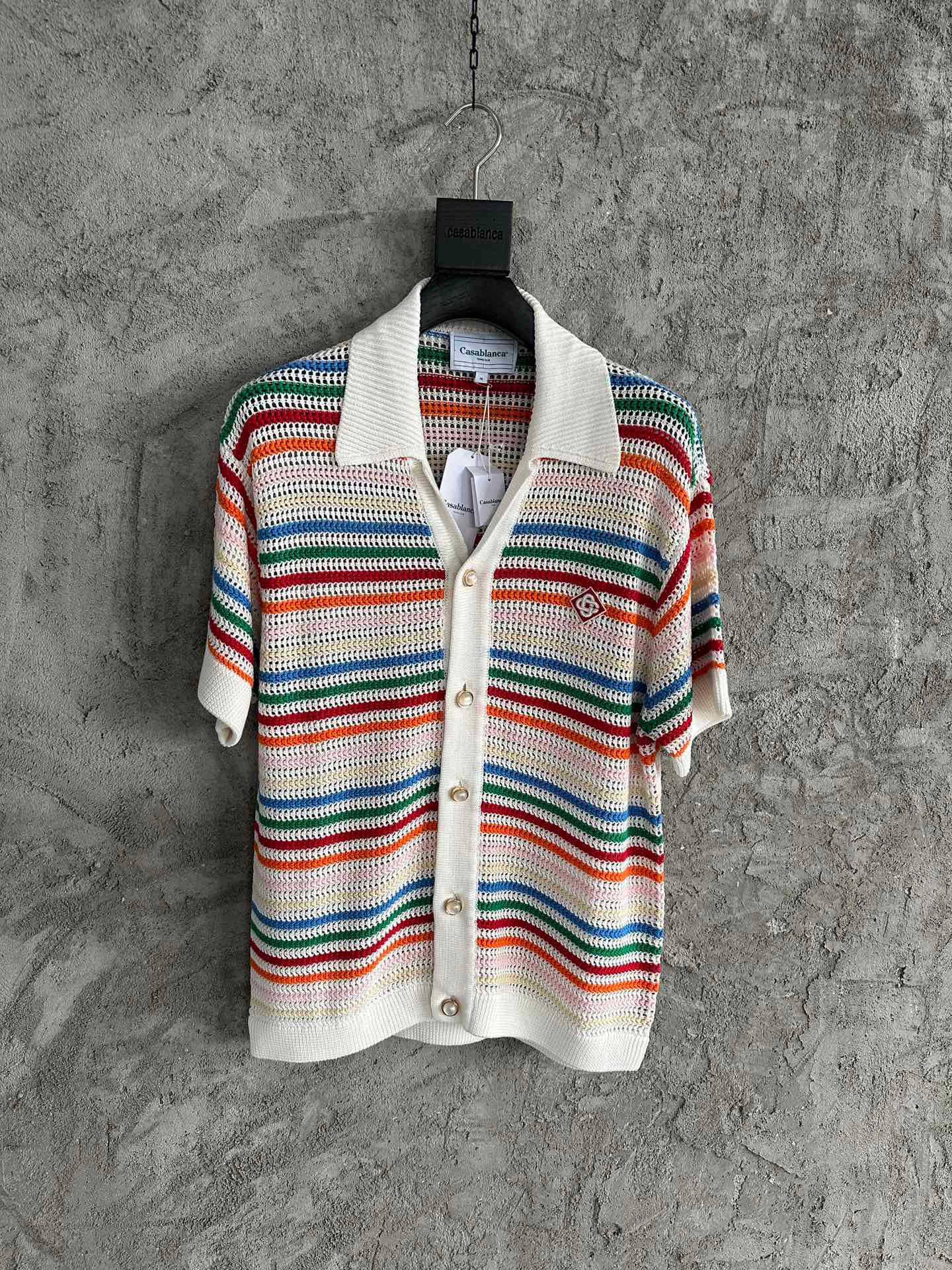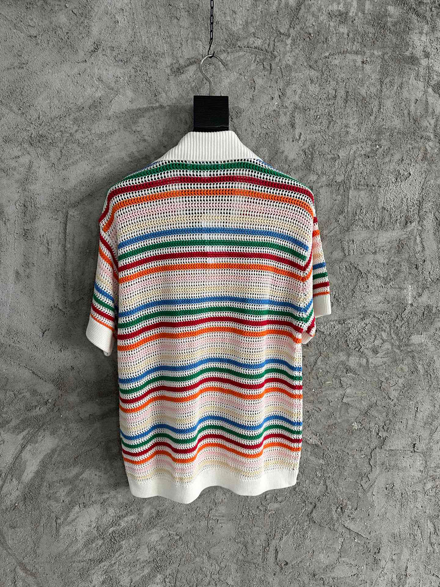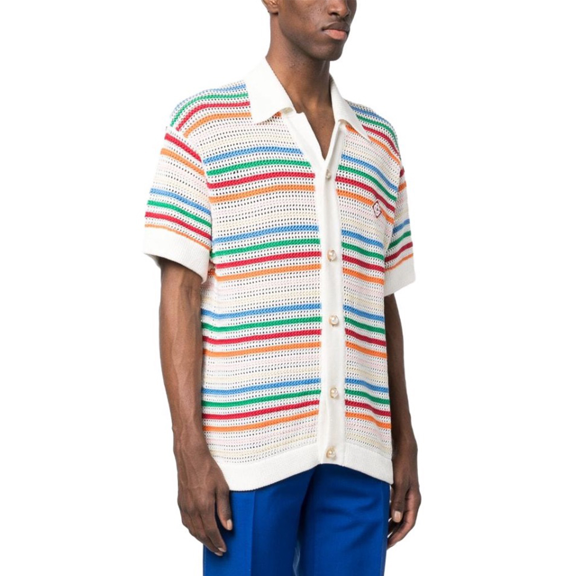 Casablanca NIGO Twisted Crochet Knit Striped Short Sleeve Shirt Cotton Shorts #nigo6394