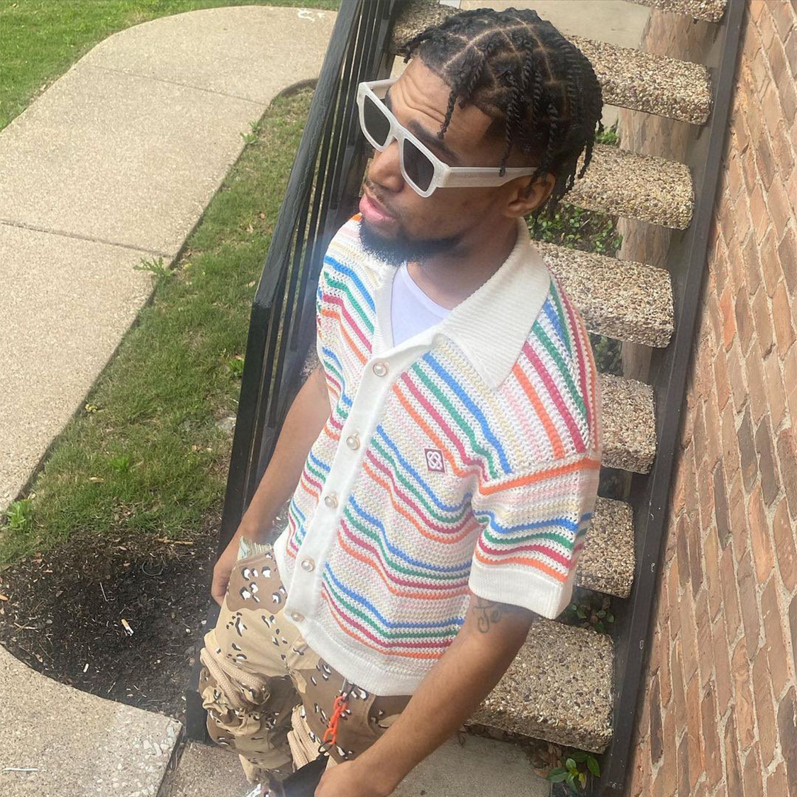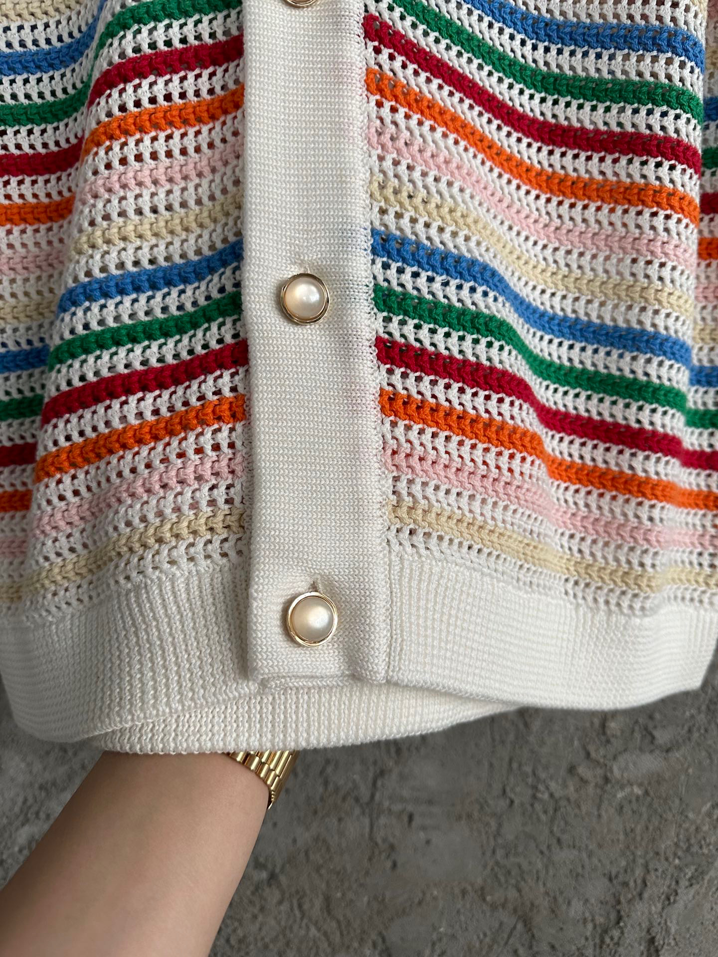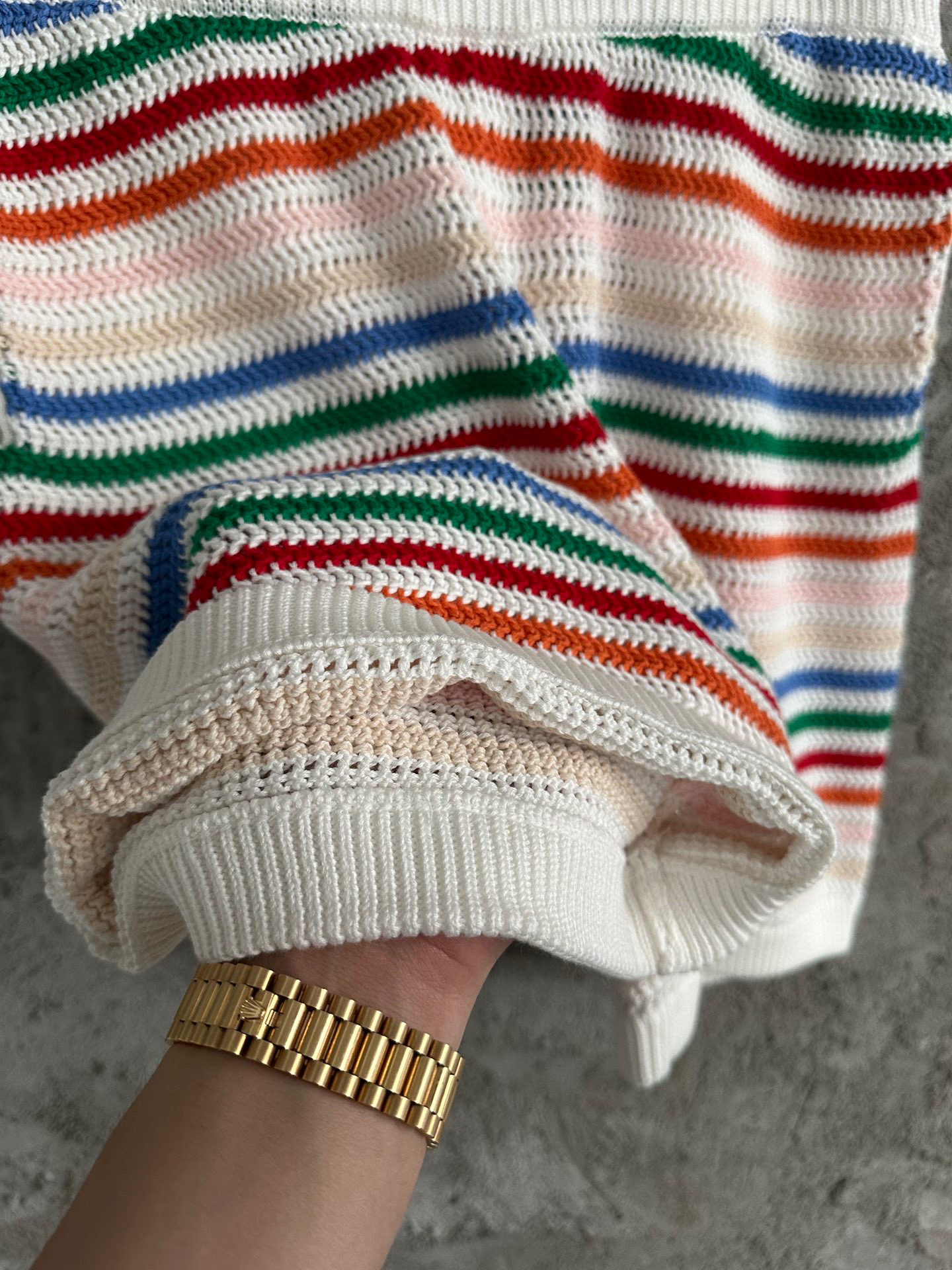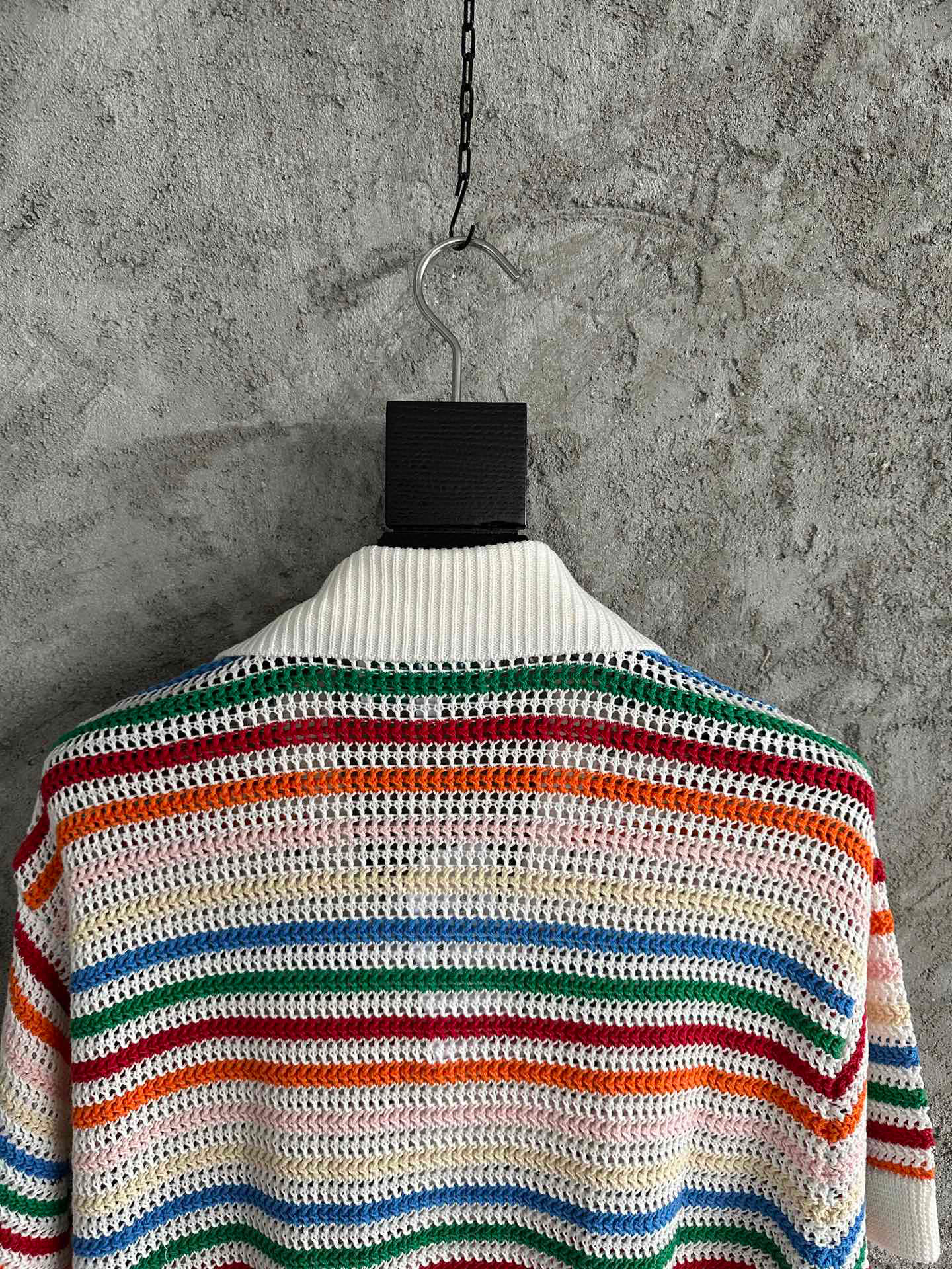 Casablanca NIGO Twisted Crochet Knit Striped Short Sleeve Shirt Cotton Shorts #nigo6394