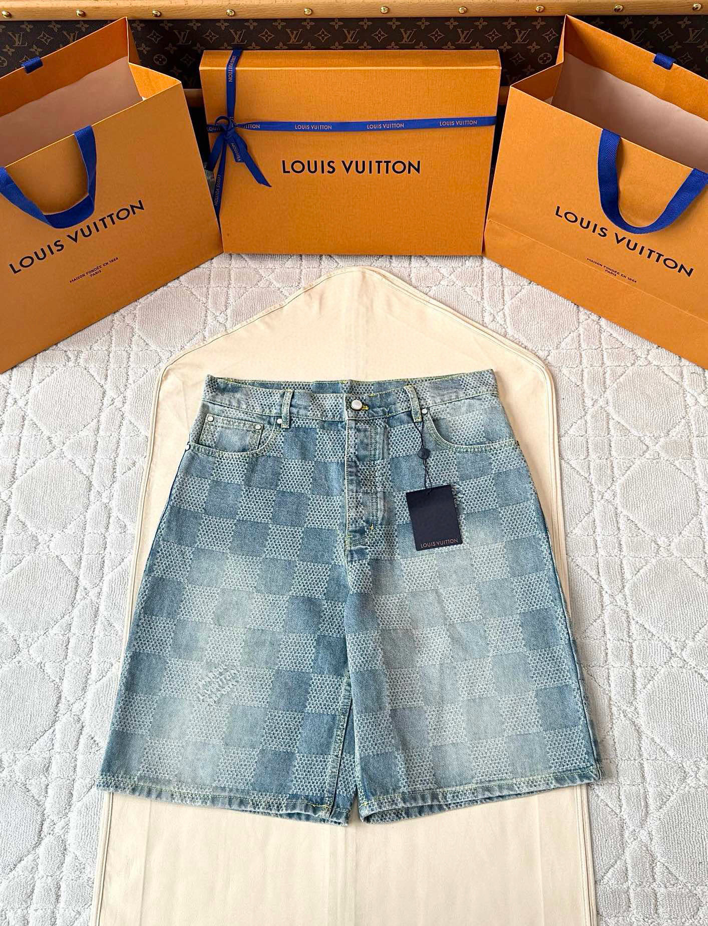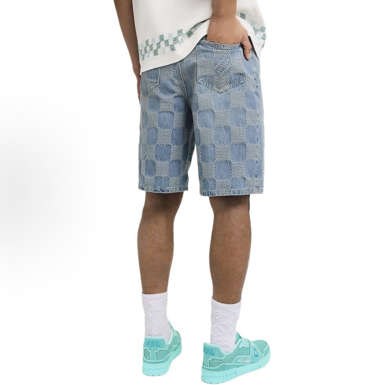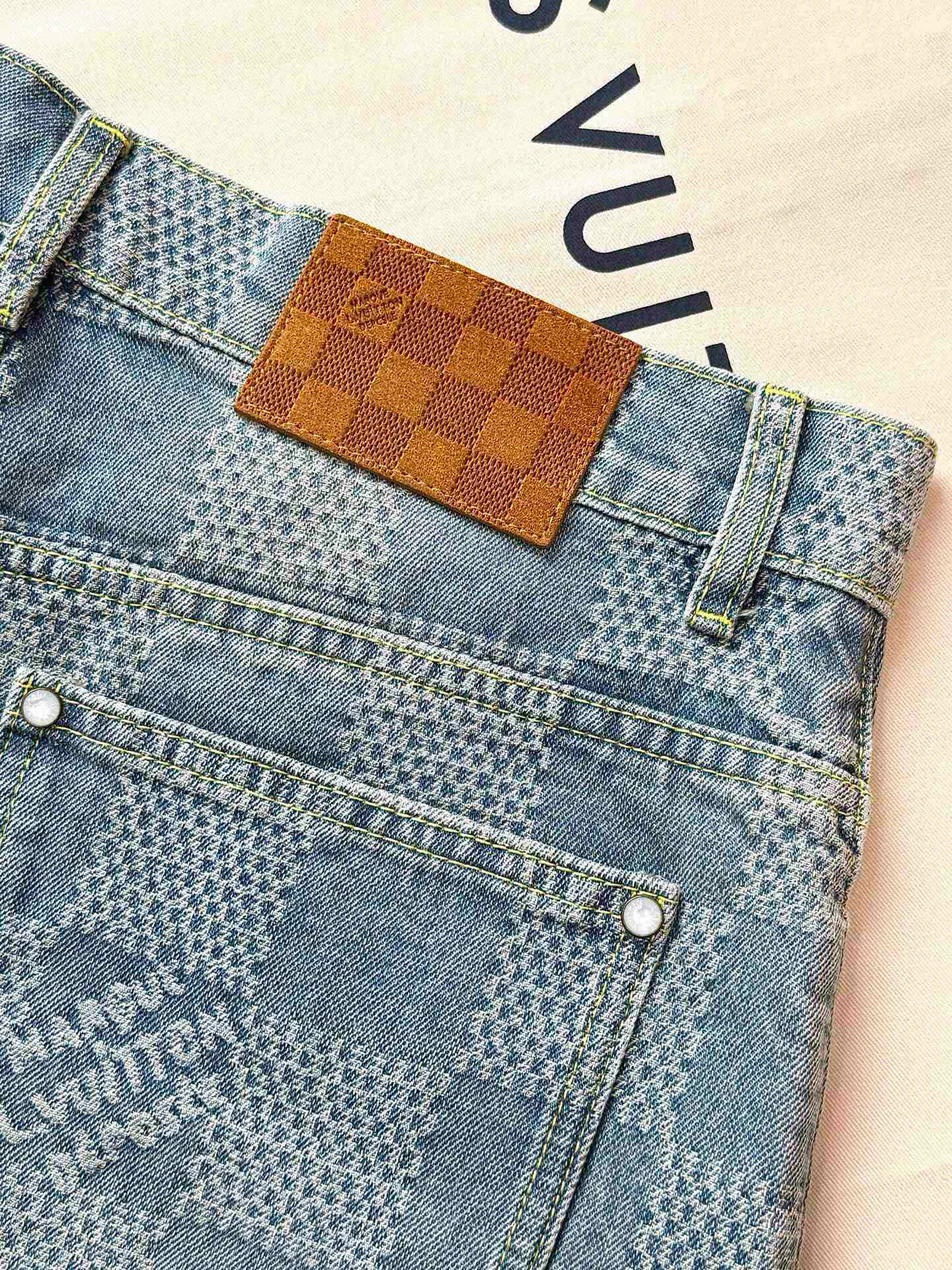 NIGO Louis Vuitton Men's Summer Solid Colour Checkerboard 3D Print Casual Denim Shorts #nigo76864
