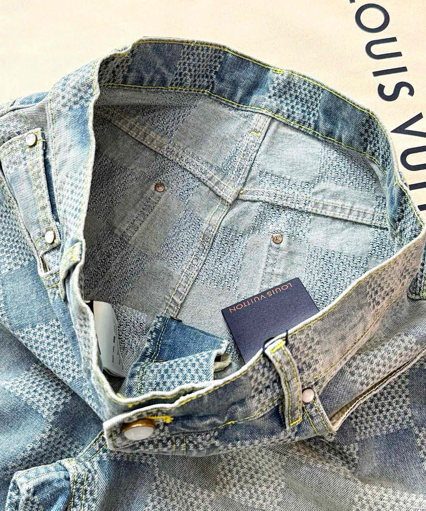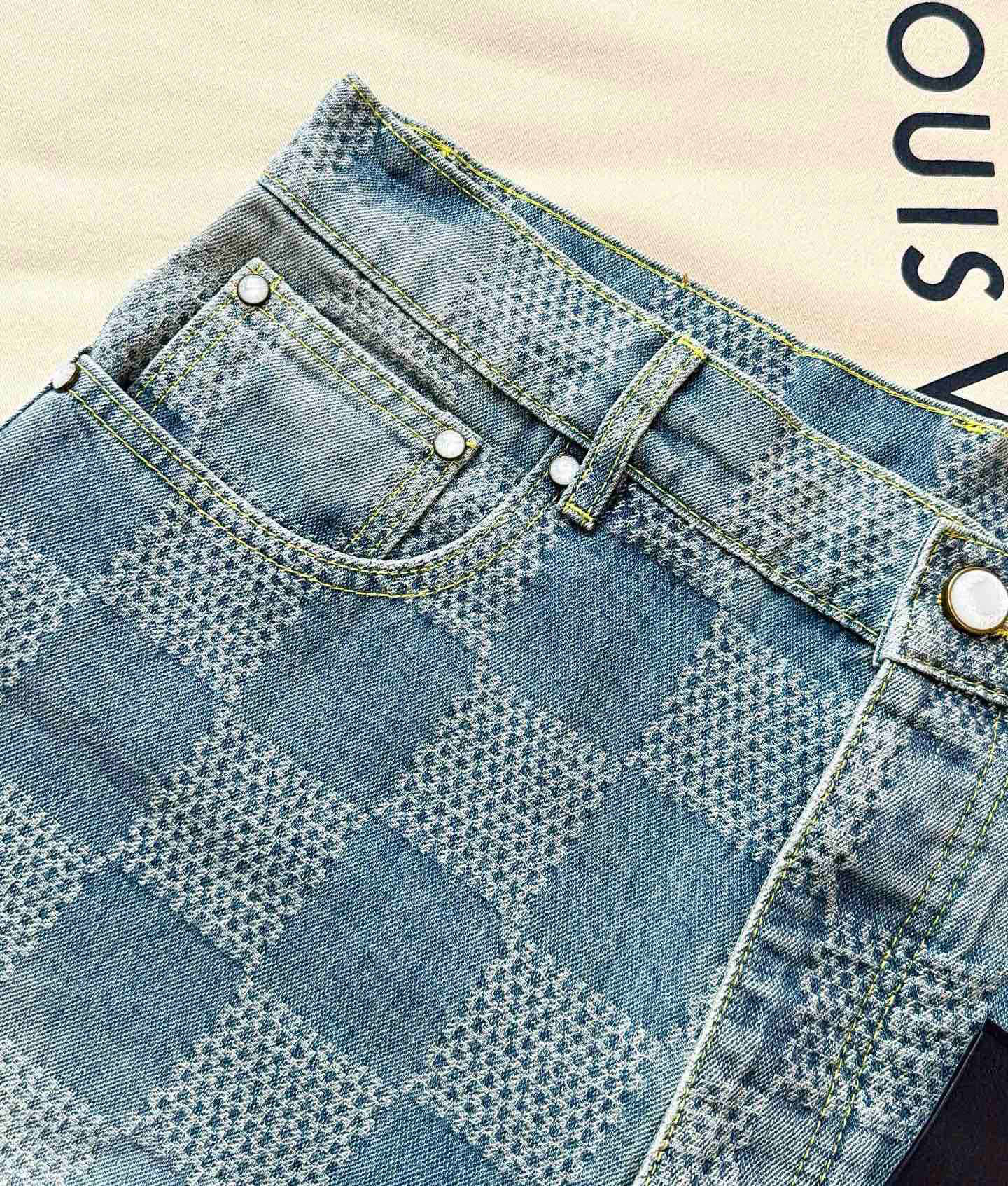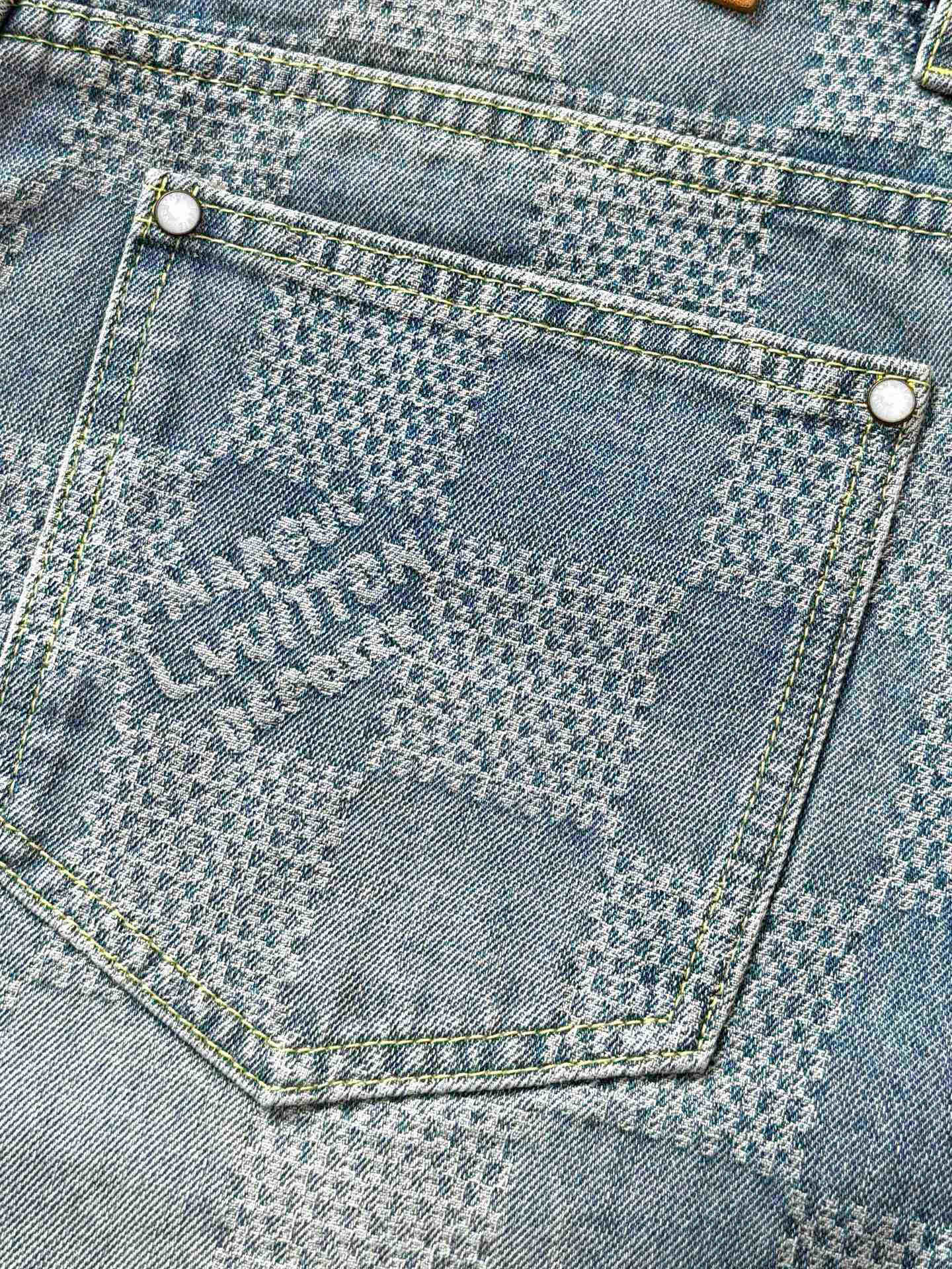 NIGO Louis Vuitton Men's Summer Solid Colour Checkerboard 3D Print Casual Denim Shorts #nigo76864