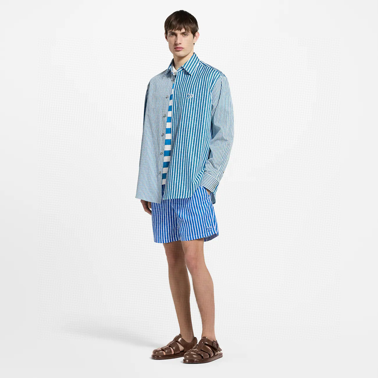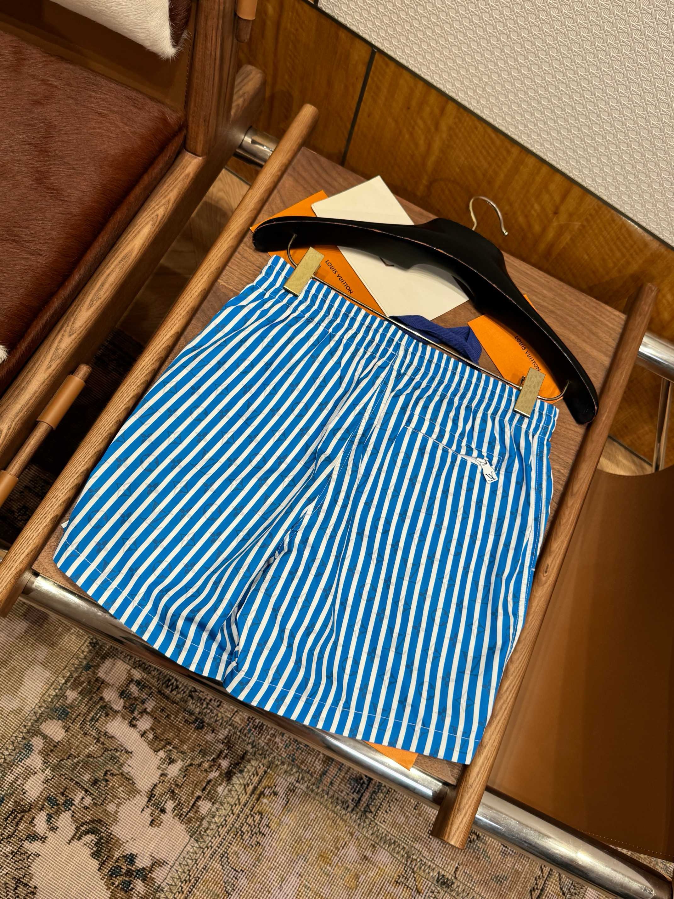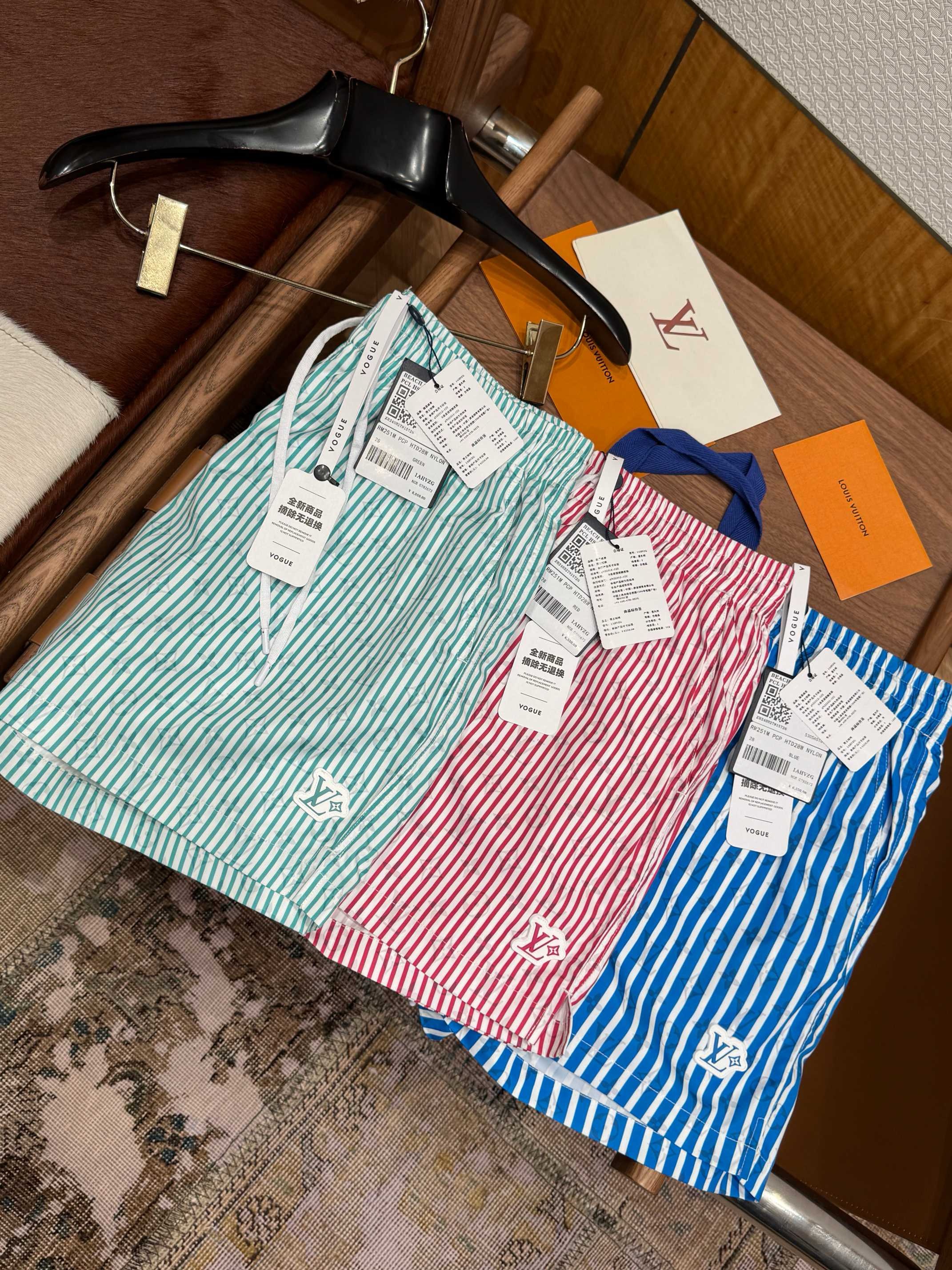 NIGO Louis Vuitton Men's Summer Solid Colour Striped Print Casual Drawstring Beach Shorts #nigo77411
