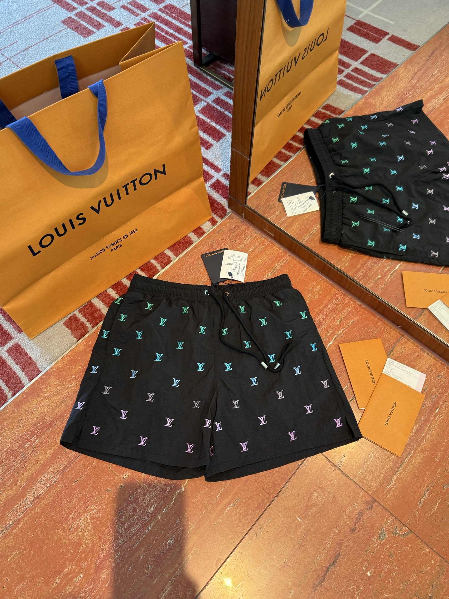 NIGO Louis Vuitton LV BLASON Men's Gradient Embroidered Logo Print Solid Color Drawstring Beach Shorts #nigo77563