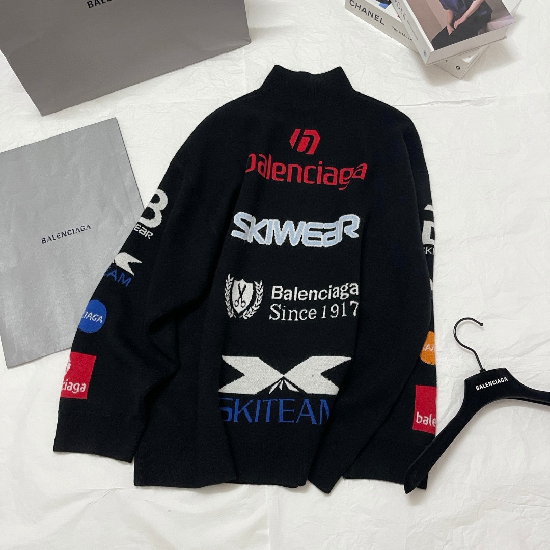 NIGO Balenciaga Men's and Women's Spring and Autumn Letter Printed High Neck Drop Shoulder Long Sleeve Sweater #nigo74155
