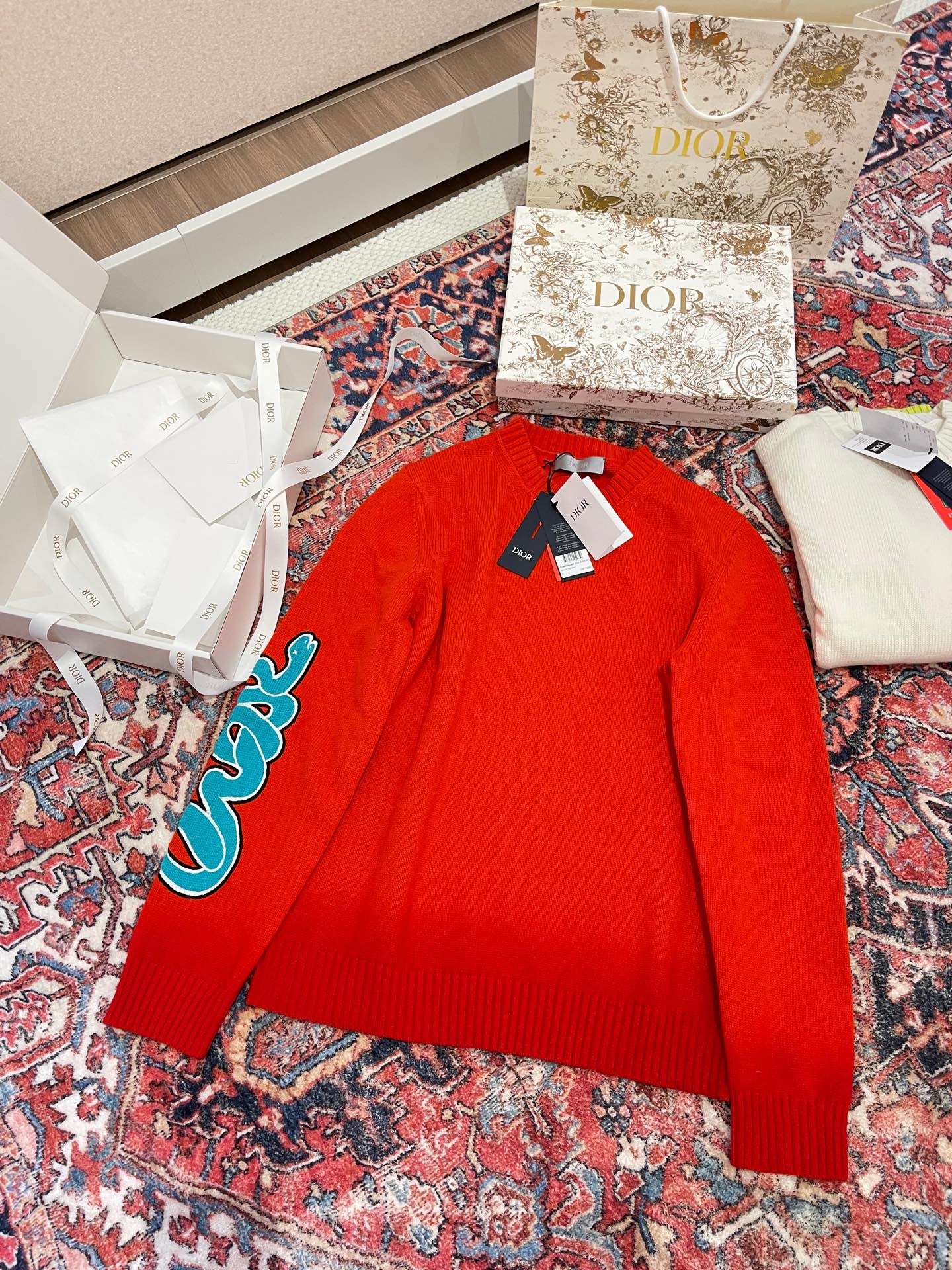 NIGO Dior Men's Dior And Kaws Sweater Spring, Fall And Winter Embroidered Crew Neck Gradient Long Sleeve Sweater #nigo71836
