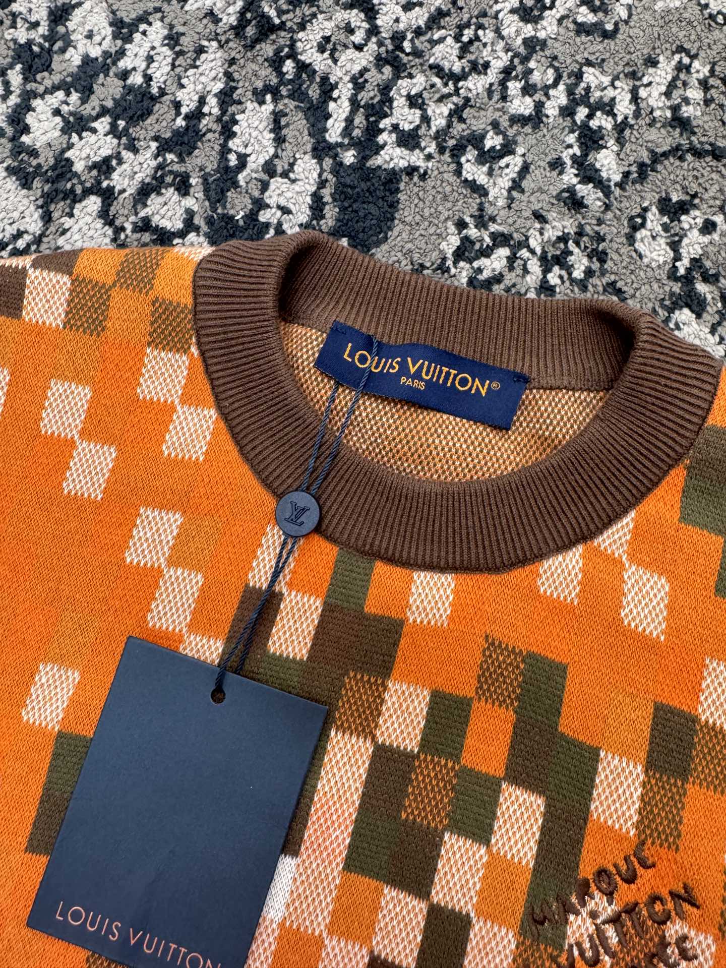 NIGO Louis Vuitton Men's LV LOVERS DAMOFLAGE Jacquard Embroidery Cotton Round Neck Spring and Autumn Long Sleeve Pullover Sweater #nigo71721