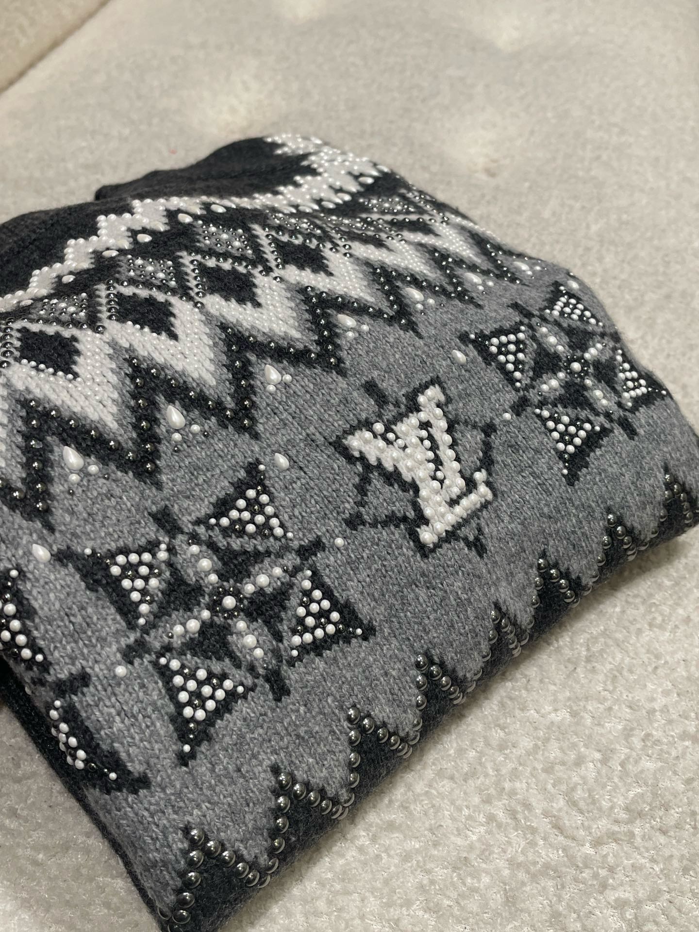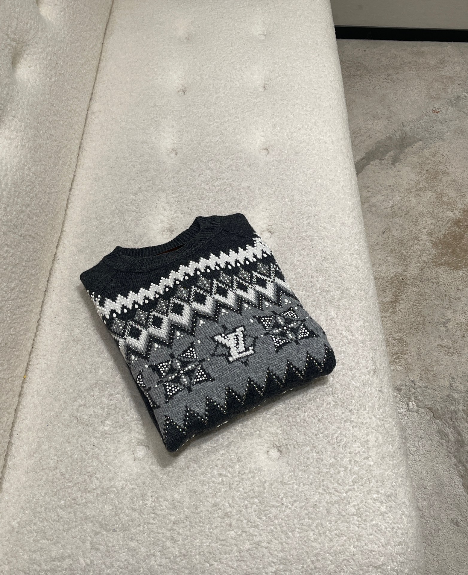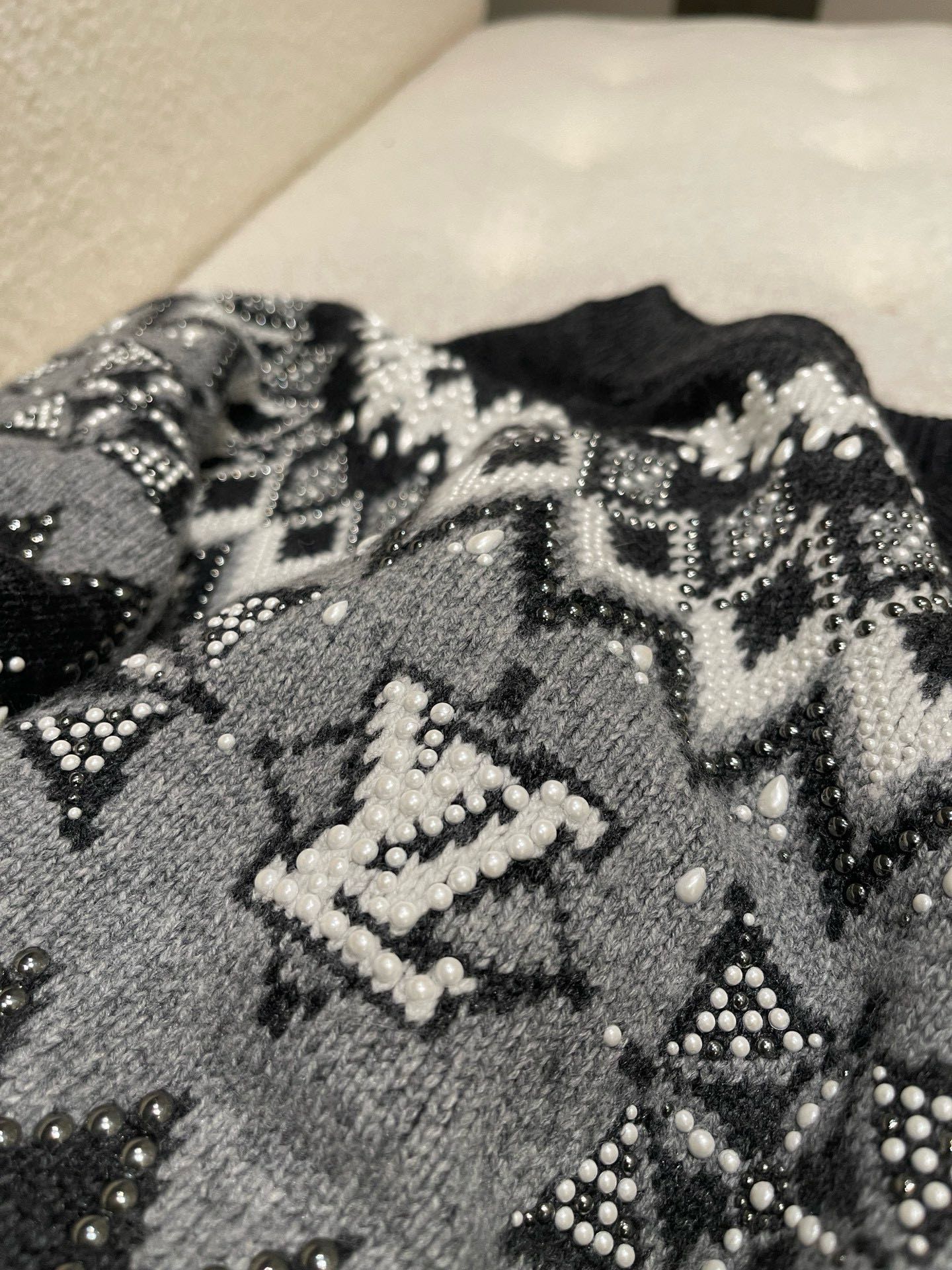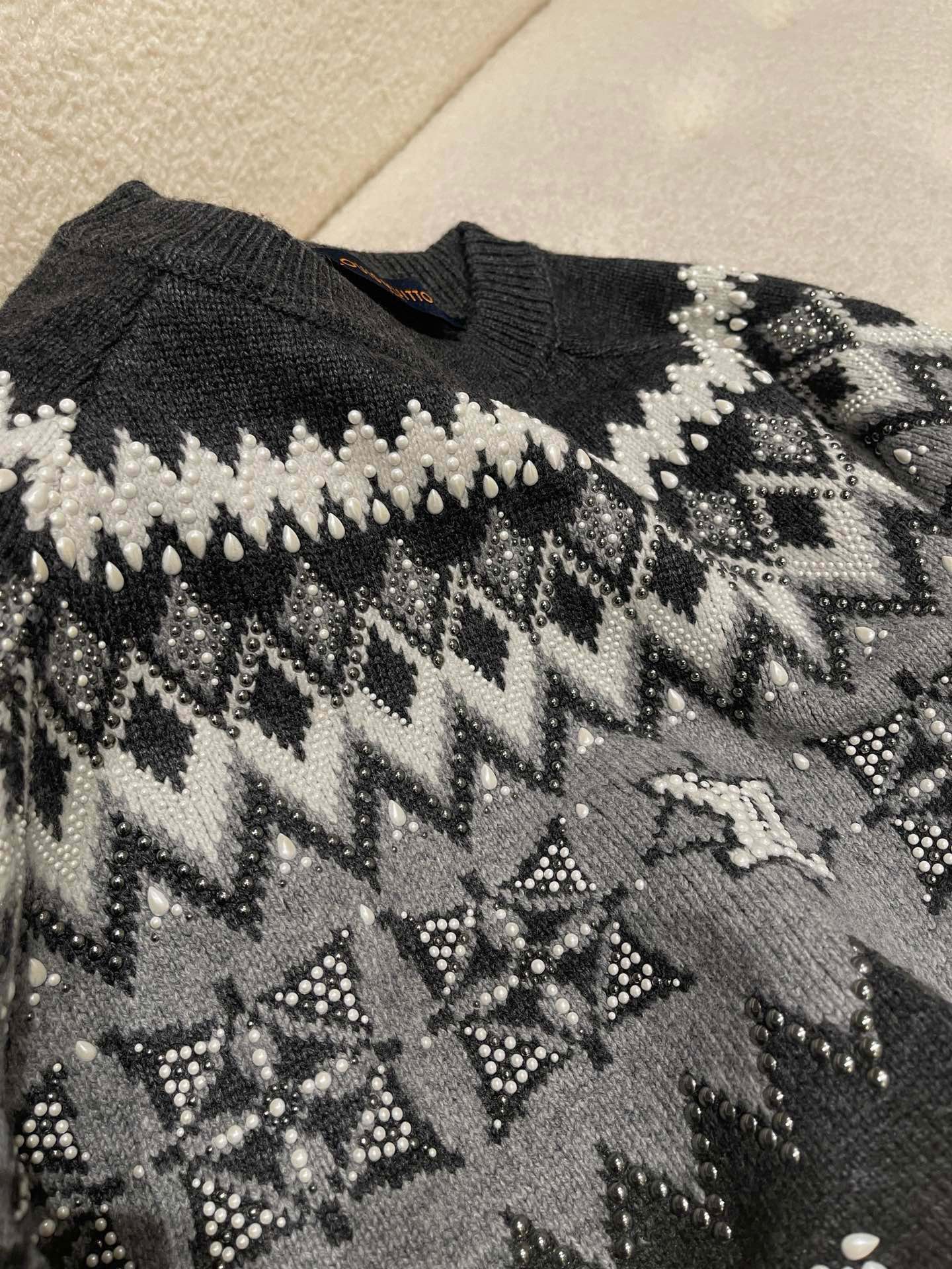 NIGO Louis Vuitton Men's Spring & Autumn Crew Neck Gray & White Embellished Cotton Wool Knit Sweater #nigo74322
