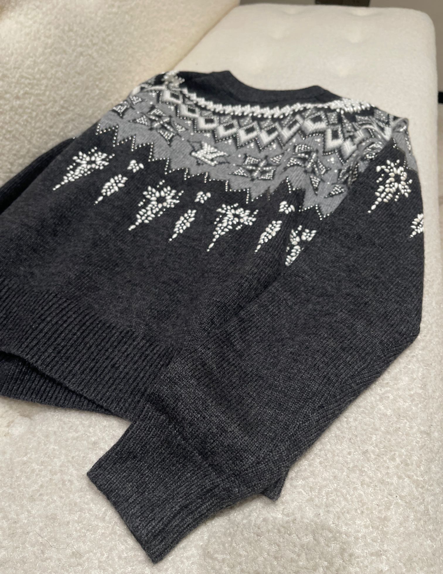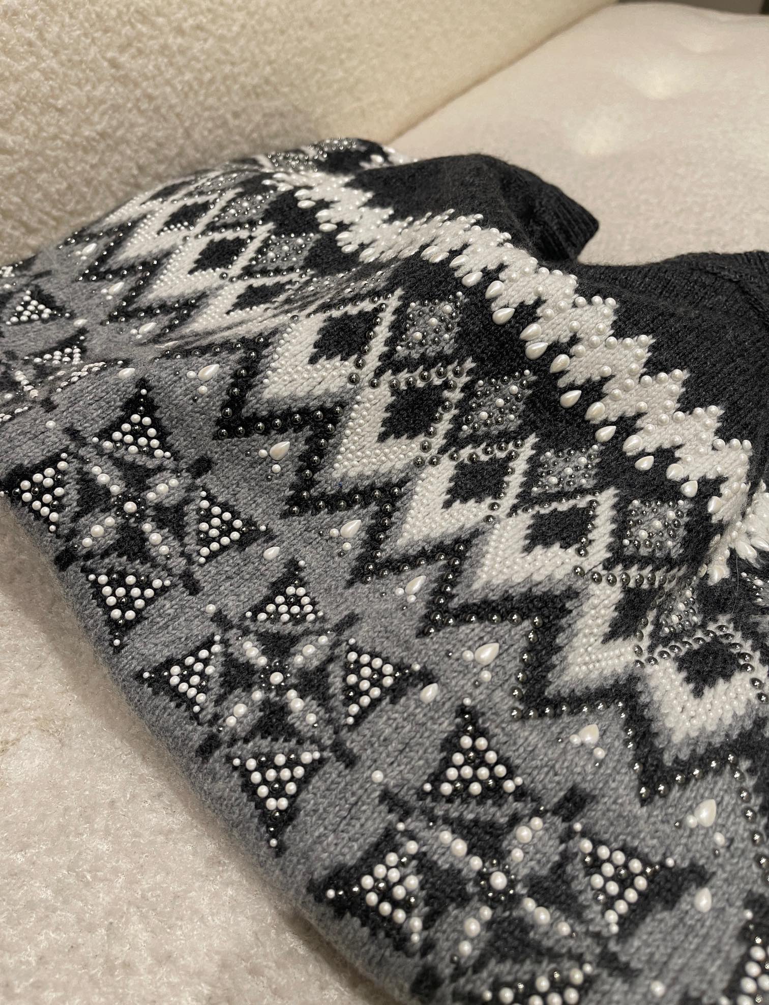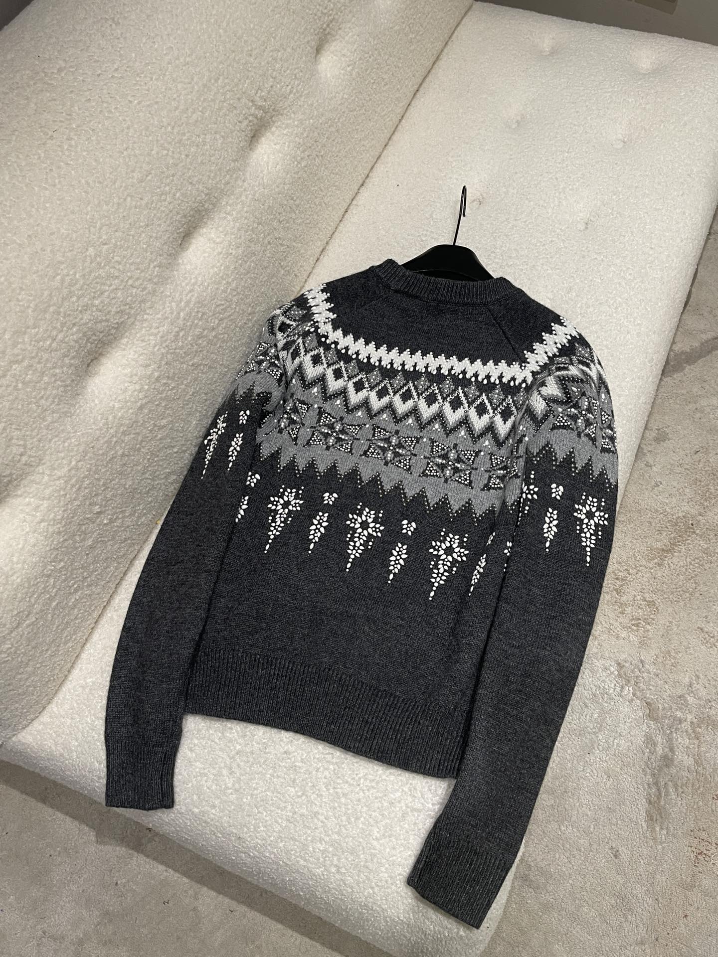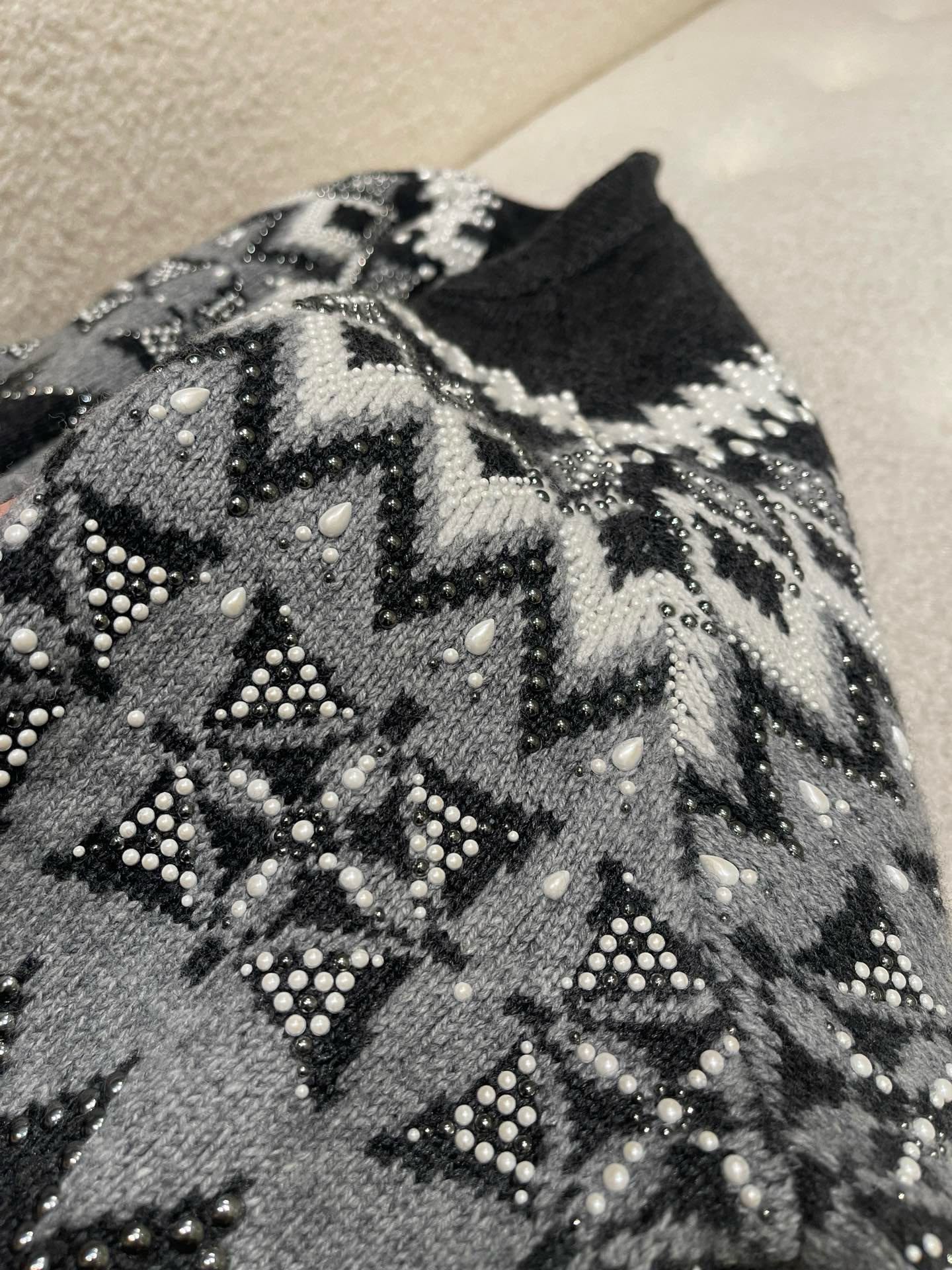 NIGO Louis Vuitton Men's Spring & Autumn Crew Neck Gray & White Embellished Cotton Wool Knit Sweater #nigo74322