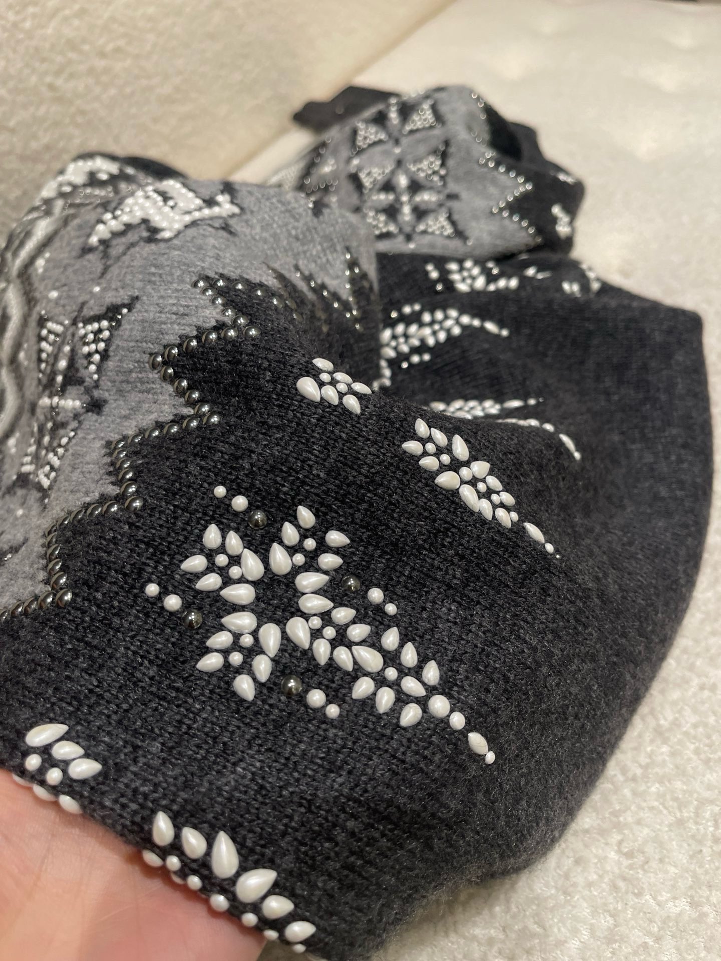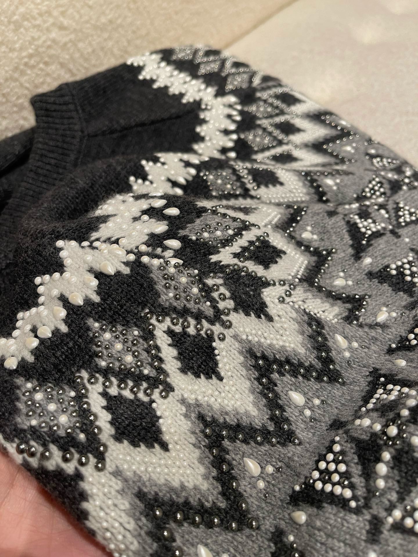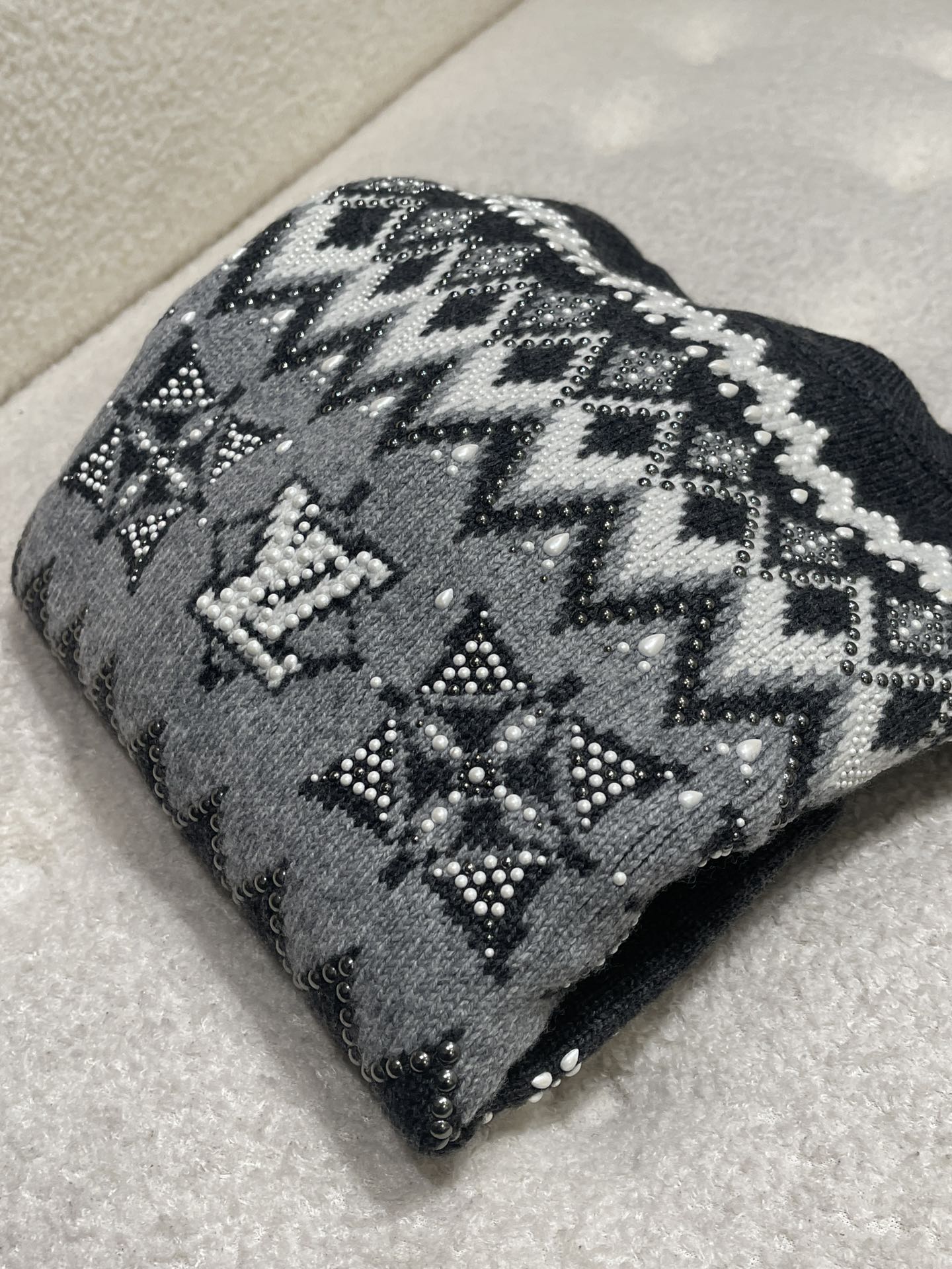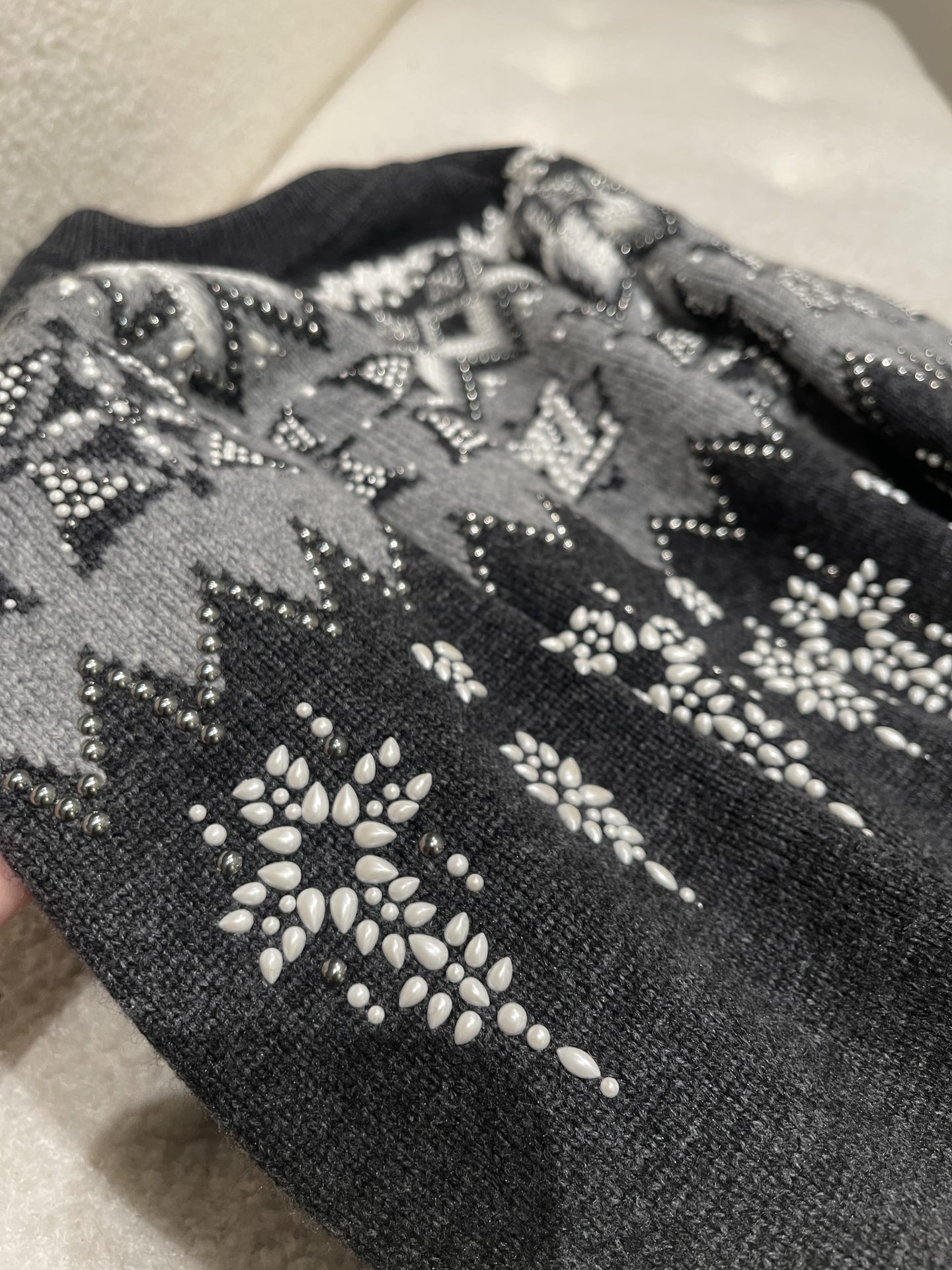 NIGO Louis Vuitton Men's Spring & Autumn Crew Neck Gray & White Embellished Cotton Wool Knit Sweater #nigo74322