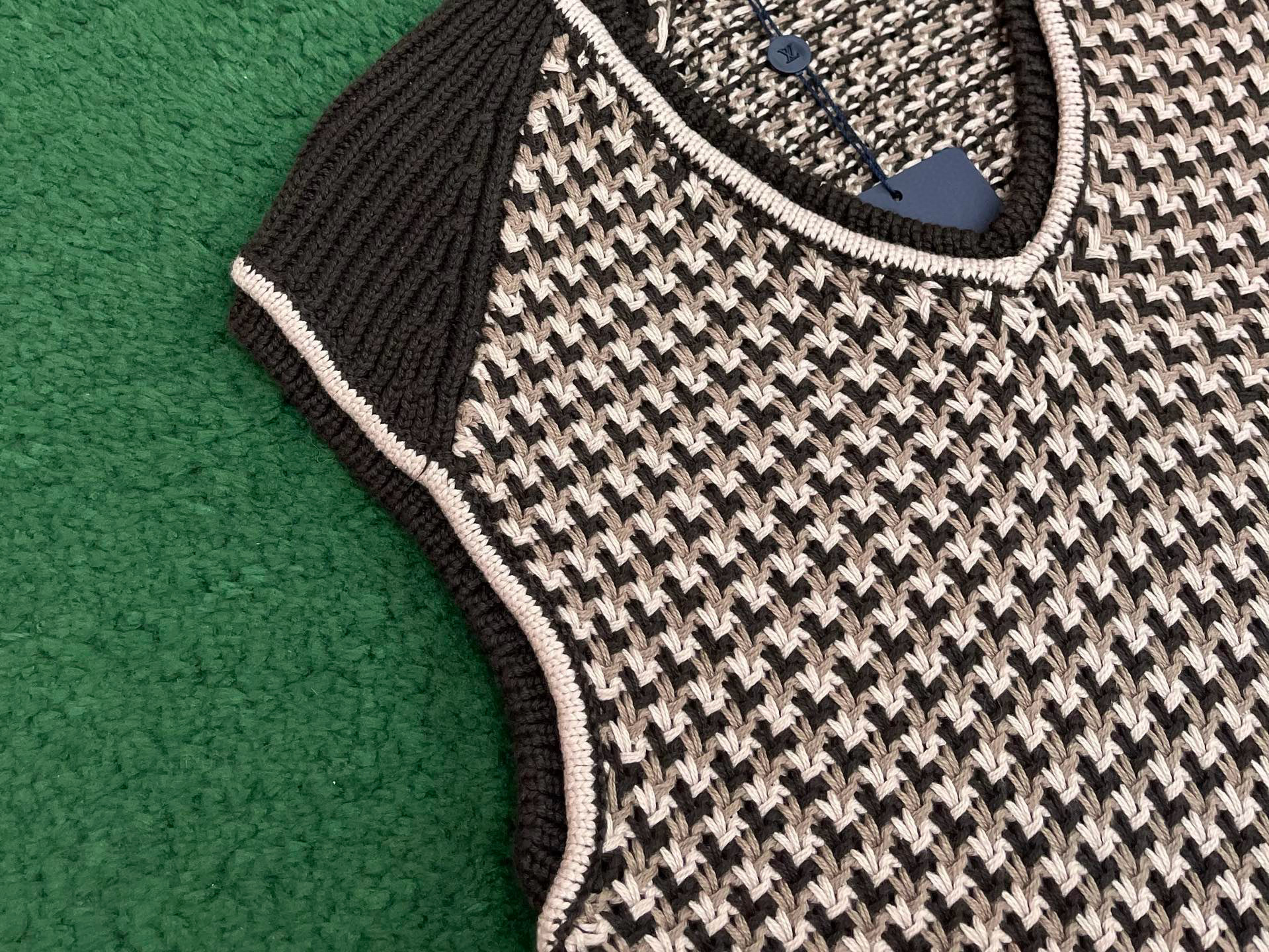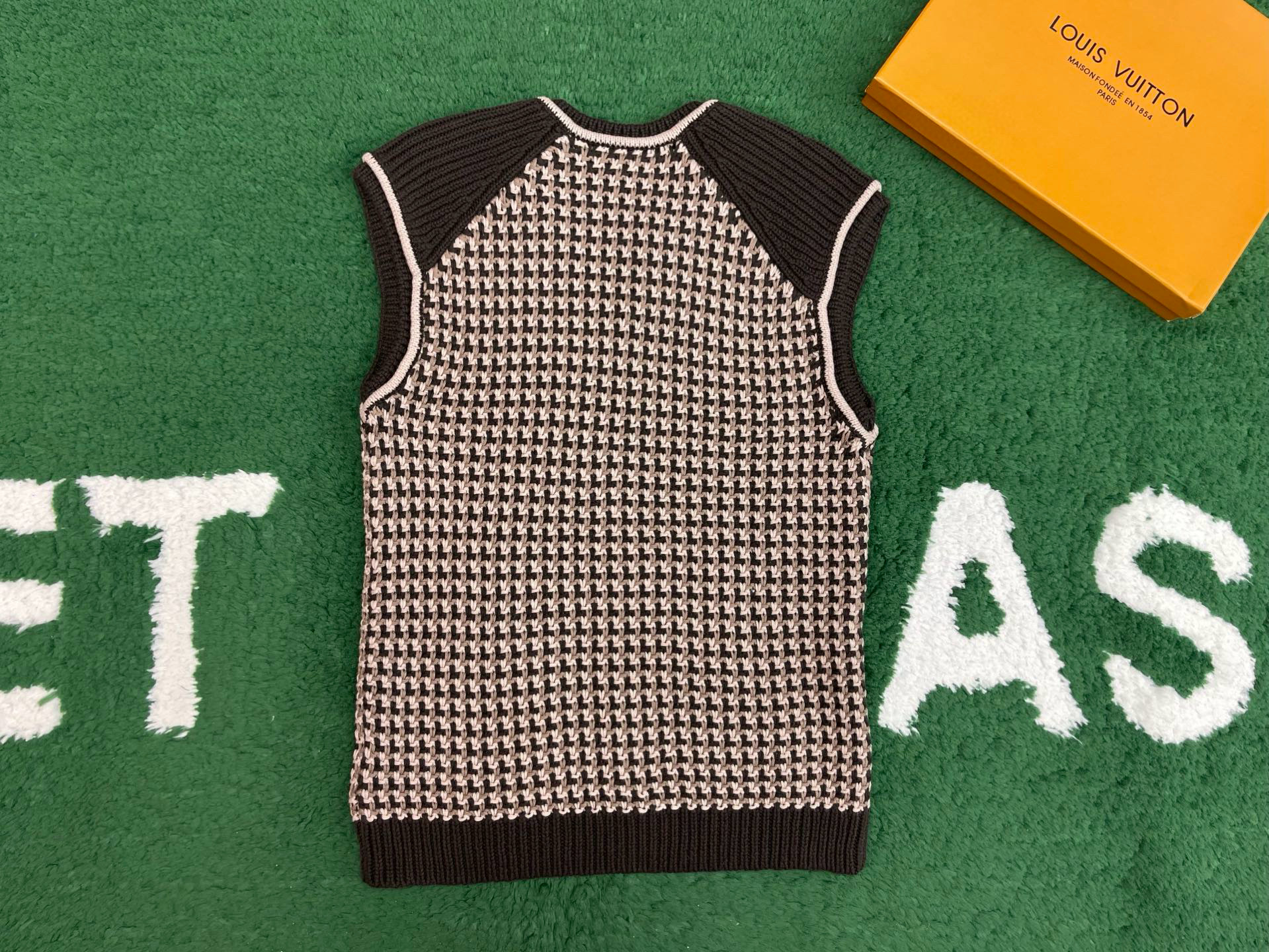 NIGO Louis Vuitton Men's Spring/Summer Brown Jacquard Cotton V-Neck Sleeveless Knitted Vest Sweater #nigo77199