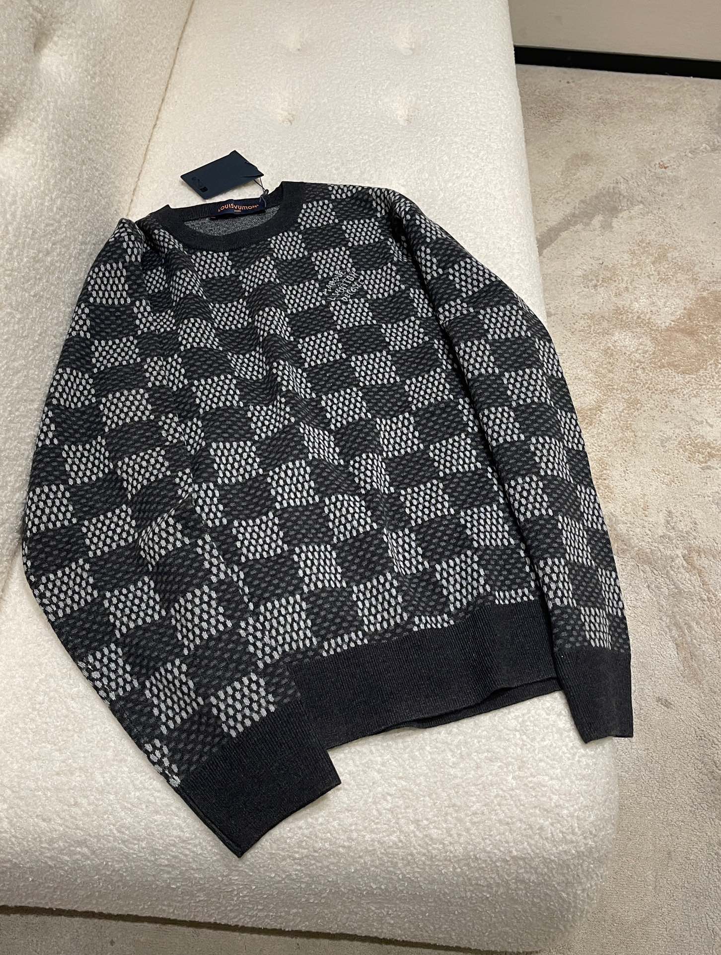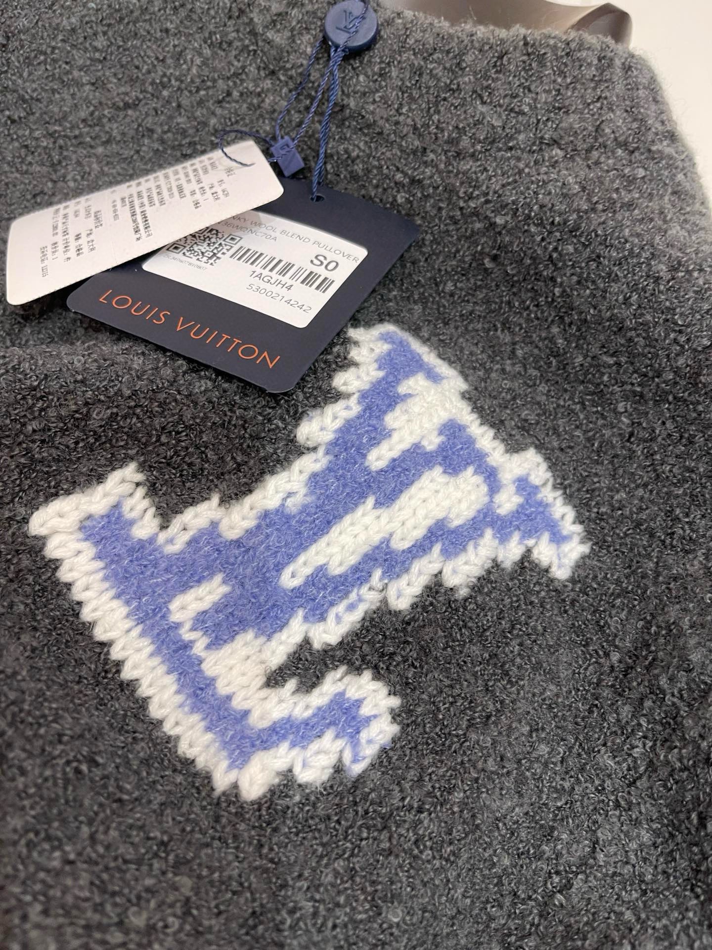 NIGO Louis Vuitton Men's Spring and Autumn Solid Color Embroidery Logo Printed Crew Neck Knit Wool Sweater #nigo73953