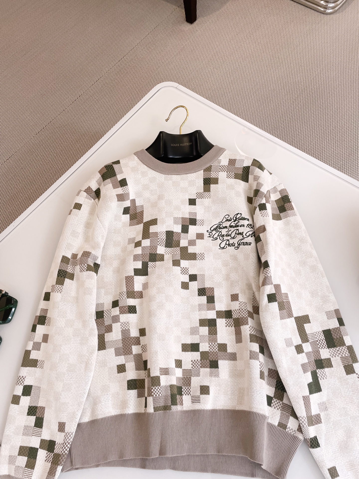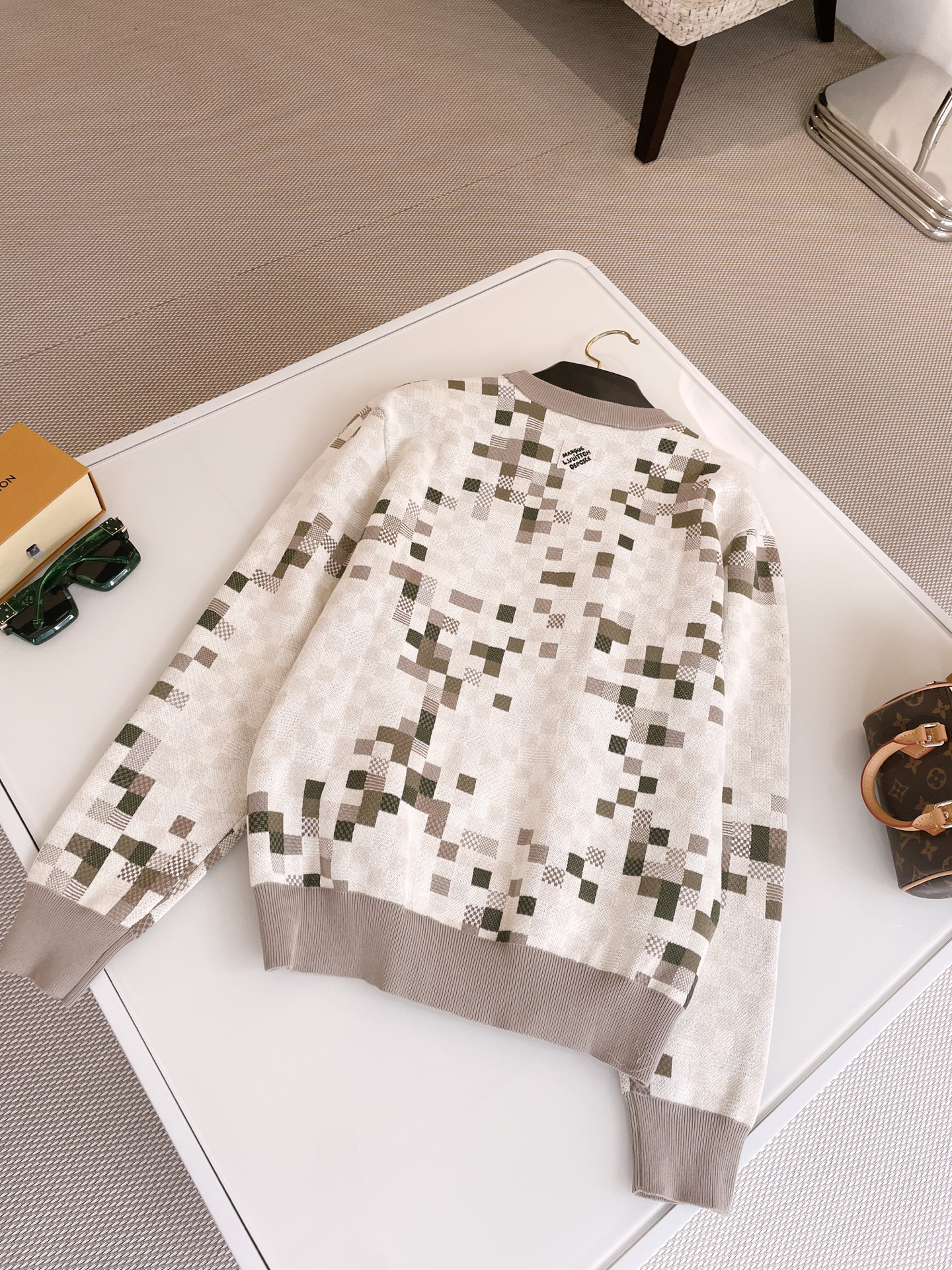 NIGO Louis Vuitton Men's Spring and Autumn Plaid Printed Round Neck Pullover Long Sleeve Knitted Sweatshirt #nigo75129