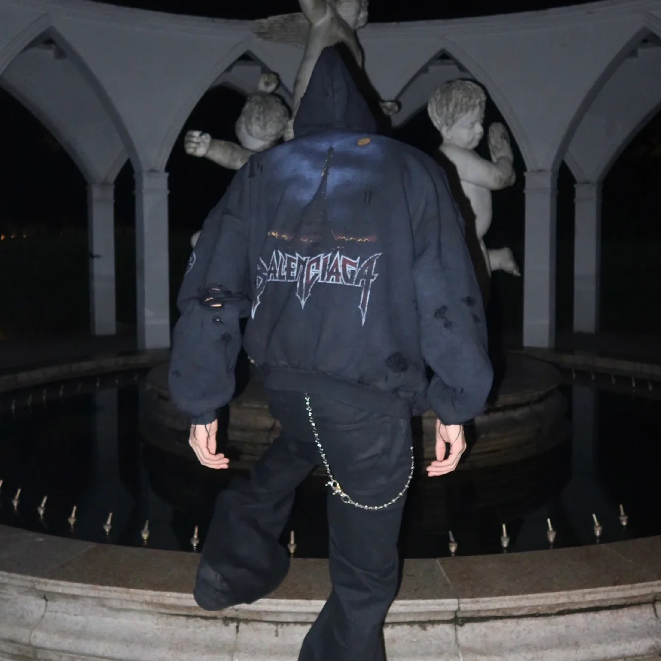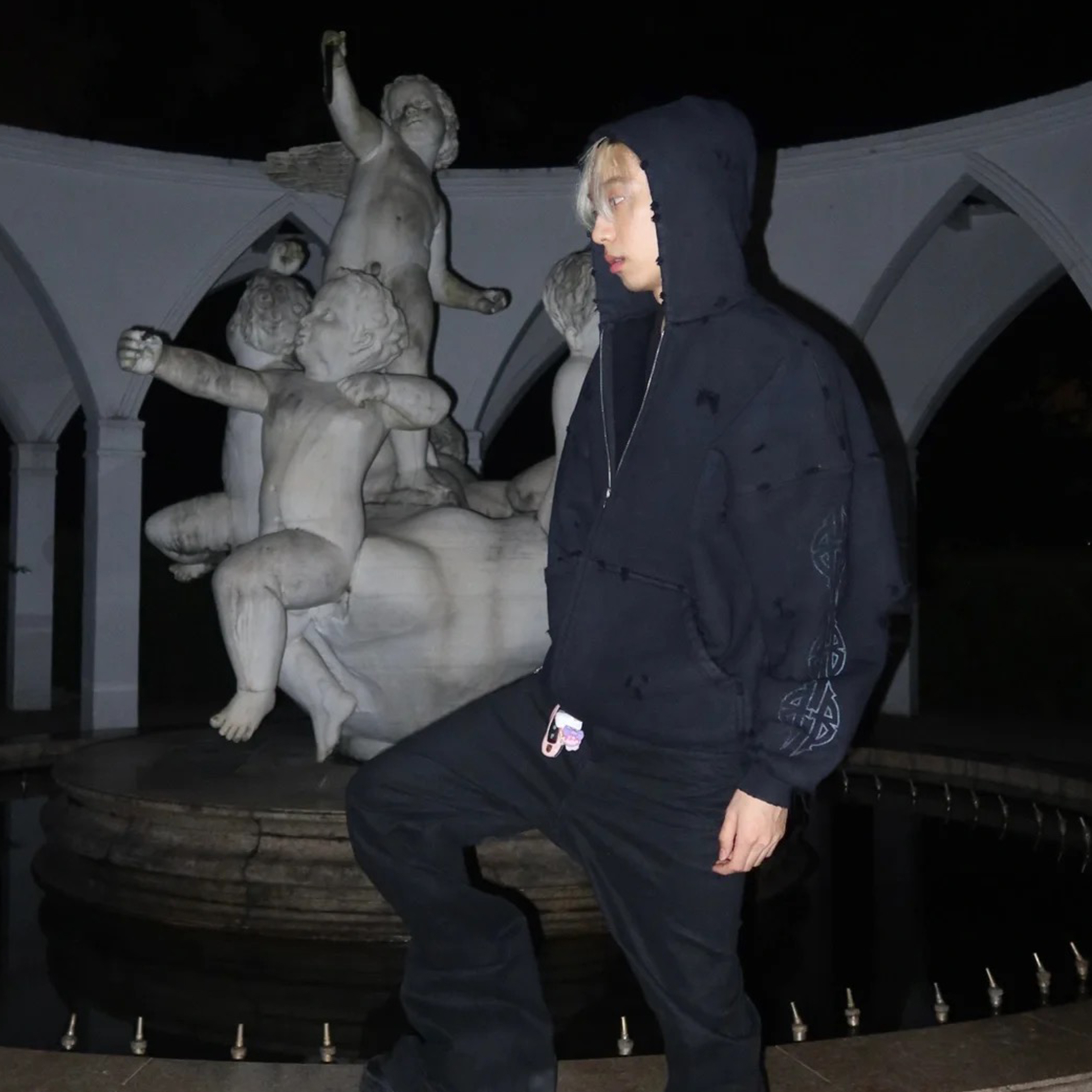 NIGO Fendi Men's Spring and Autumn Black Washed Gradient Effect Letter Logo Long Sleeve Hooded Sweatshirt #nigo74326