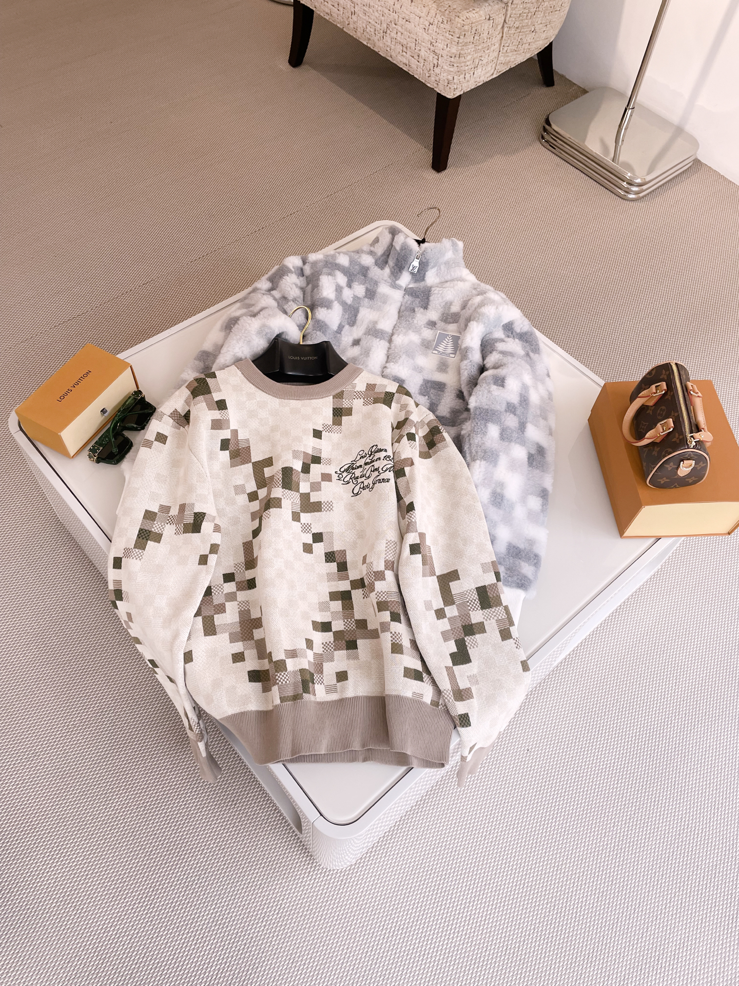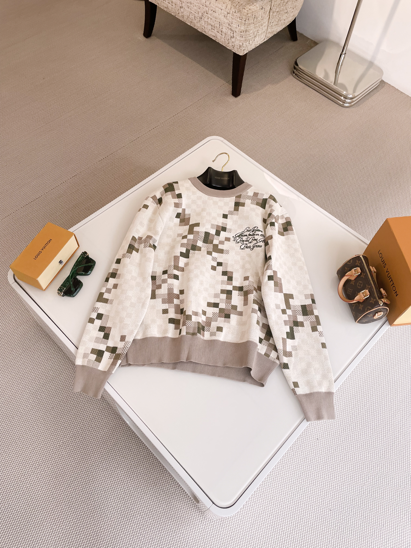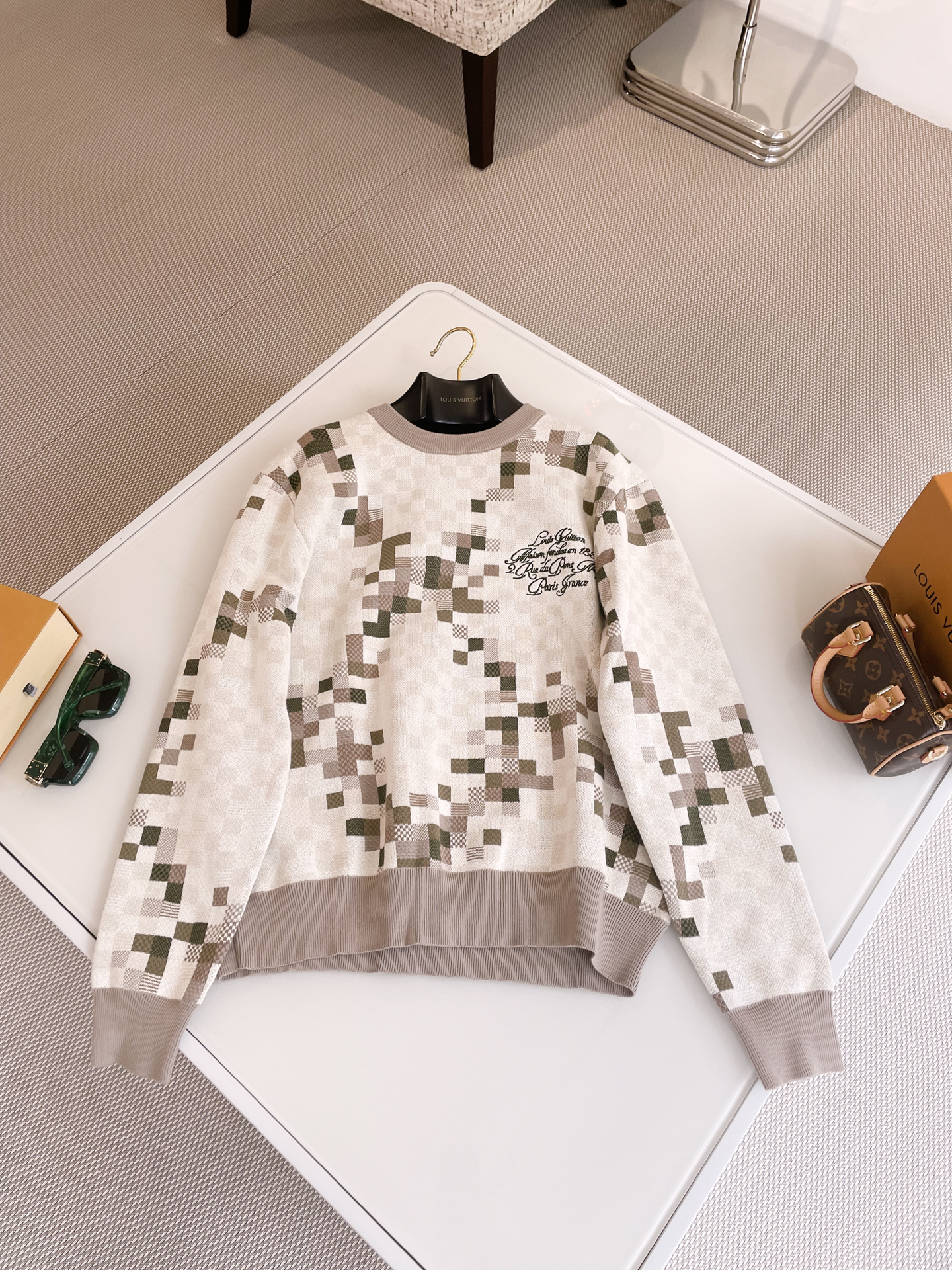 NIGO Louis Vuitton Men's Spring and Autumn Plaid Printed Round Neck Pullover Long Sleeve Knitted Sweatshirt #nigo75129