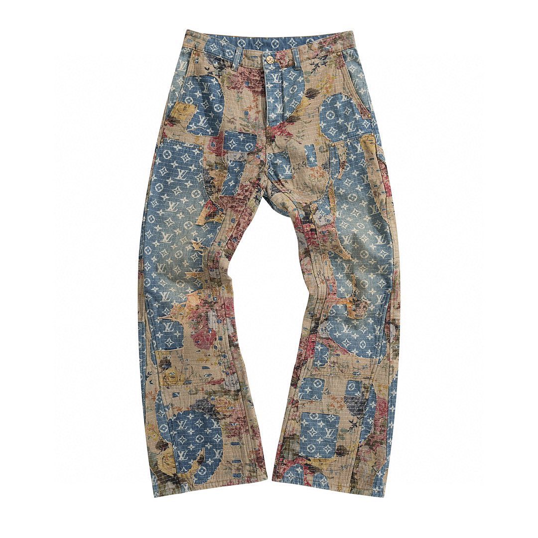 Louis Vuitton NIGO Man Destroyed Carpenter Bell Bottom Denim Pants #nigo5858