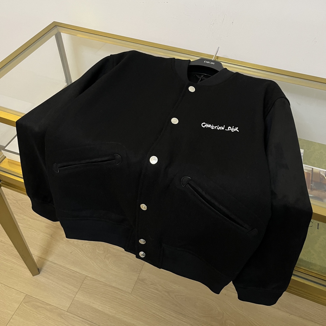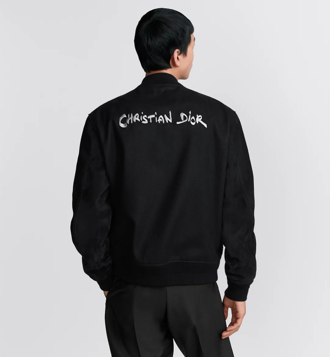 NIGO Dior Men's Fall And Winter Black Letter Print Single Breasted Long Sleeved Baseball Jacket #nigo73172