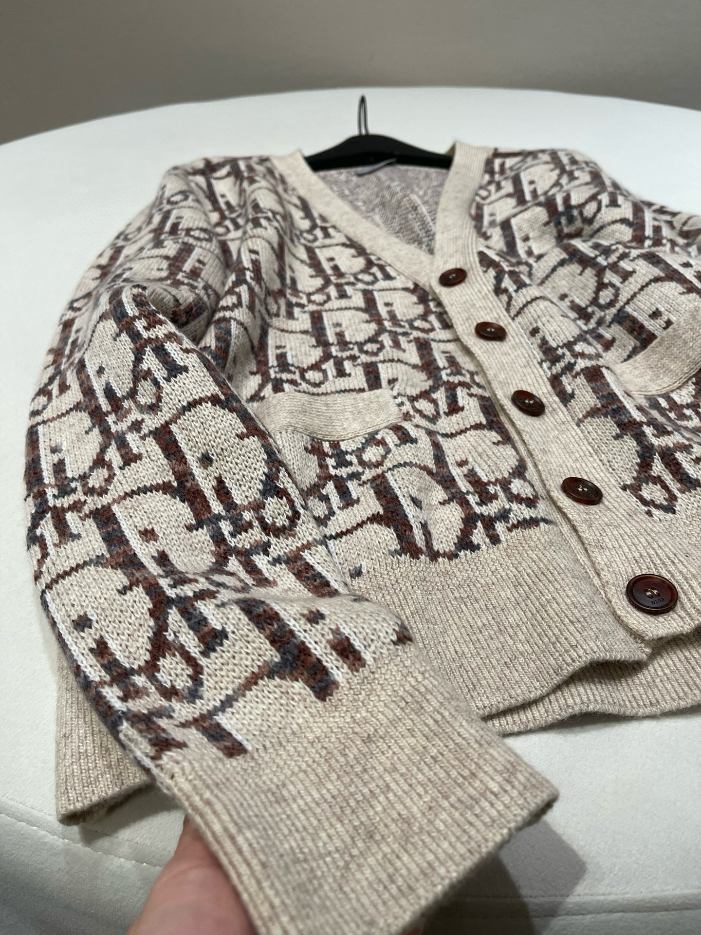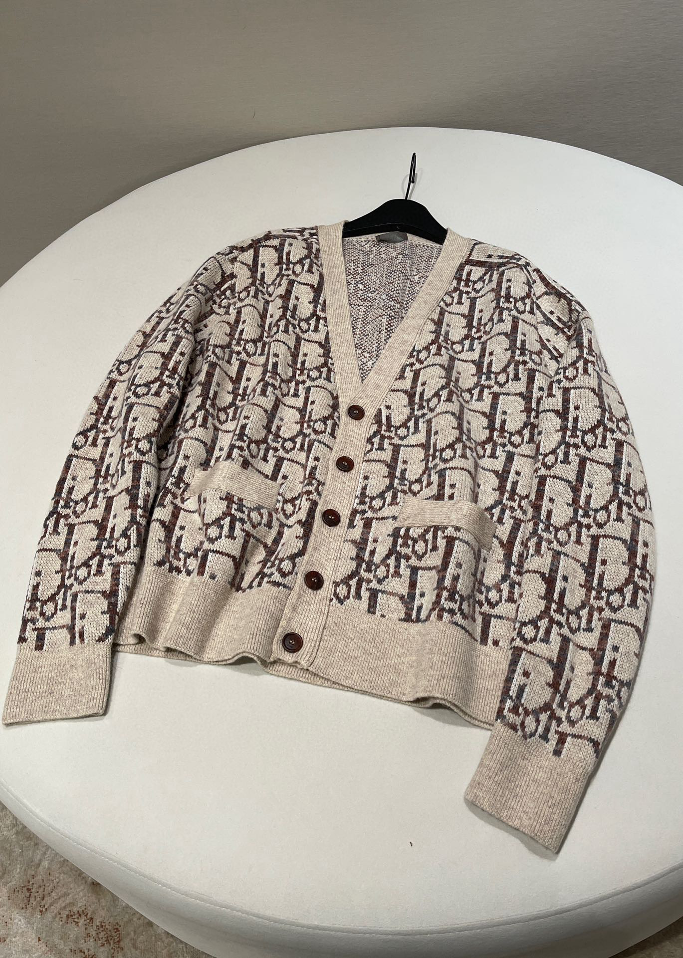 NIGO Dior Men's Spring And Summer Logo Kacquard V-Neck Single-Breasted Wool Knit Cardigan Jacket #nigo97553