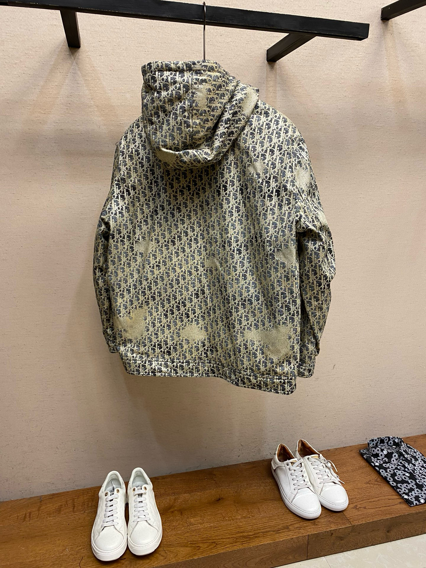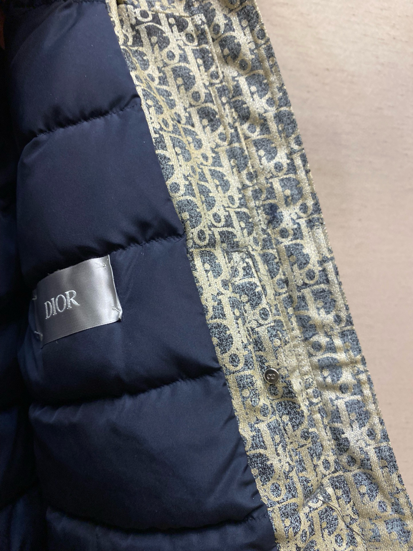 NIGO Dior Men's Winter Logo Jacquard Washed Fabric Denim Hooded Zip Puffer Down Jacket #nigo97663