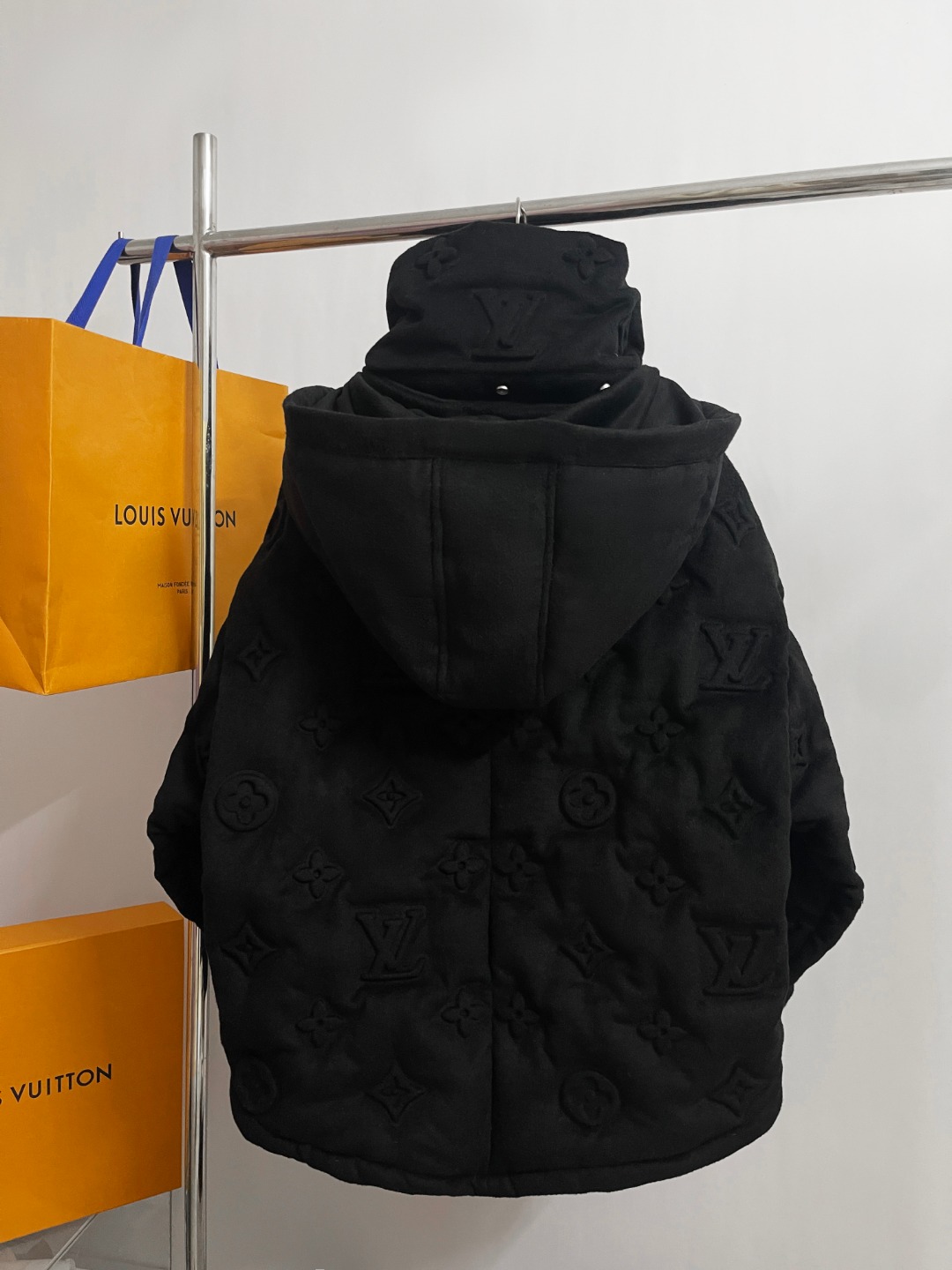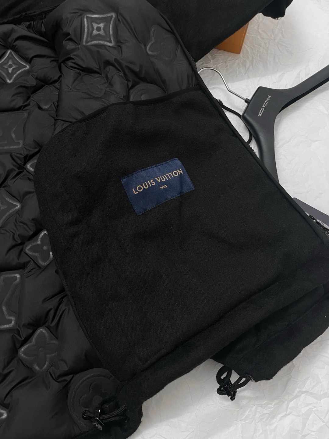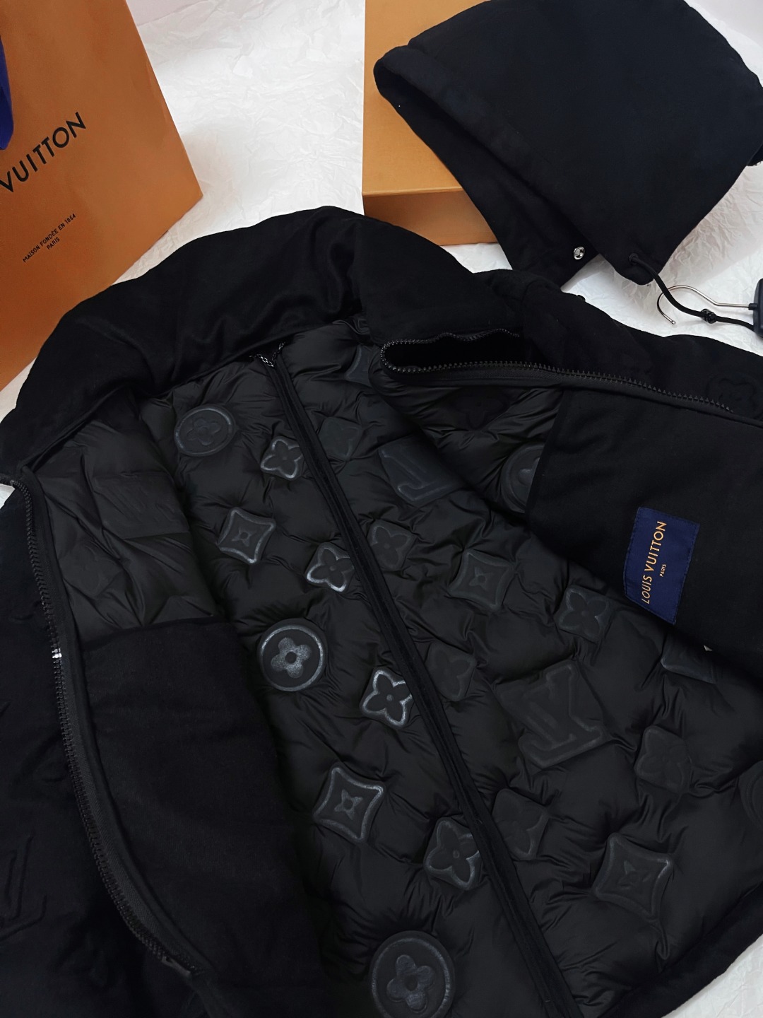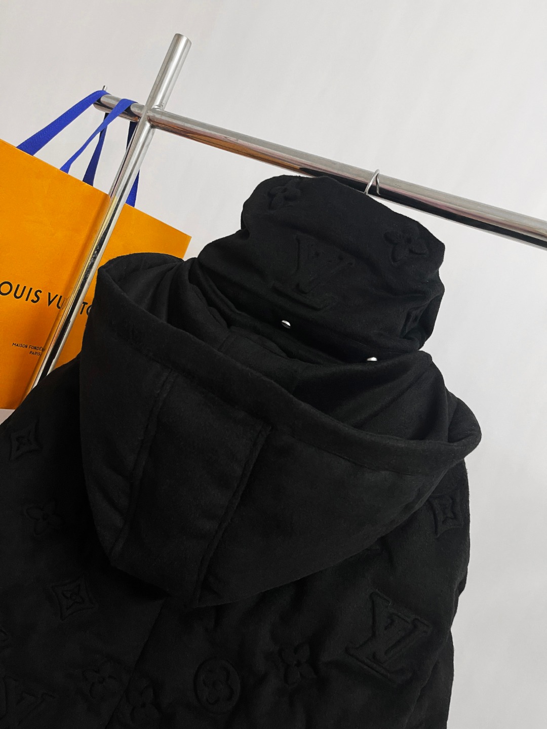 NIGO Louis Vuitton Men's And Women's Fall And Winter Black Logo Convex Print Hooded Zipper Long Sleeved Puffer Down Jacket #nigo74115