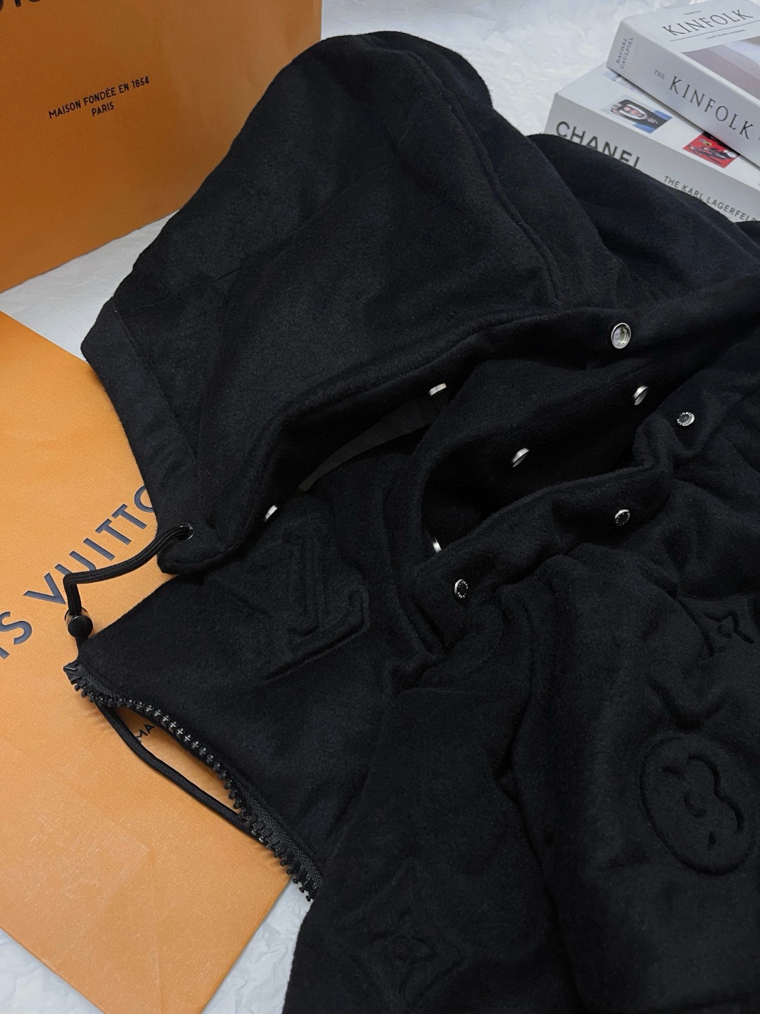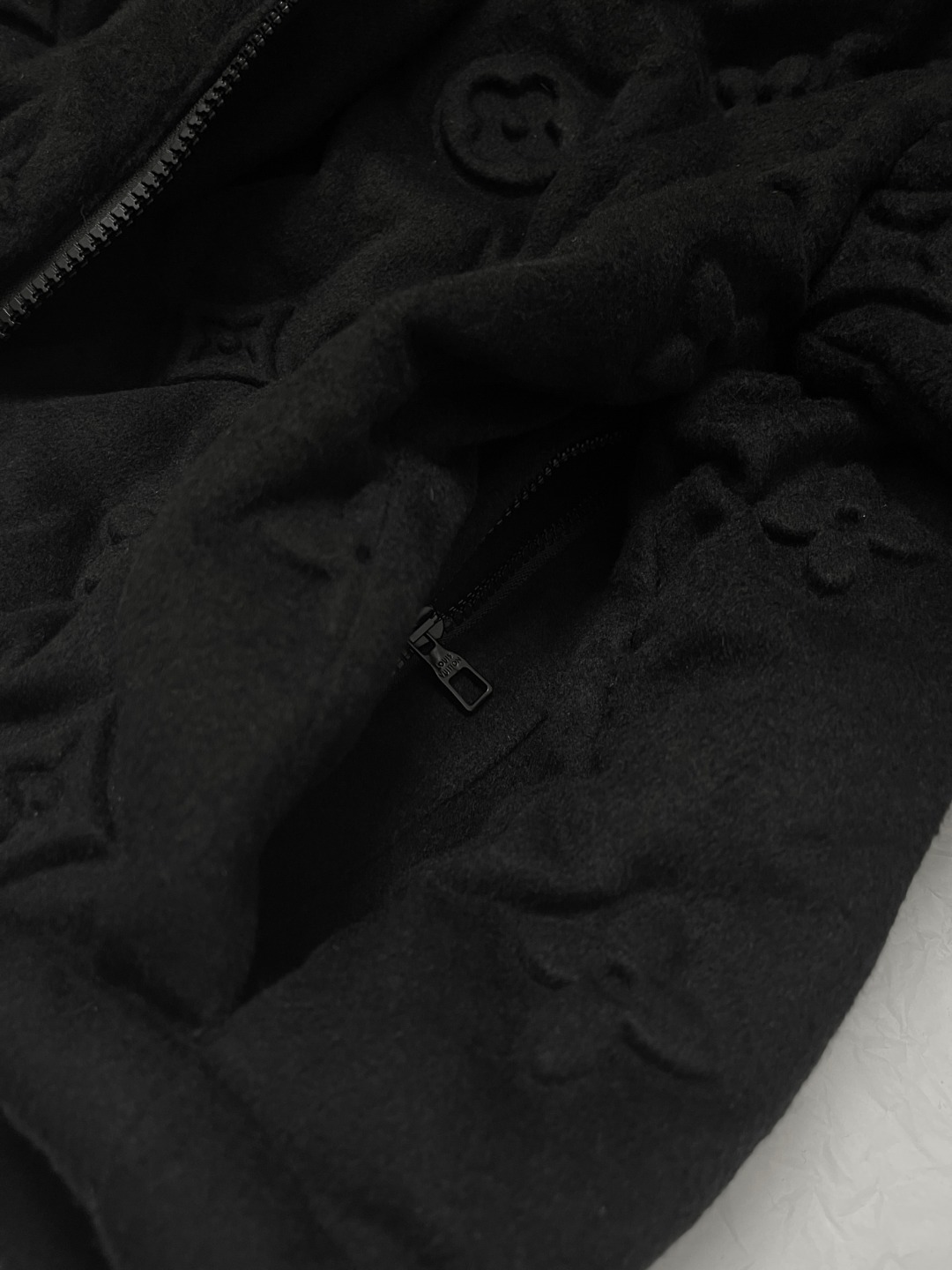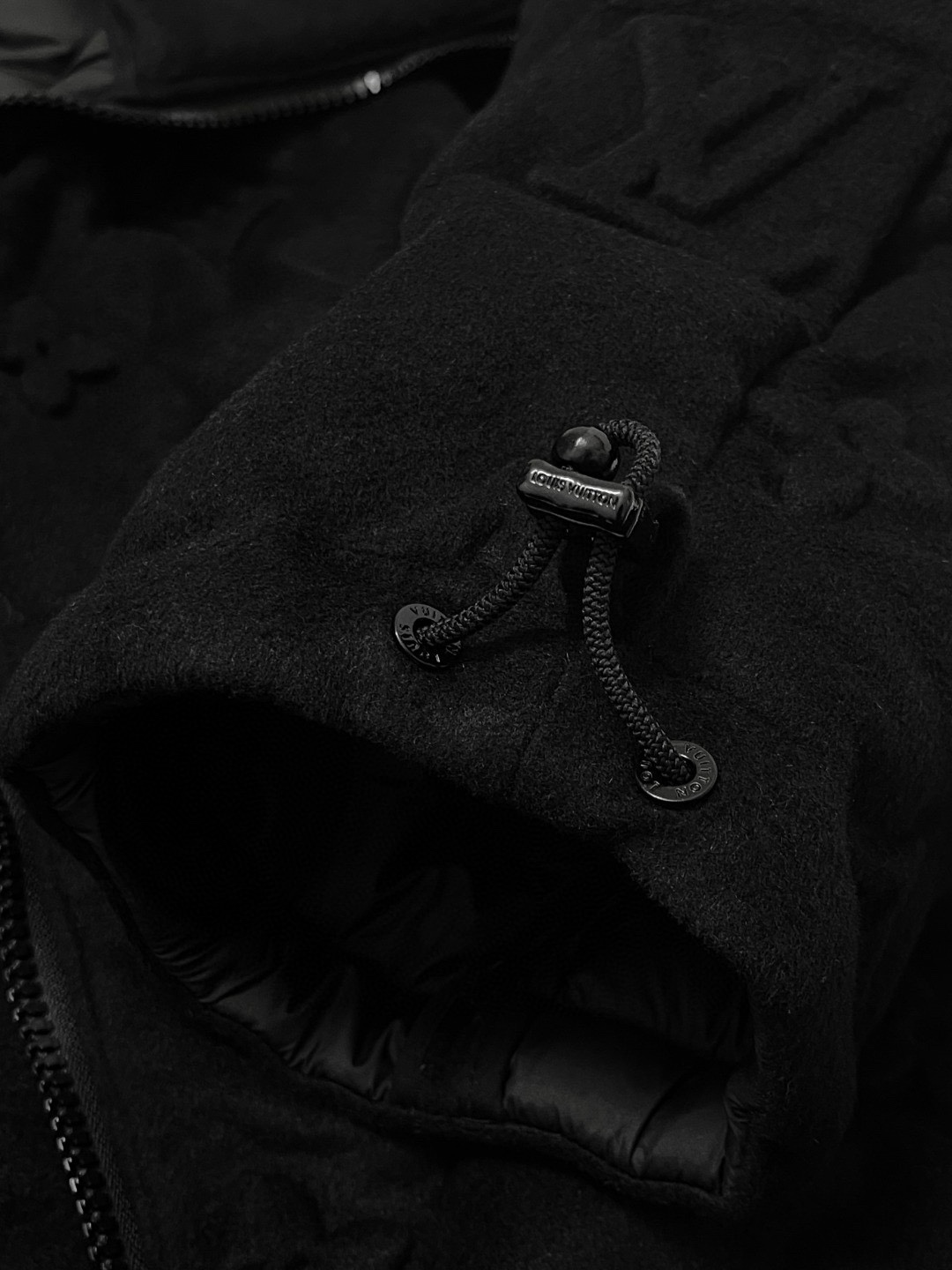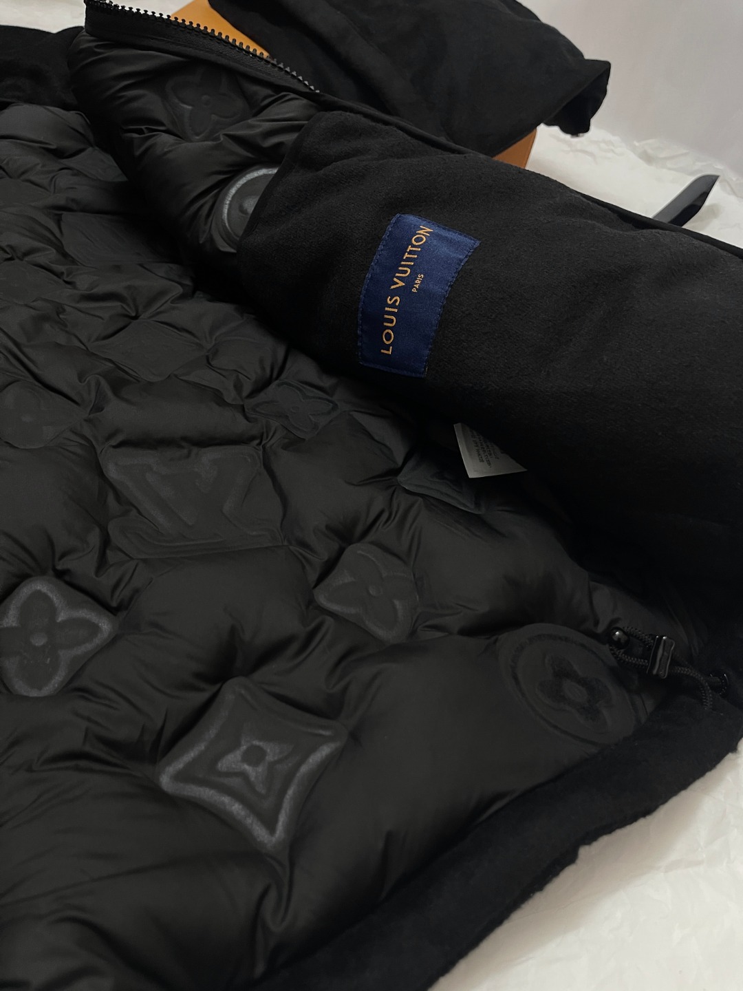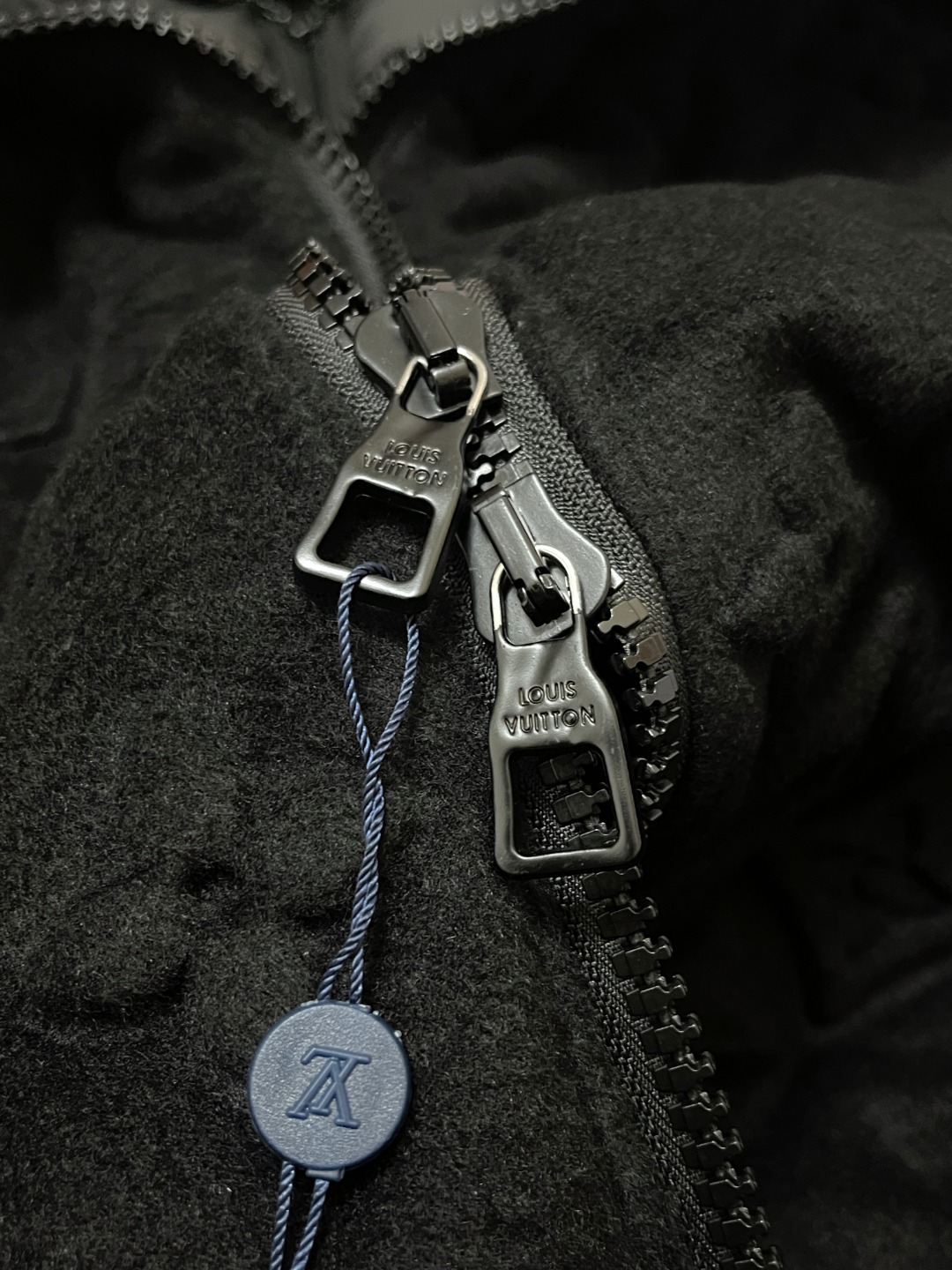 NIGO Louis Vuitton Men's And Women's Fall And Winter Black Logo Convex Print Hooded Zipper Long Sleeved Puffer Down Jacket #nigo74115