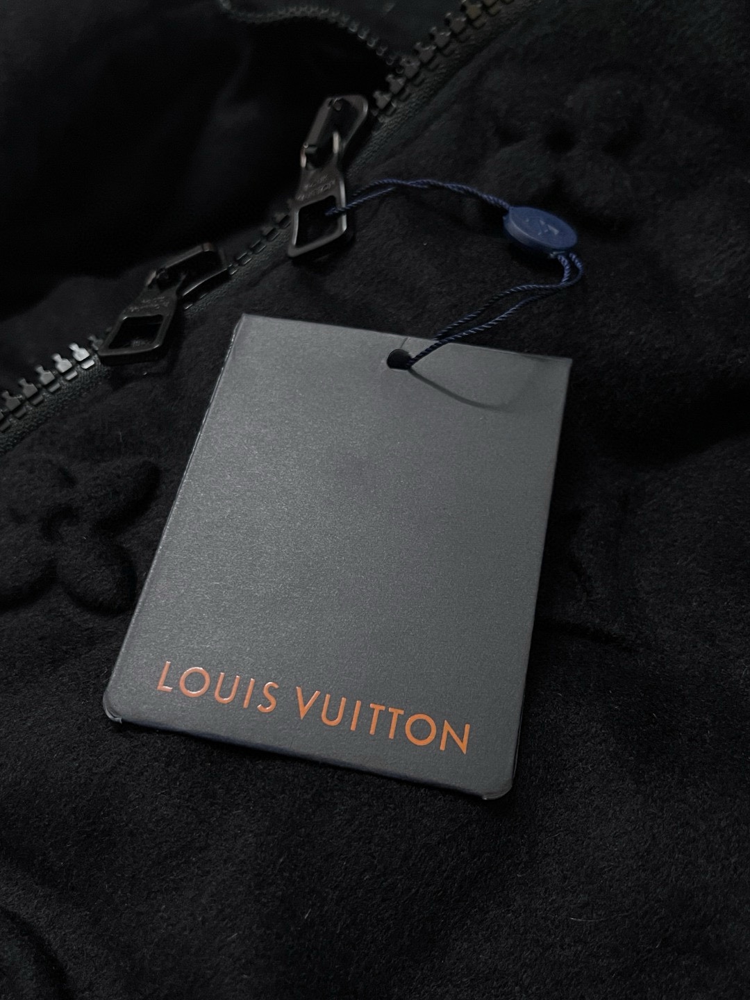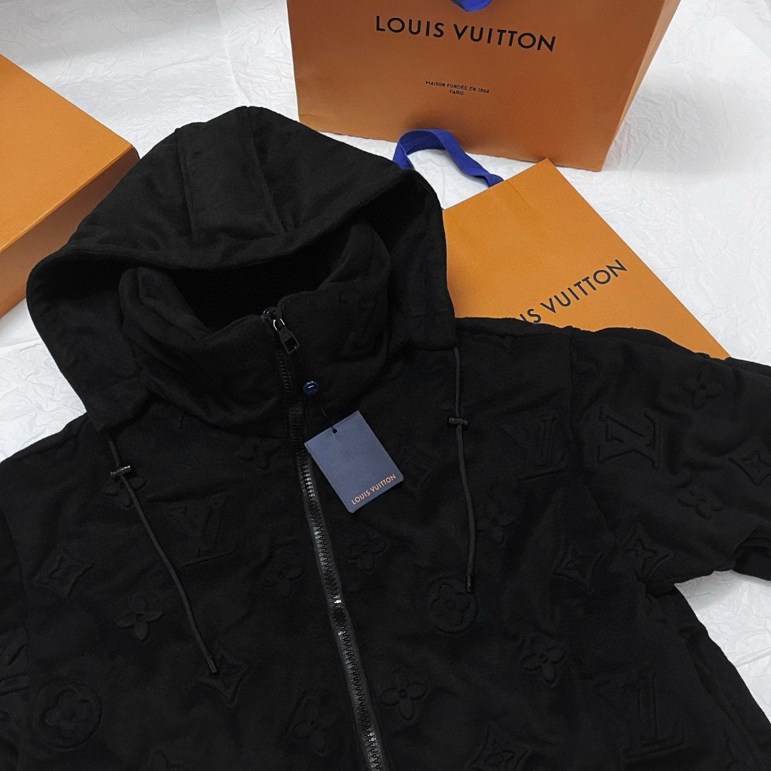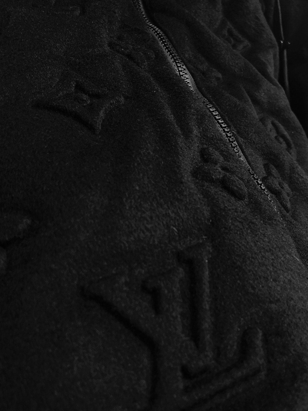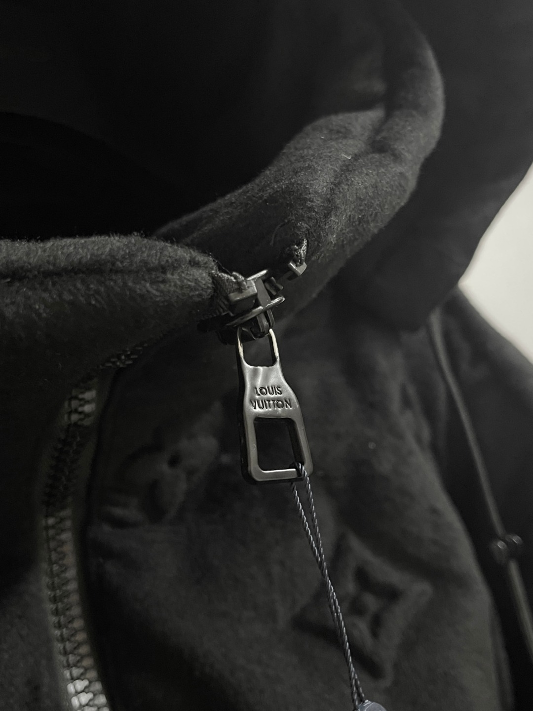 NIGO Louis Vuitton Men's And Women's Fall And Winter Black Logo Convex Print Hooded Zipper Long Sleeved Puffer Down Jacket #nigo74115