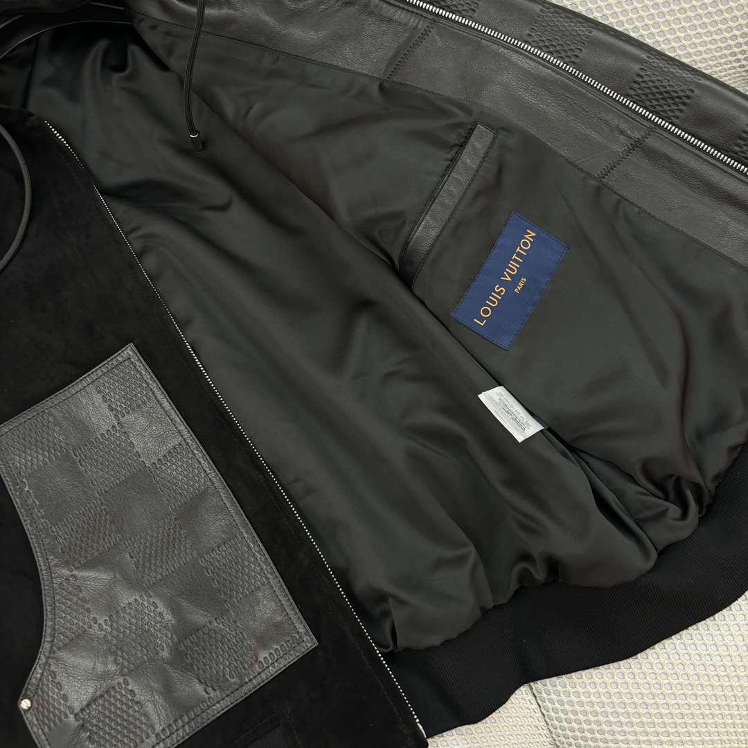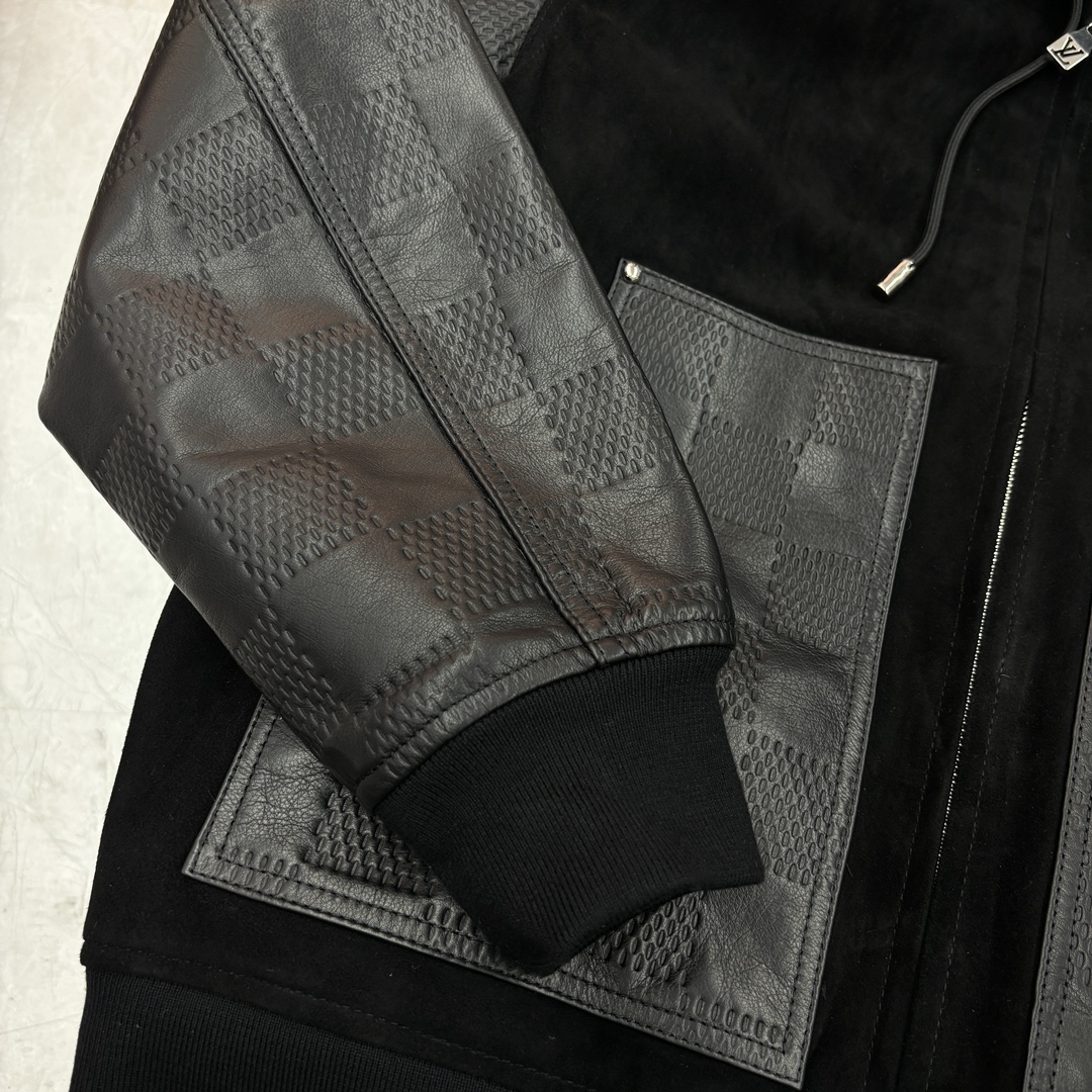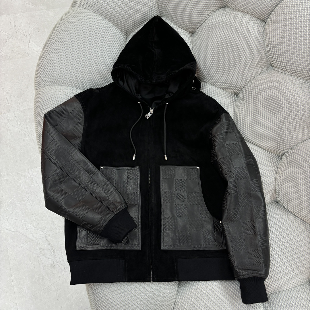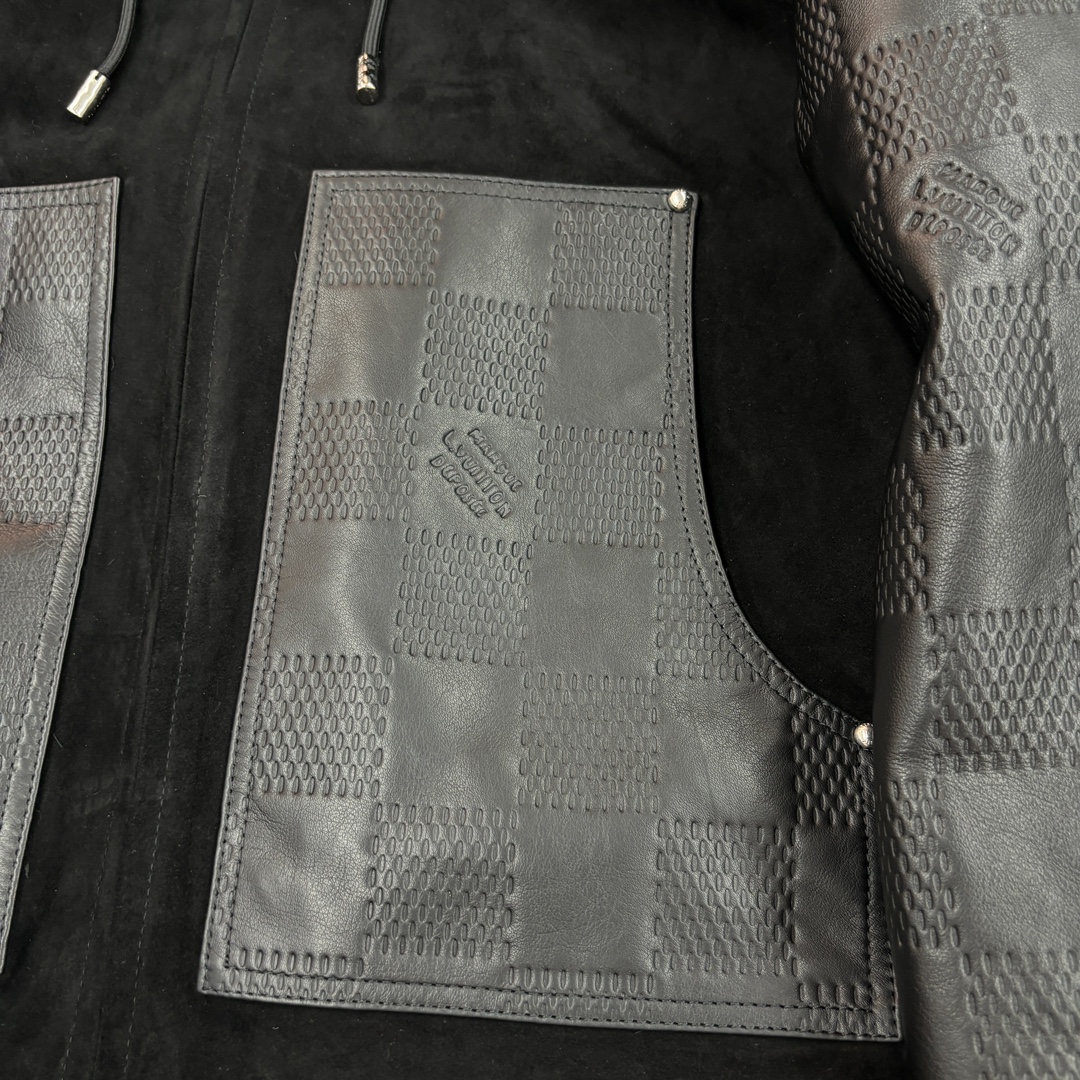 NIGO Louis Vuitton Men's Fall And Winter Black Suede Patchwork Hooded Drawstring Zipper Long Sleeve Jacket #nigo73125