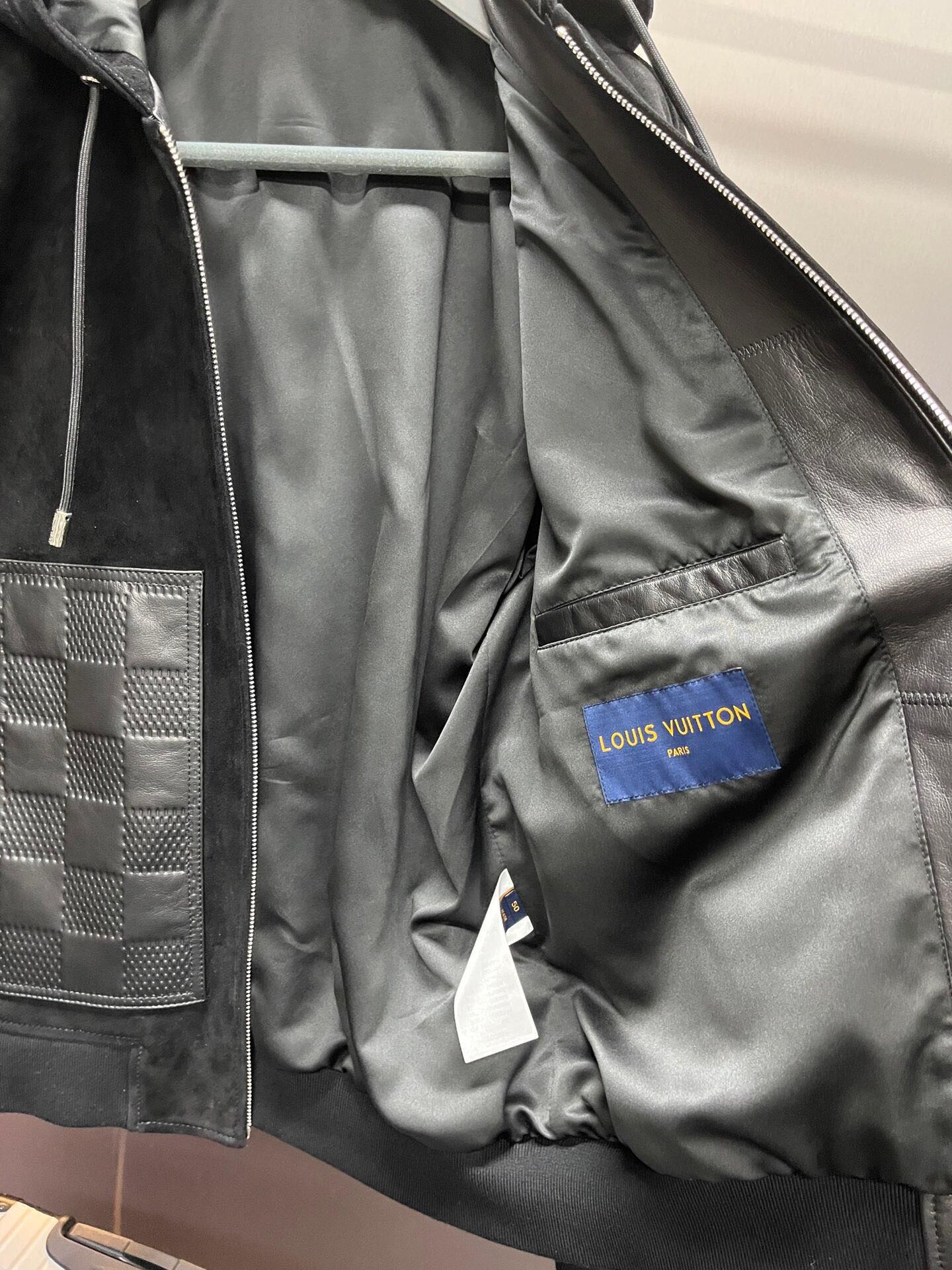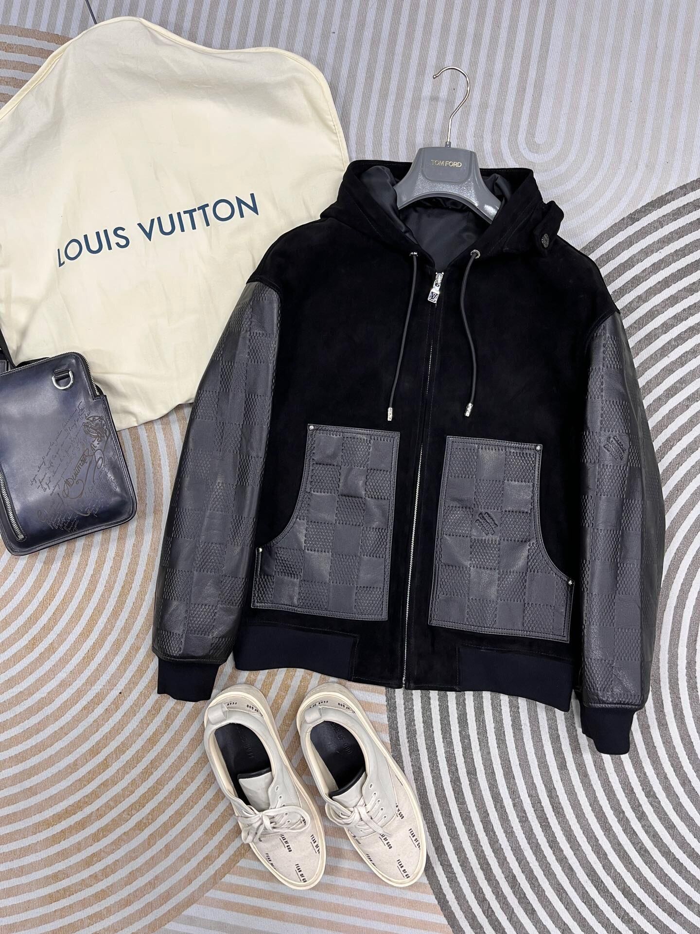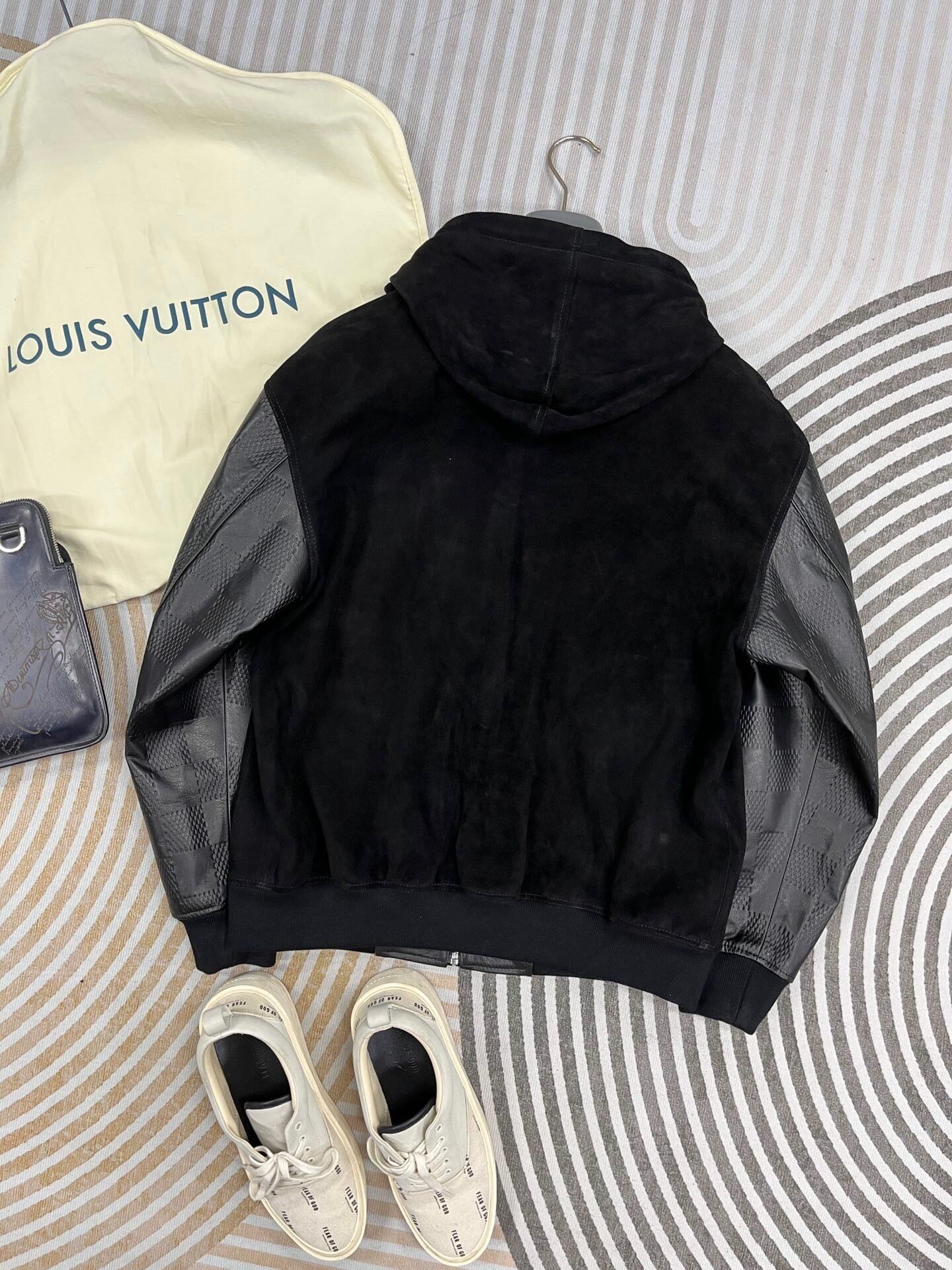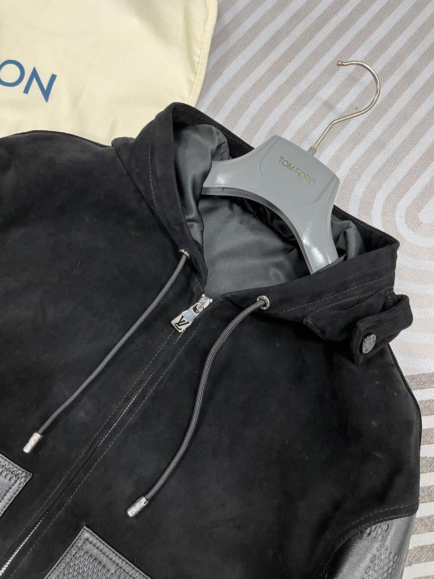 NIGO Louis Vuitton Men's Fall And Winter Black Suede Patchwork Hooded Drawstring Zipper Long Sleeve Jacket #nigo73342