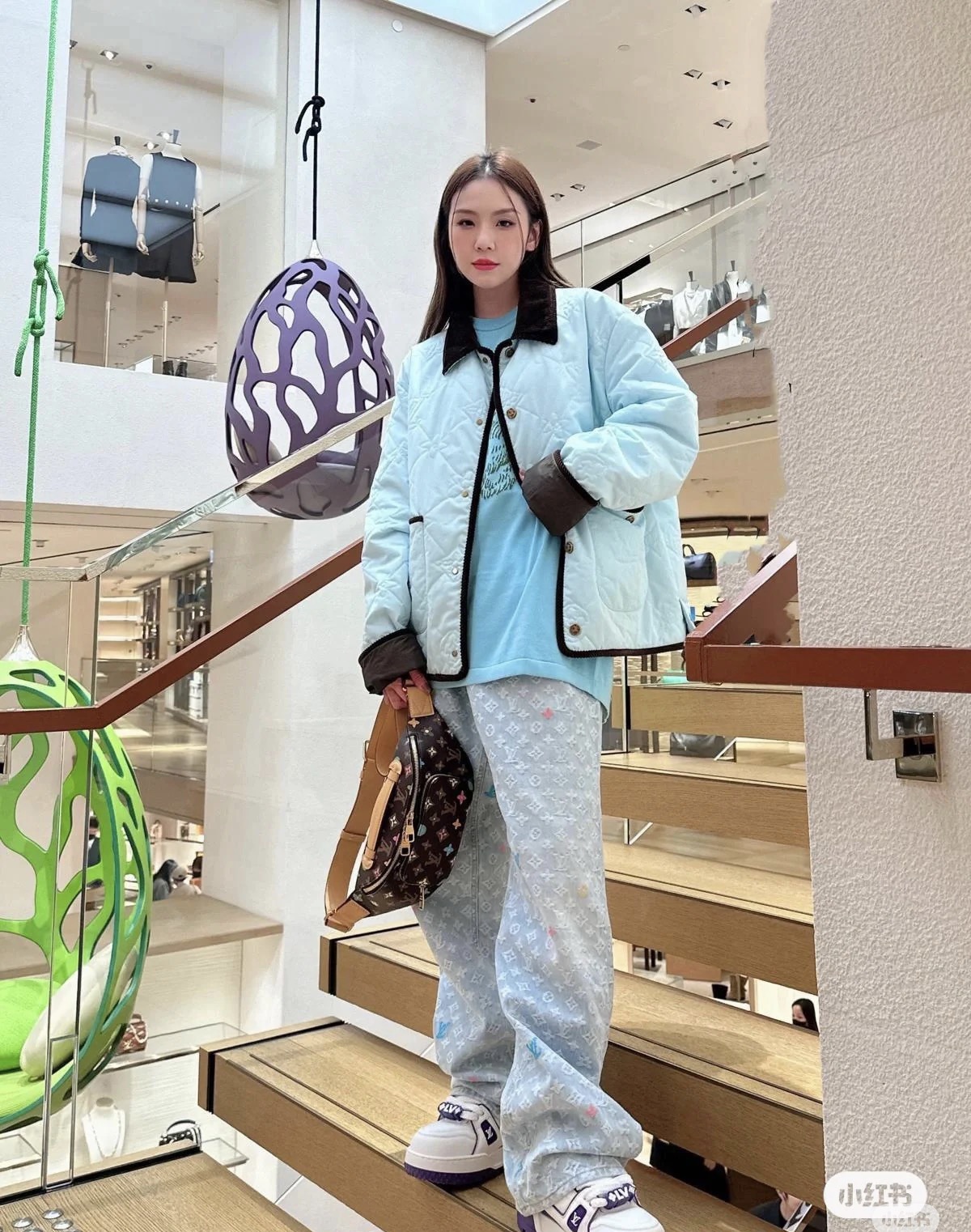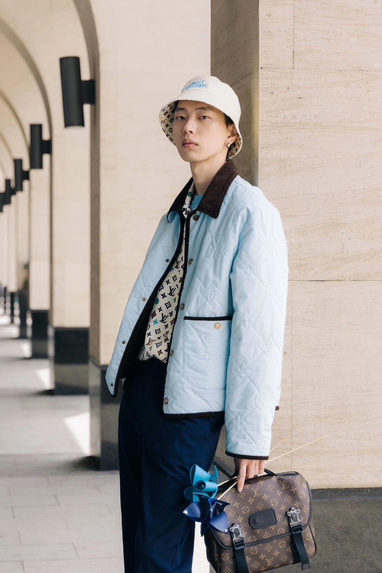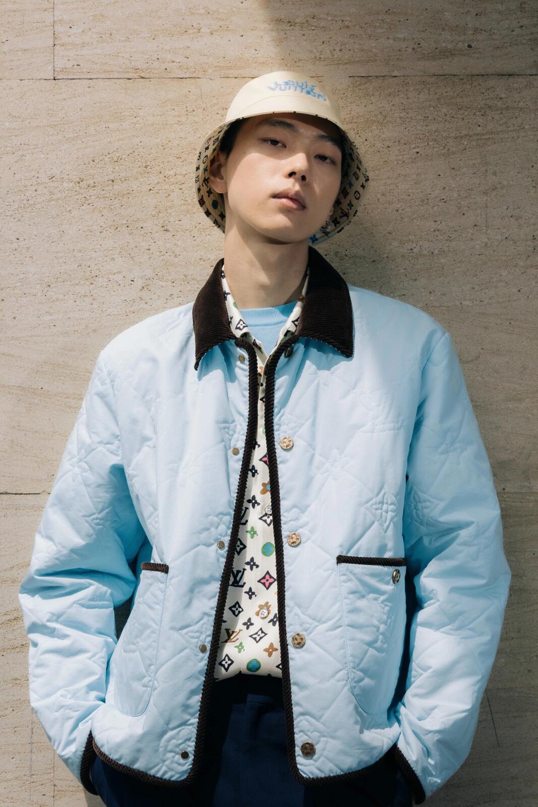 NIGO Louis Vuitton Men's Fall And Winter Light Blue Patchwork Fitted Lapel Single Breasted Long Sleeved Jacket #nigo73167